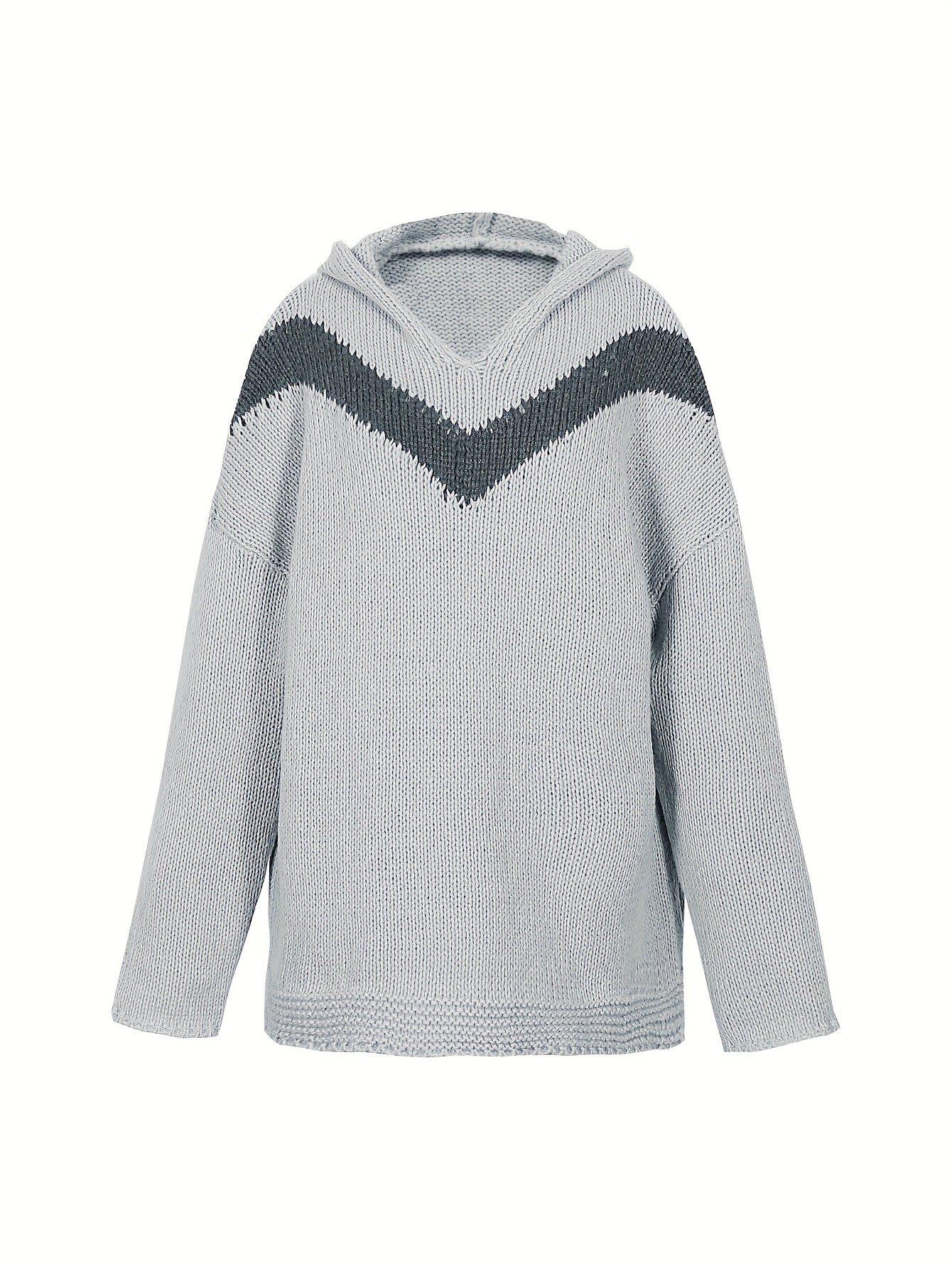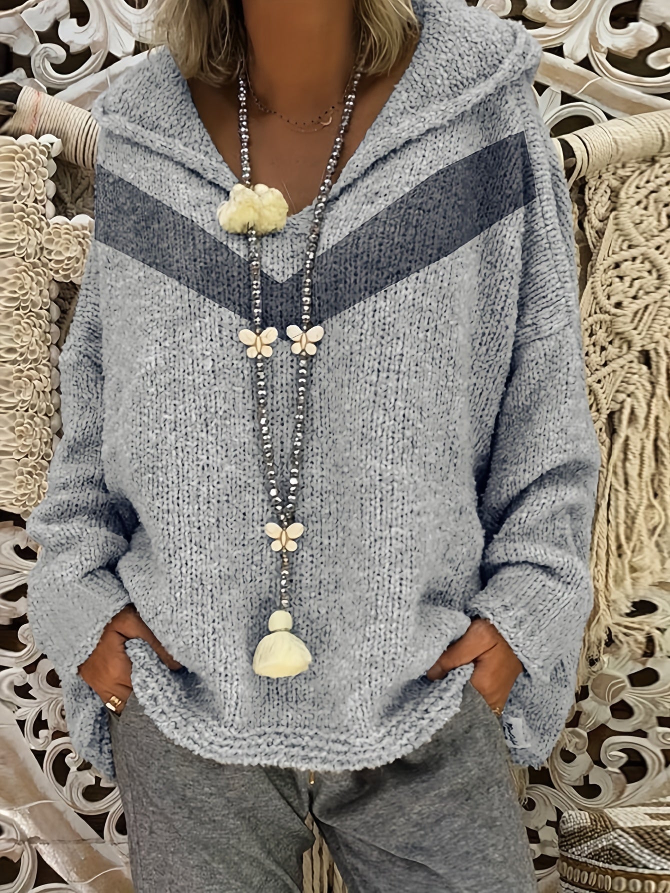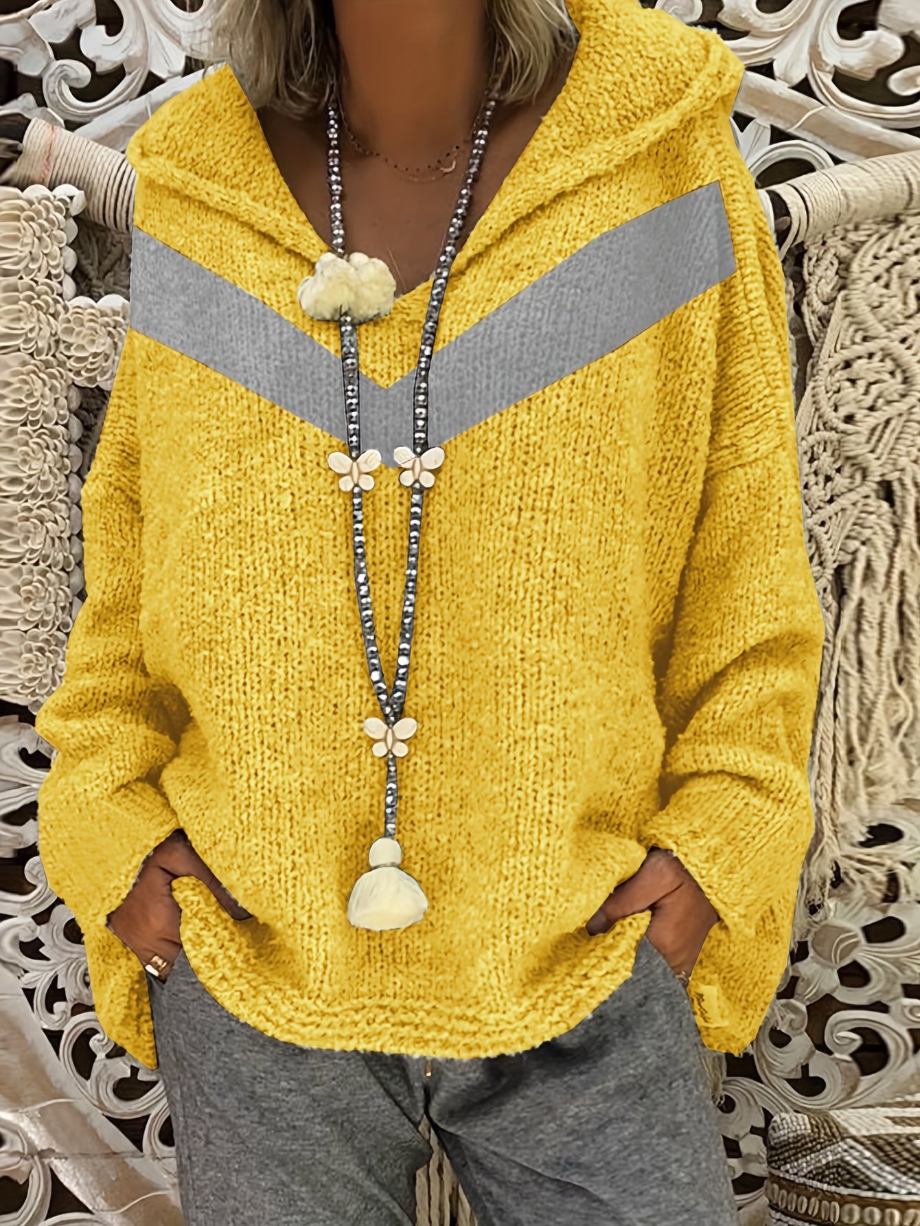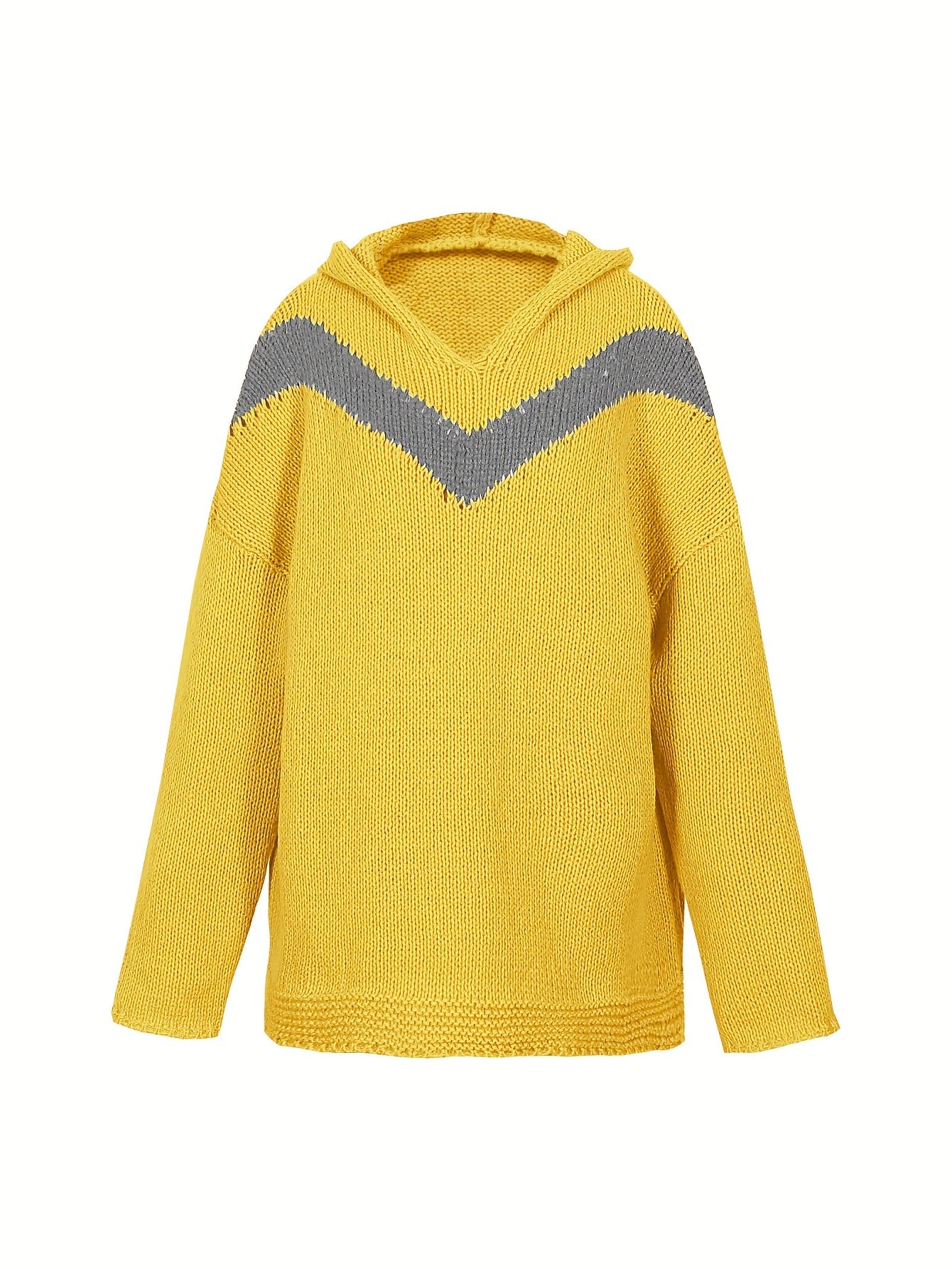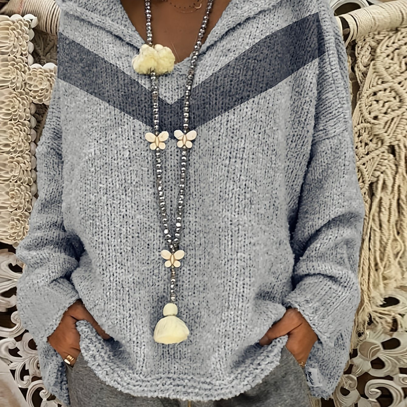 Sixsr Plus Size Casual Sweater, Women's Plus Colorblock Stripe Print Long Sleeve Hooded Jumper