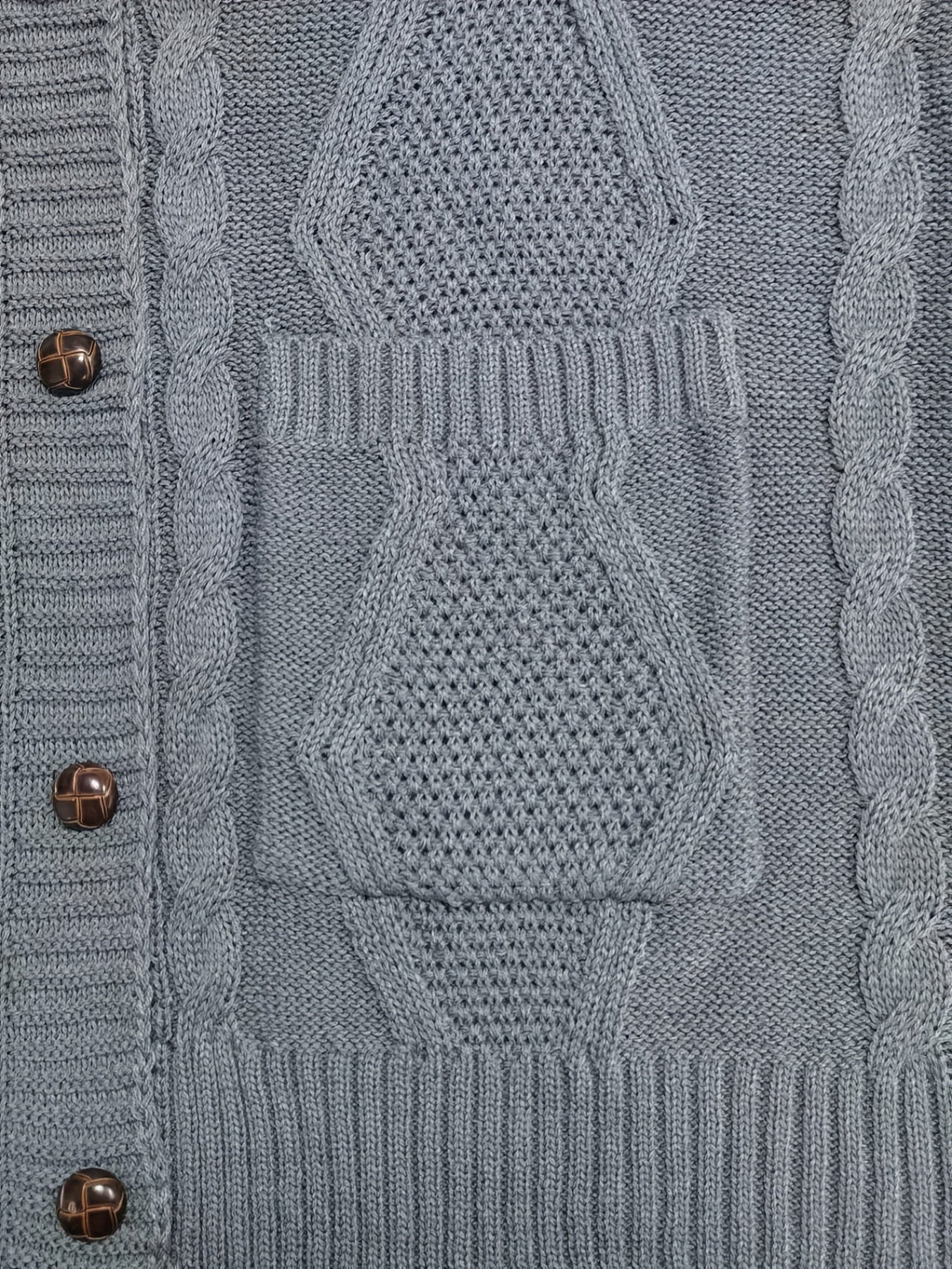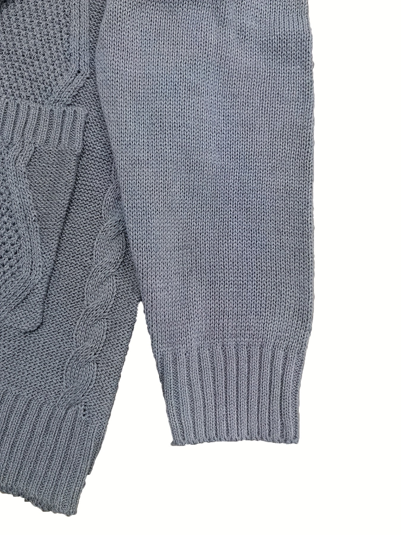 Sixsr Plus Size Casual Sweater, Women's Plus Plain Cable Button Up Hooded Long Sleeve Jumper
