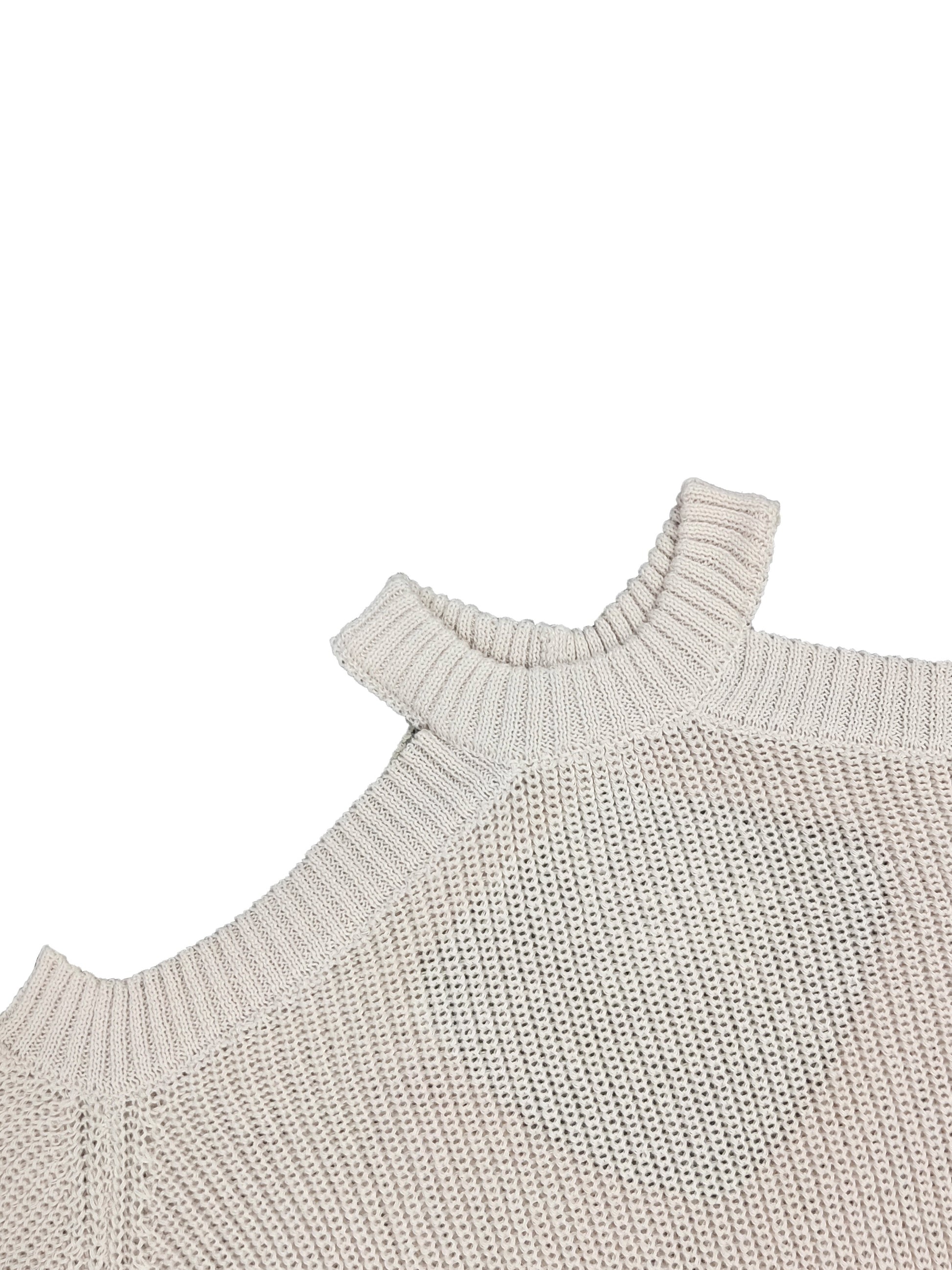 Sixsr Plus Size Casual Sweater, Women's Plus Solid Cold Shoulder Cut Out Backless Long Sleeve Slight Stretch Sweater