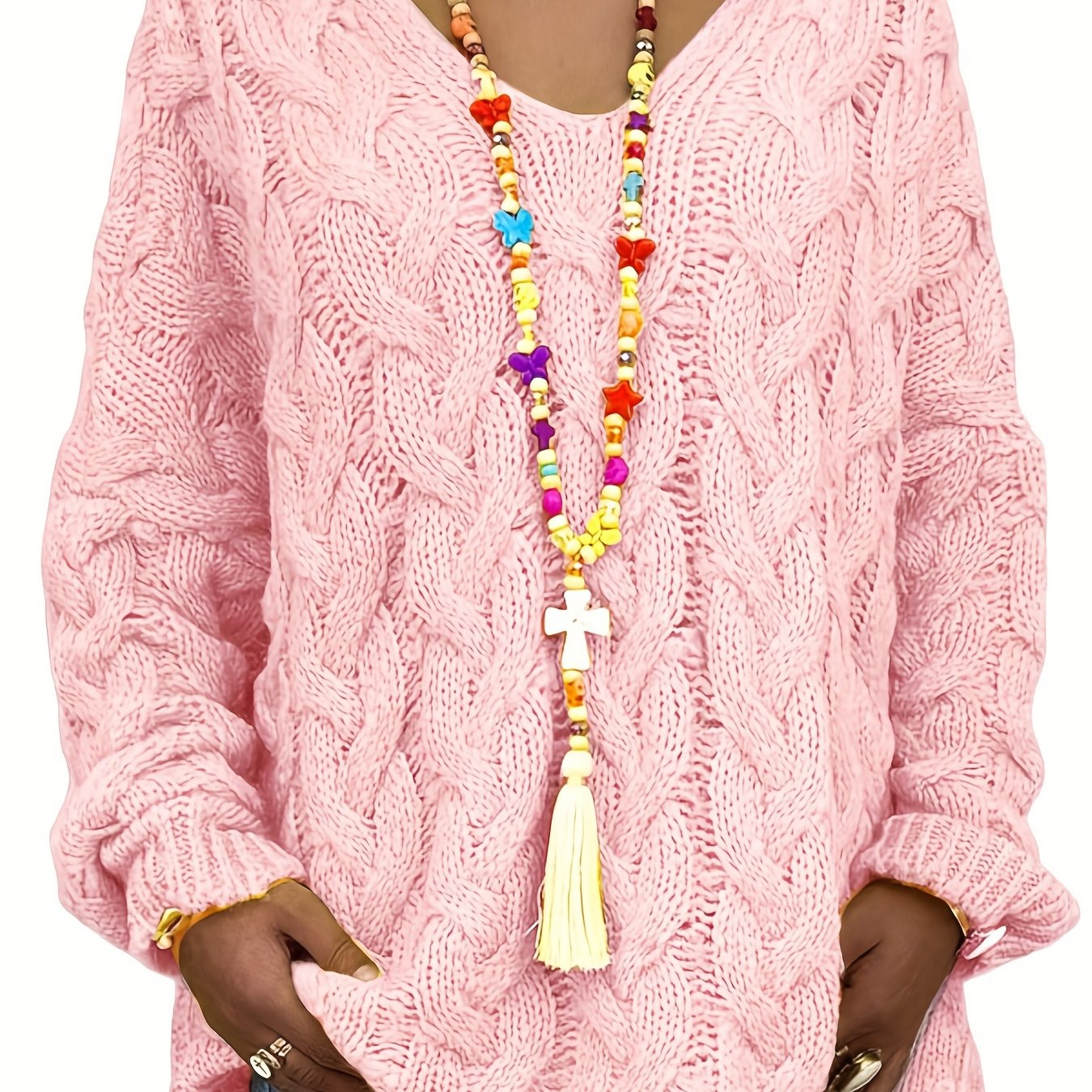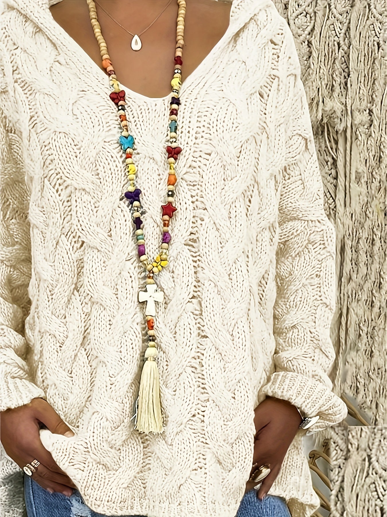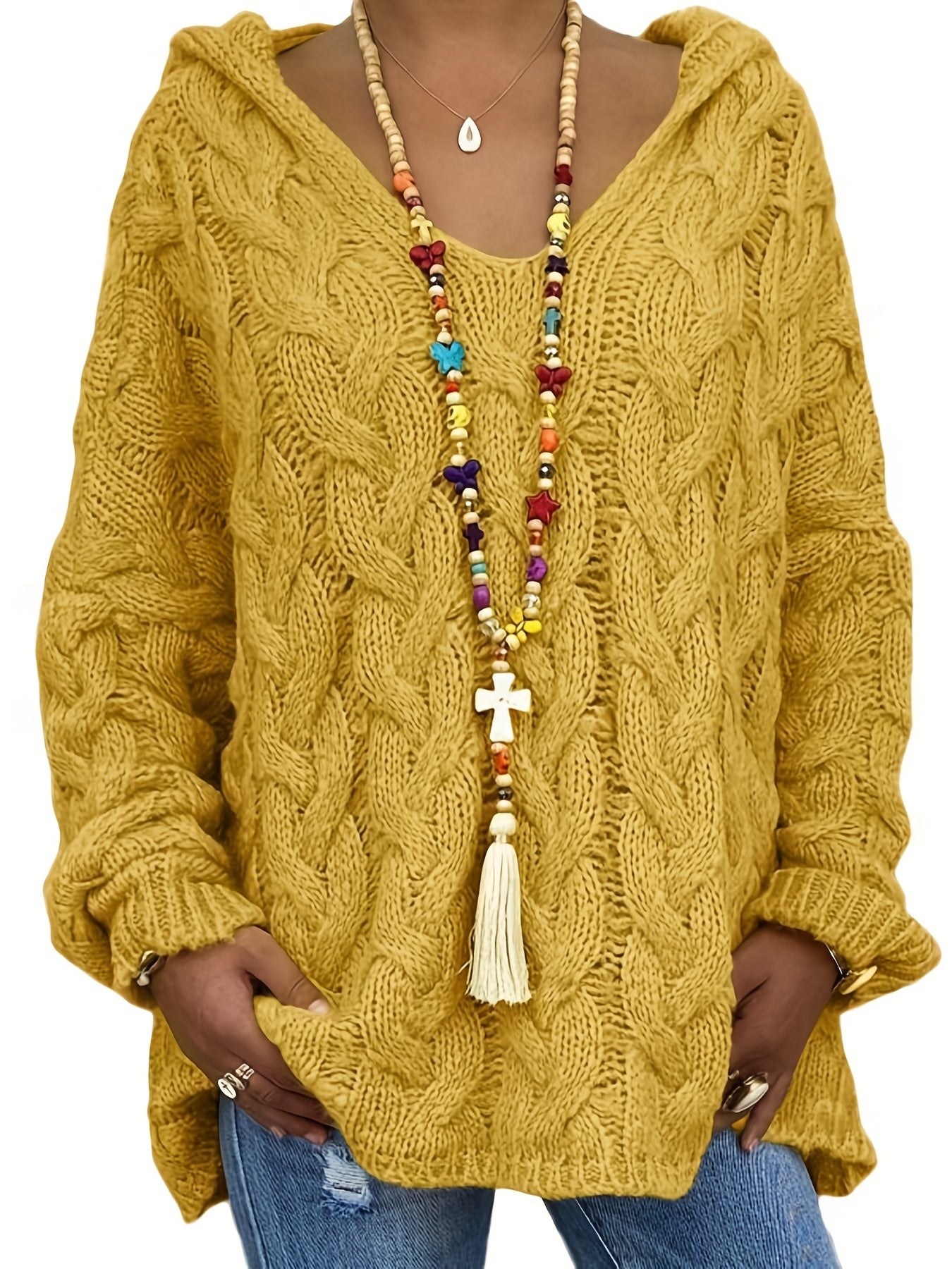 Sixsr Plus Size Casual Sweater, Women's Plus Solid Hooded Long Sleeve V Neck Knitted Pullover Jumper Top
