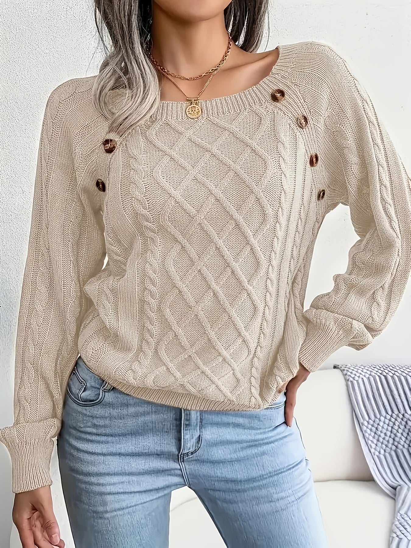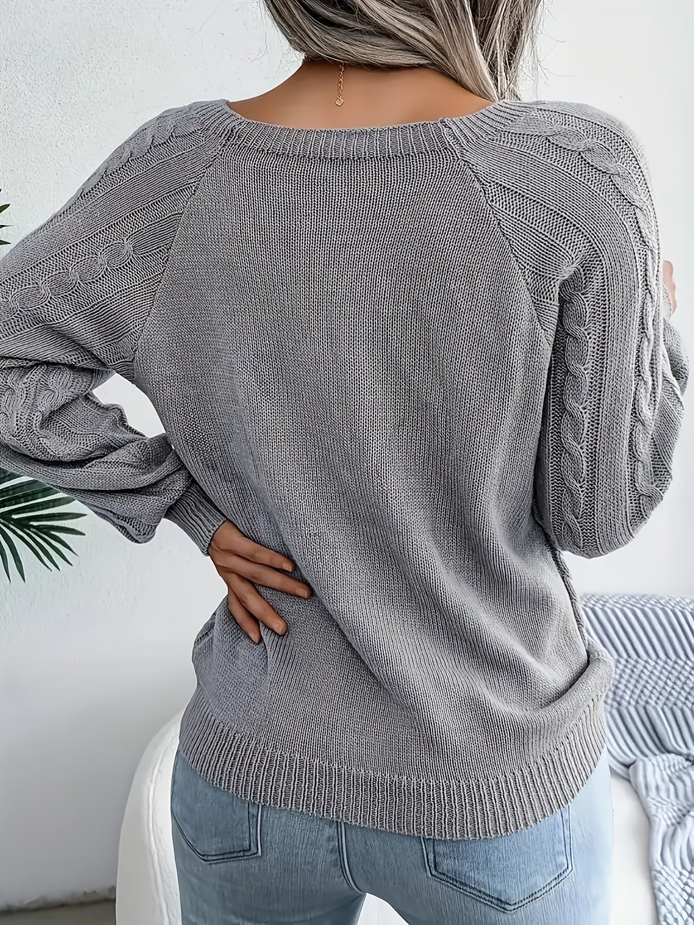 Sixsr Plus Size Casual Sweater, Women's Plus Solid Jacquard Lantern Sleeve Boat Neck Pullover Sweater