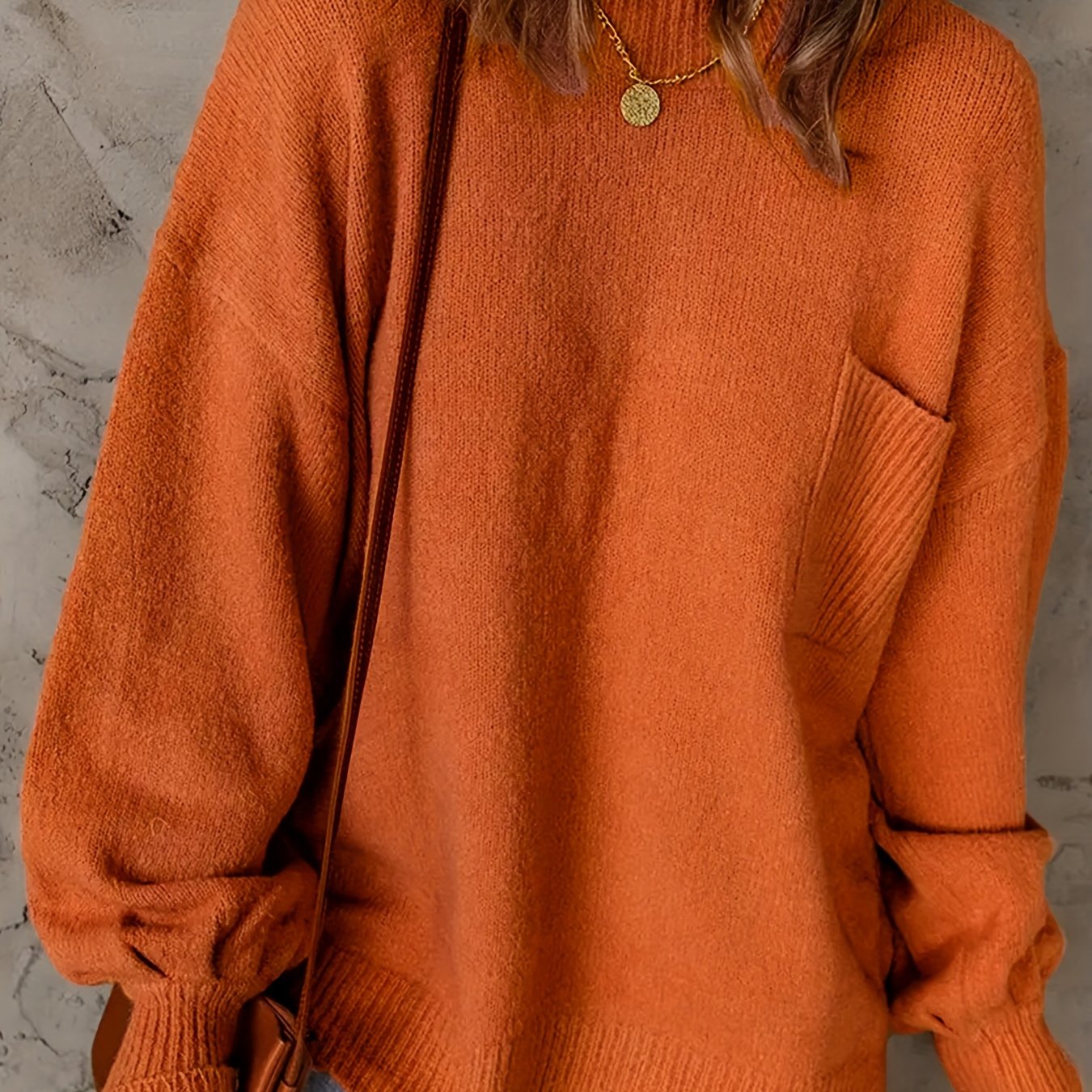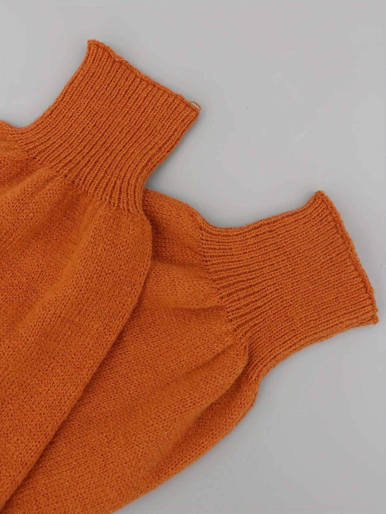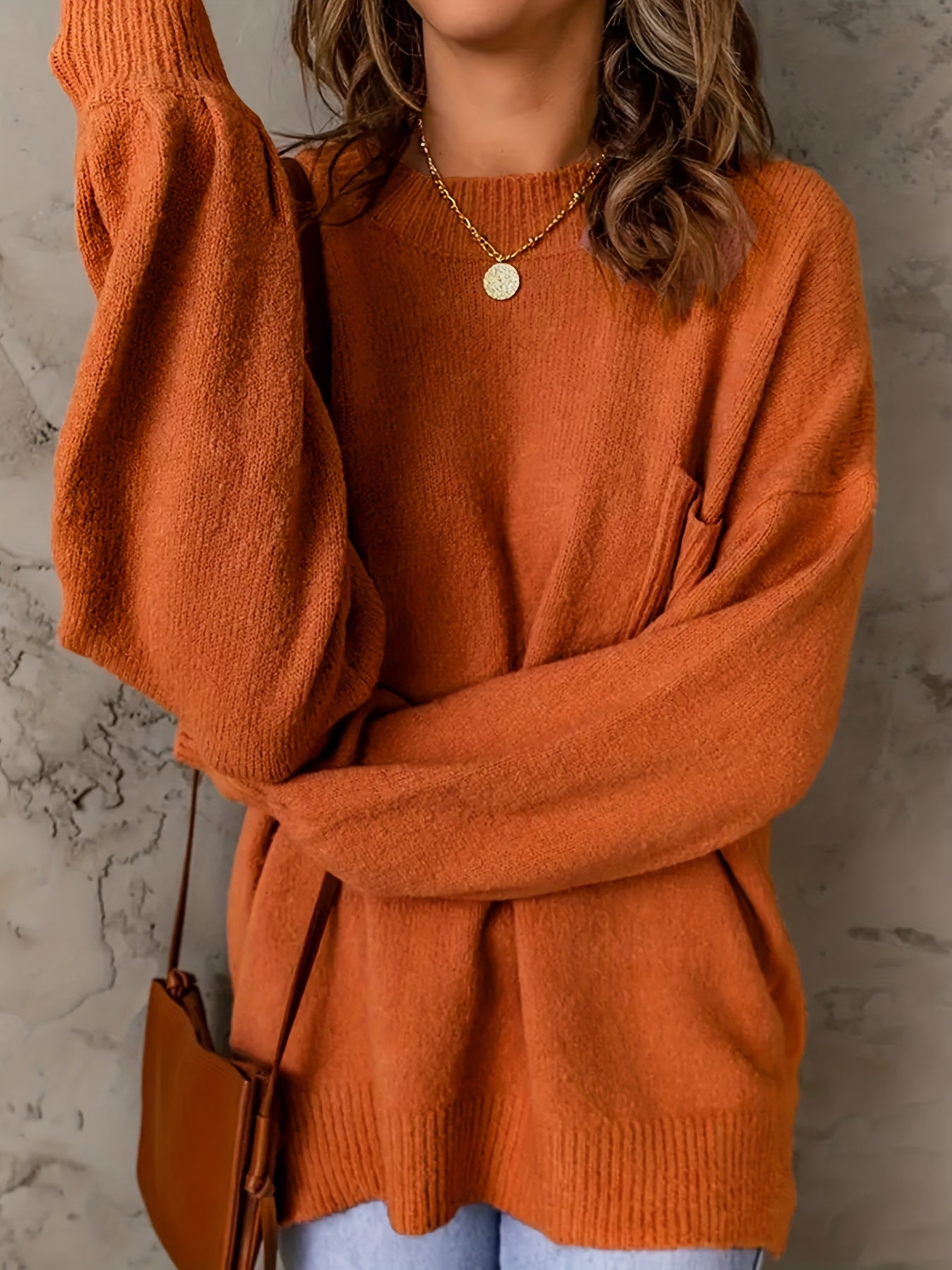 Sixsr Plus Size Casual Sweater, Women's Plus Solid Lantern Sleeve Round Neck Medium Stretch Jumper