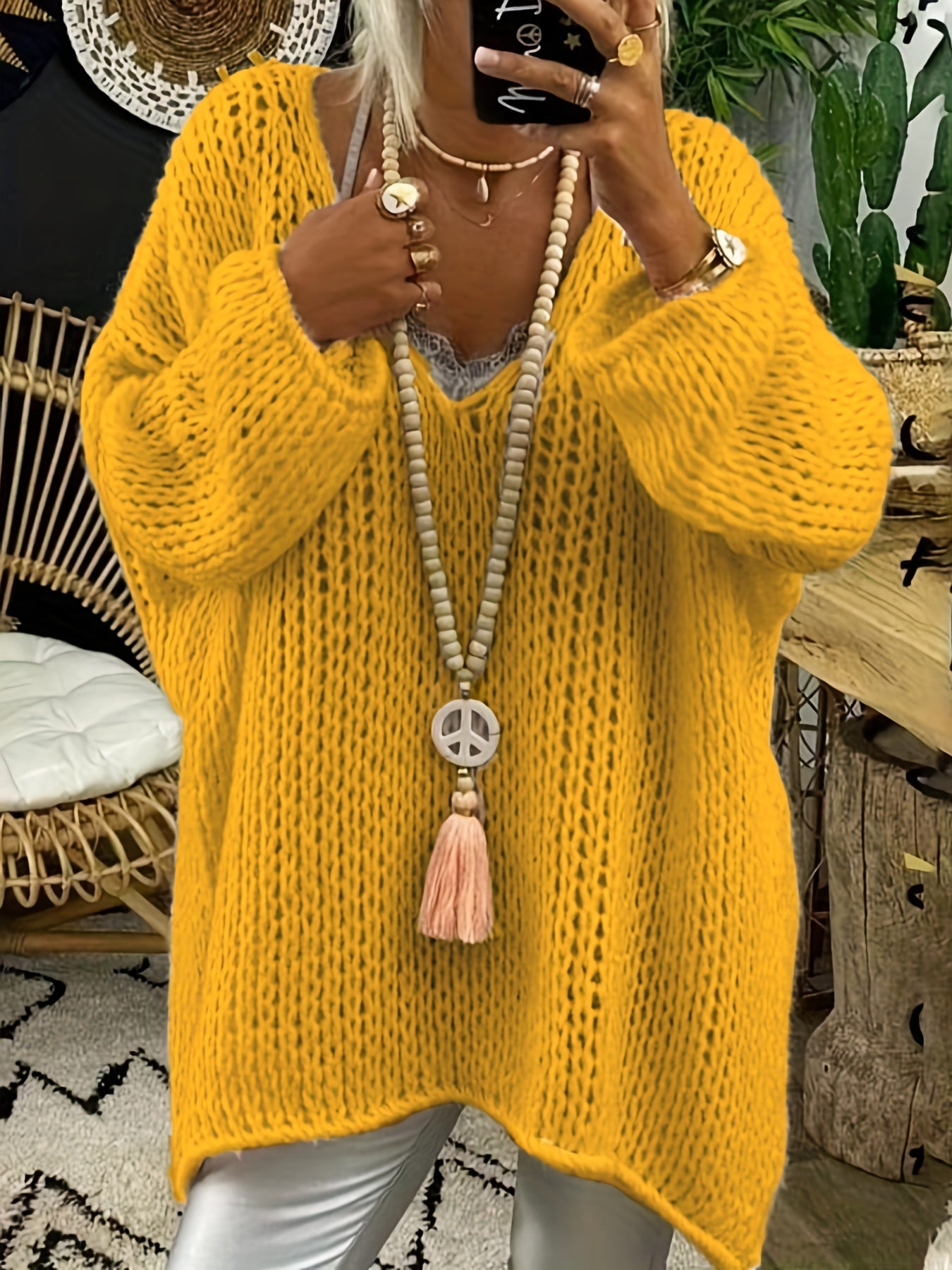 Sixsr Plus Size Casual Sweater, Women's Plus Solid Long Sleeve V Neck Oversized Jumper