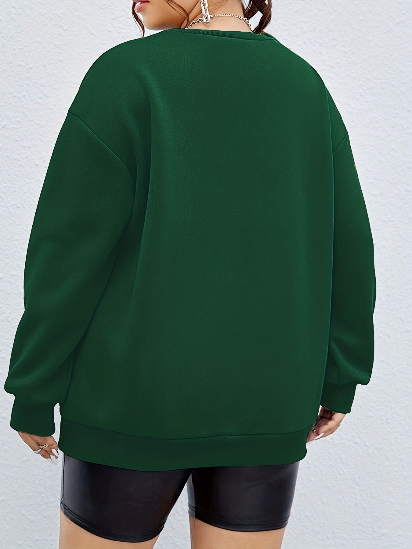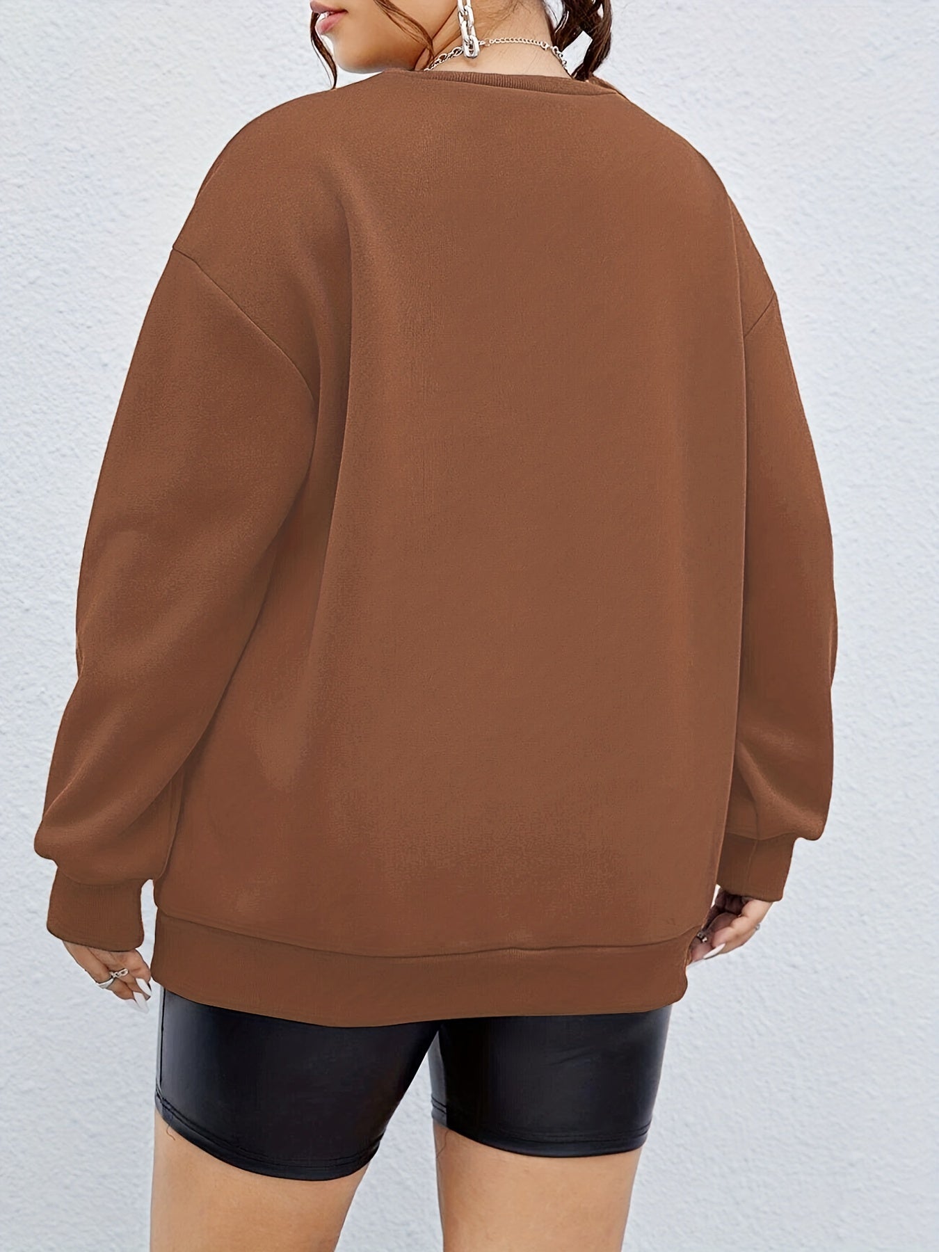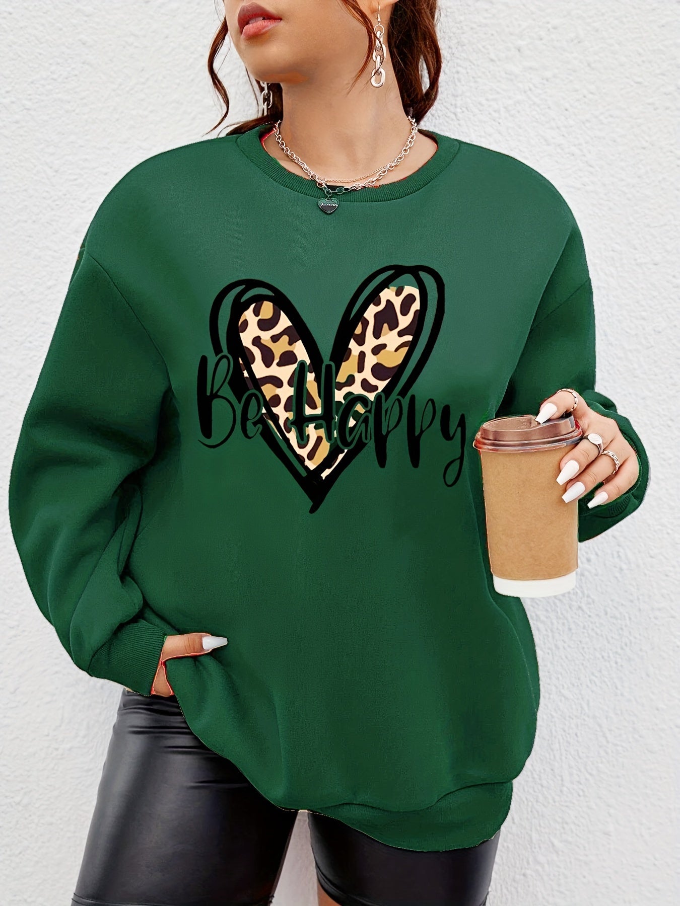 Sixsr Plus Size Casual Sweatshirt, Women's Plus Leopard Heart & Slogan Print Long Sleeve Round Neck Sweatshirt