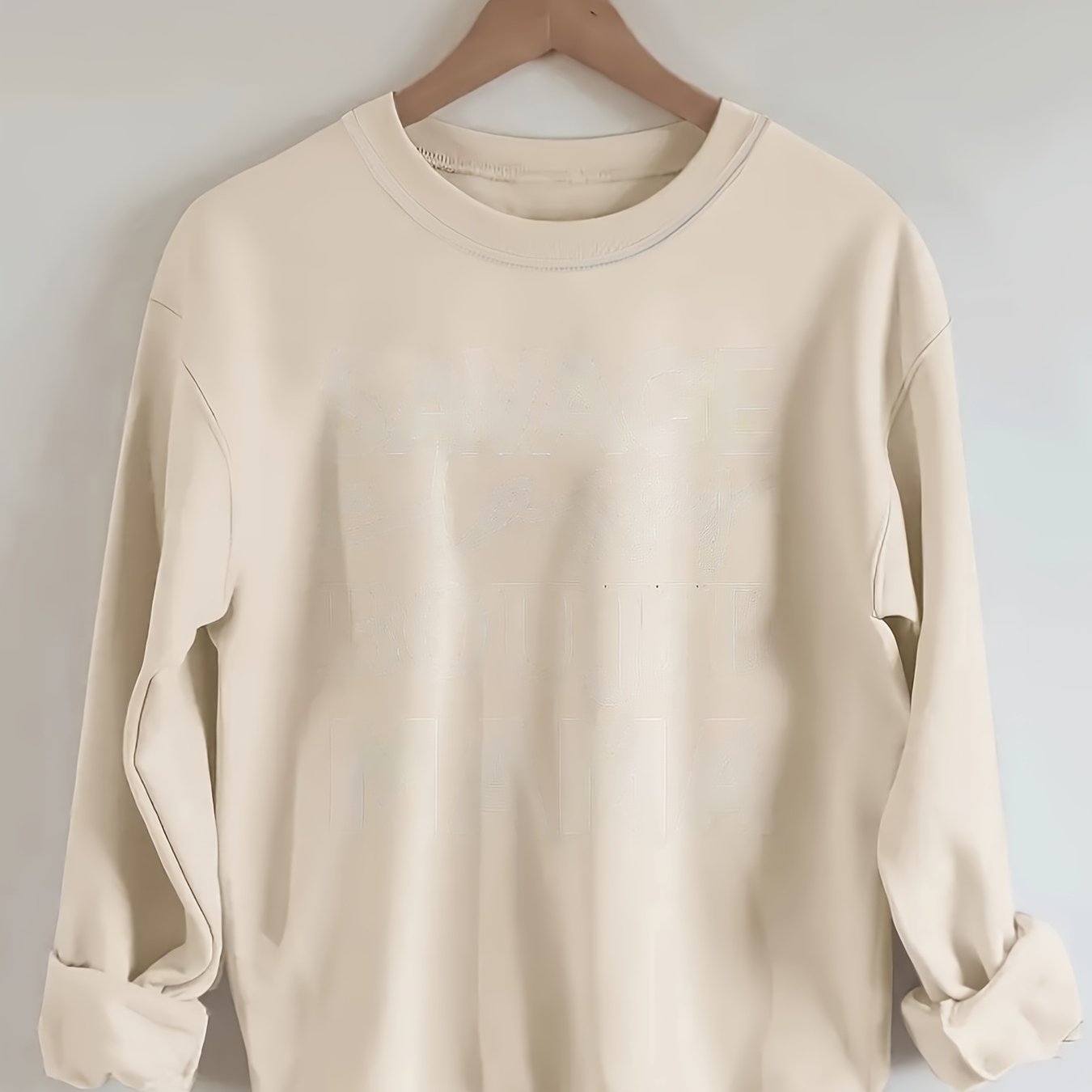 Sixsr Plus Size Casual Sweatshirt, Women's Plus Solid Long Sleeve Drop Shoulder Round Neck Slight Stretch Pullover Sweatshirt