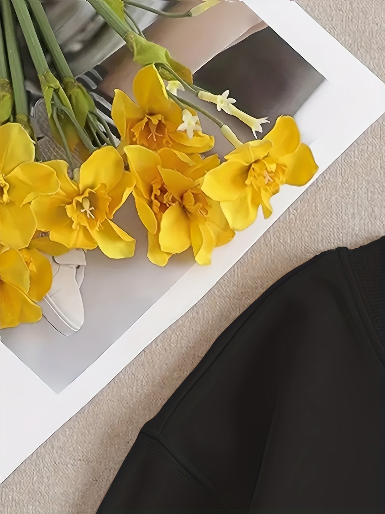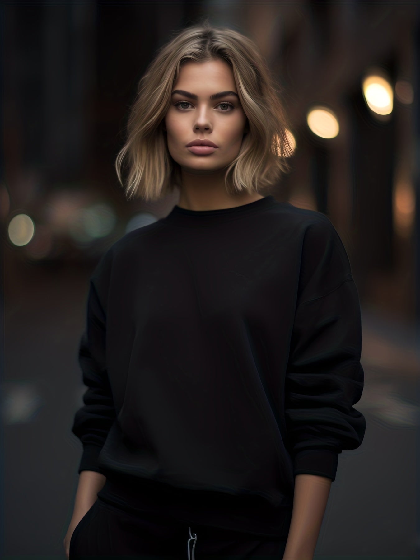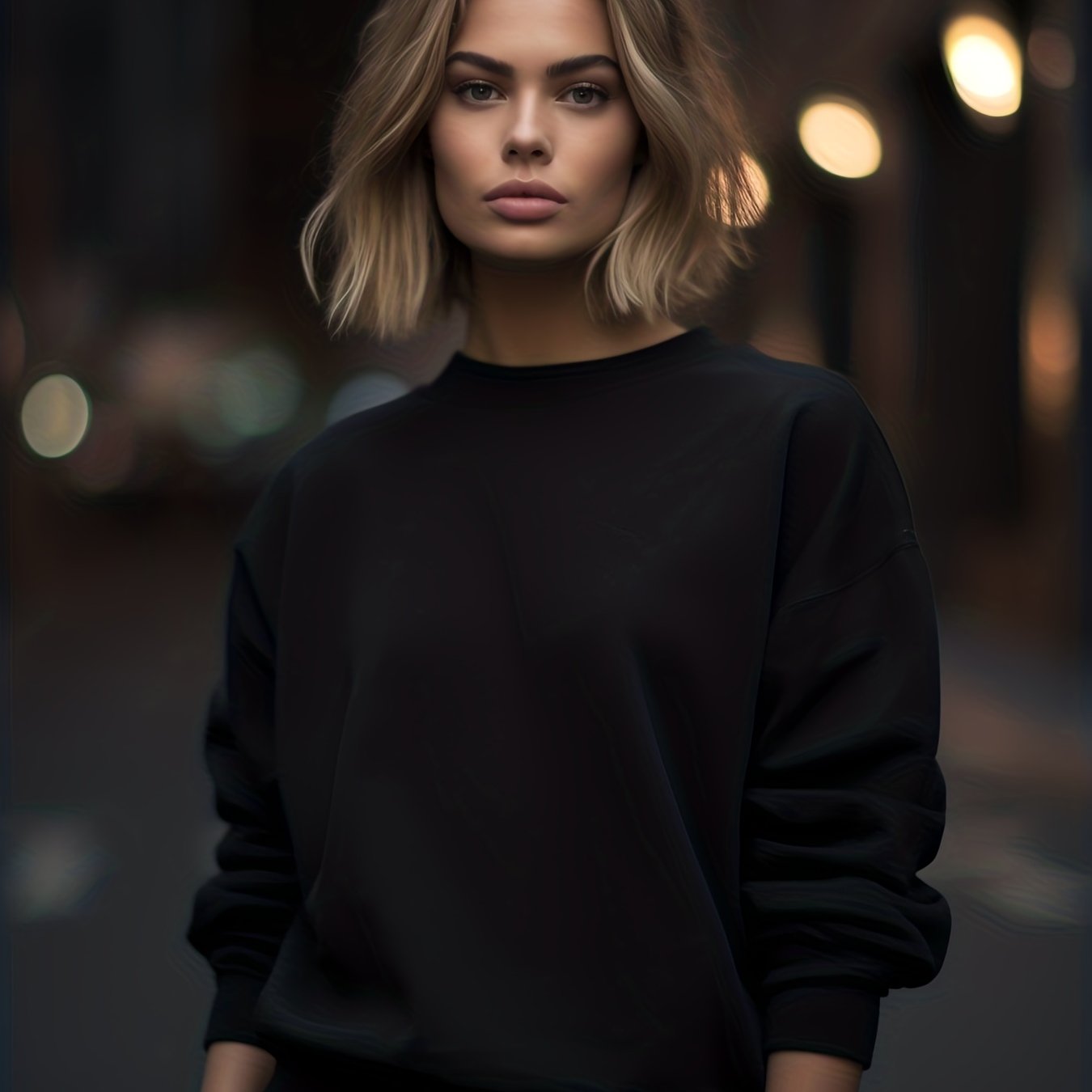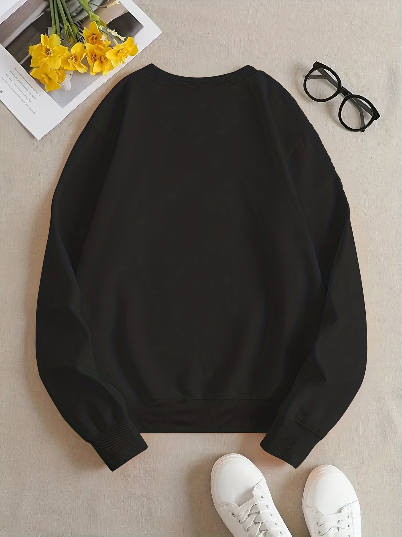 Sixsr Plus Size Casual Sweatshirt, Women's Plus Solid Long Sleeve Round Neck Slight Stretch Sweatshirt