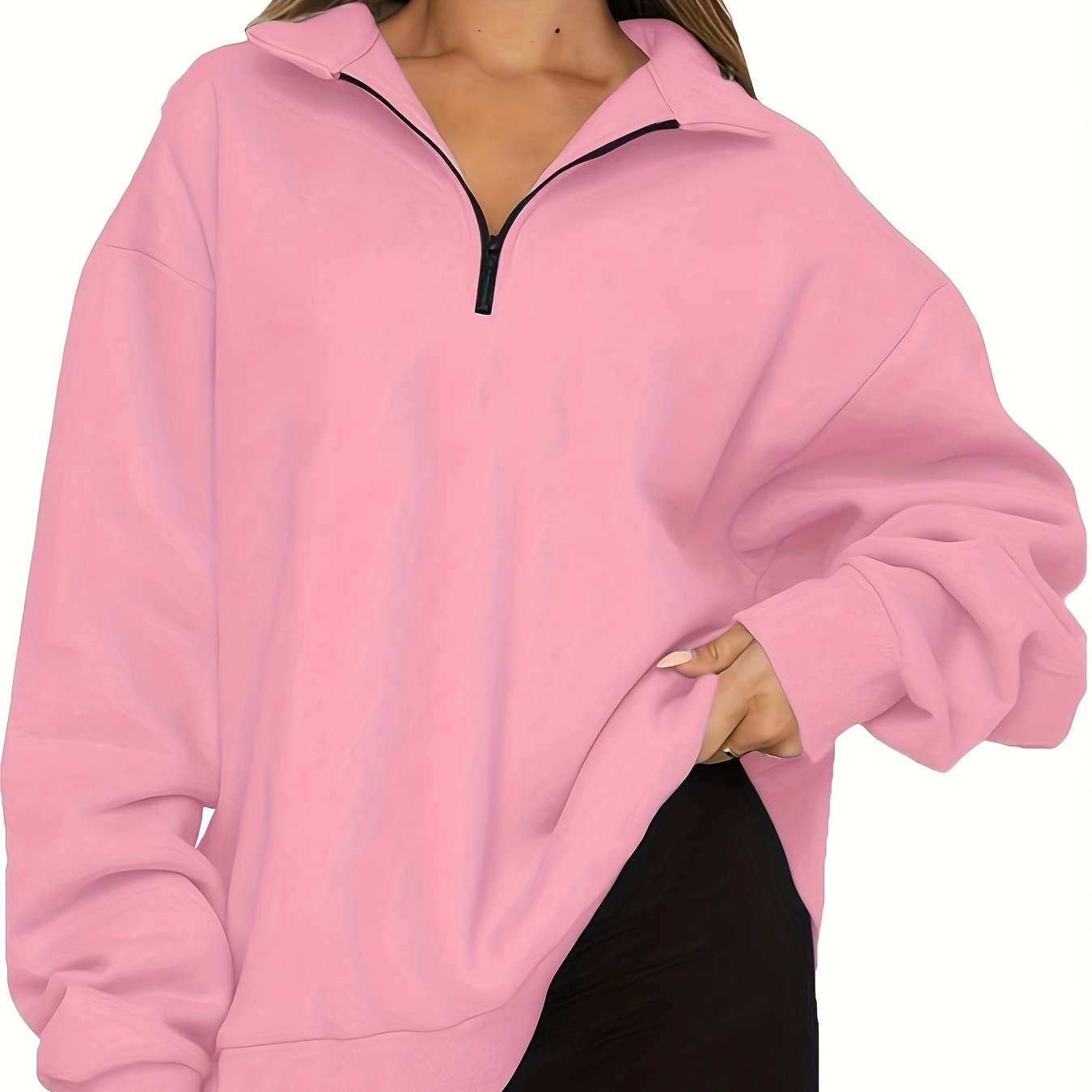 Sixsr Plus Size Casual Sweatshirt, Women's Plus Solid Long Sleeve Zip Up Lapel Collar Pullover Sweatshirt, Casual Tops For Fall & Winter, Women's Clothing