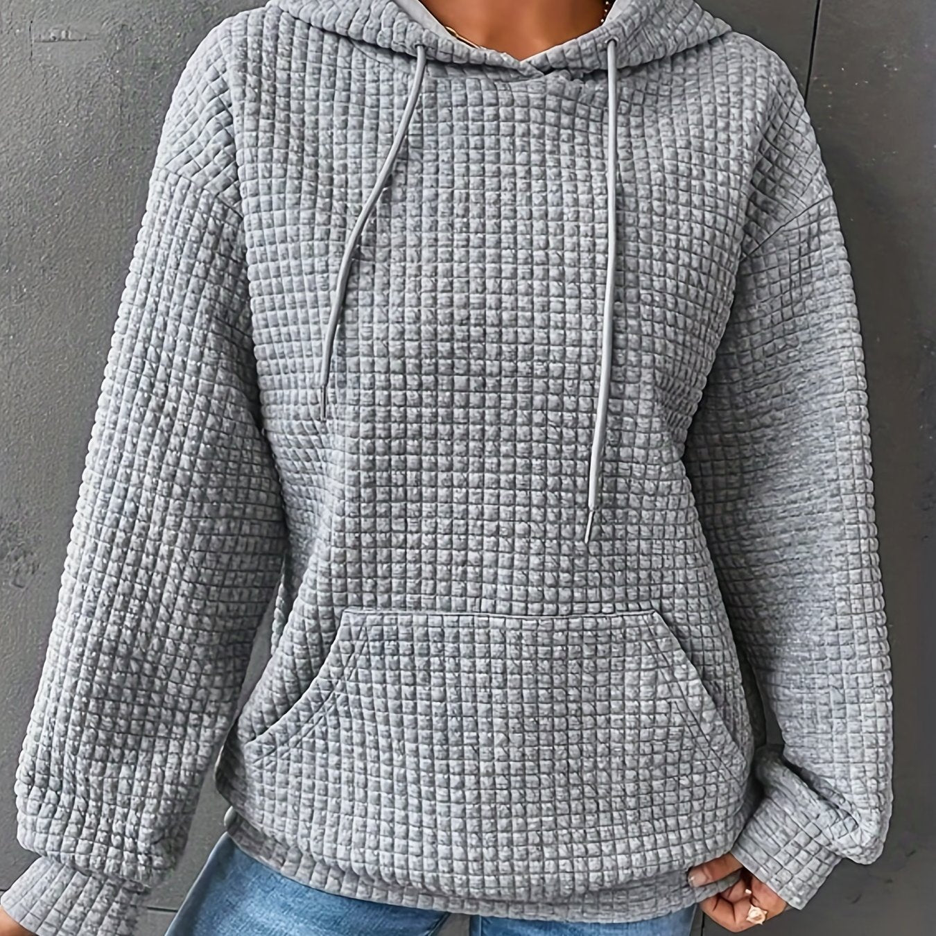 Sixsr Plus Size Casual Sweatshirt, Women's Plus Solid Waffle Knit Long Sleeve Drawstring Hoodie With Giant Pocket