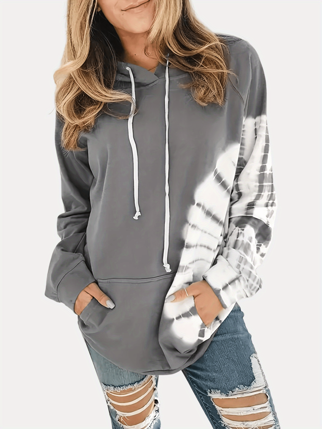 Sixsr Plus Size Casual Sweatshirt, Women's Plus Tie Dye Long Sleeve Drawstring Hooded Pullover Sweatshirt With Kangaroo Pockets, Casual Tops For Fall & Winter, Plus Size Women's Clothing