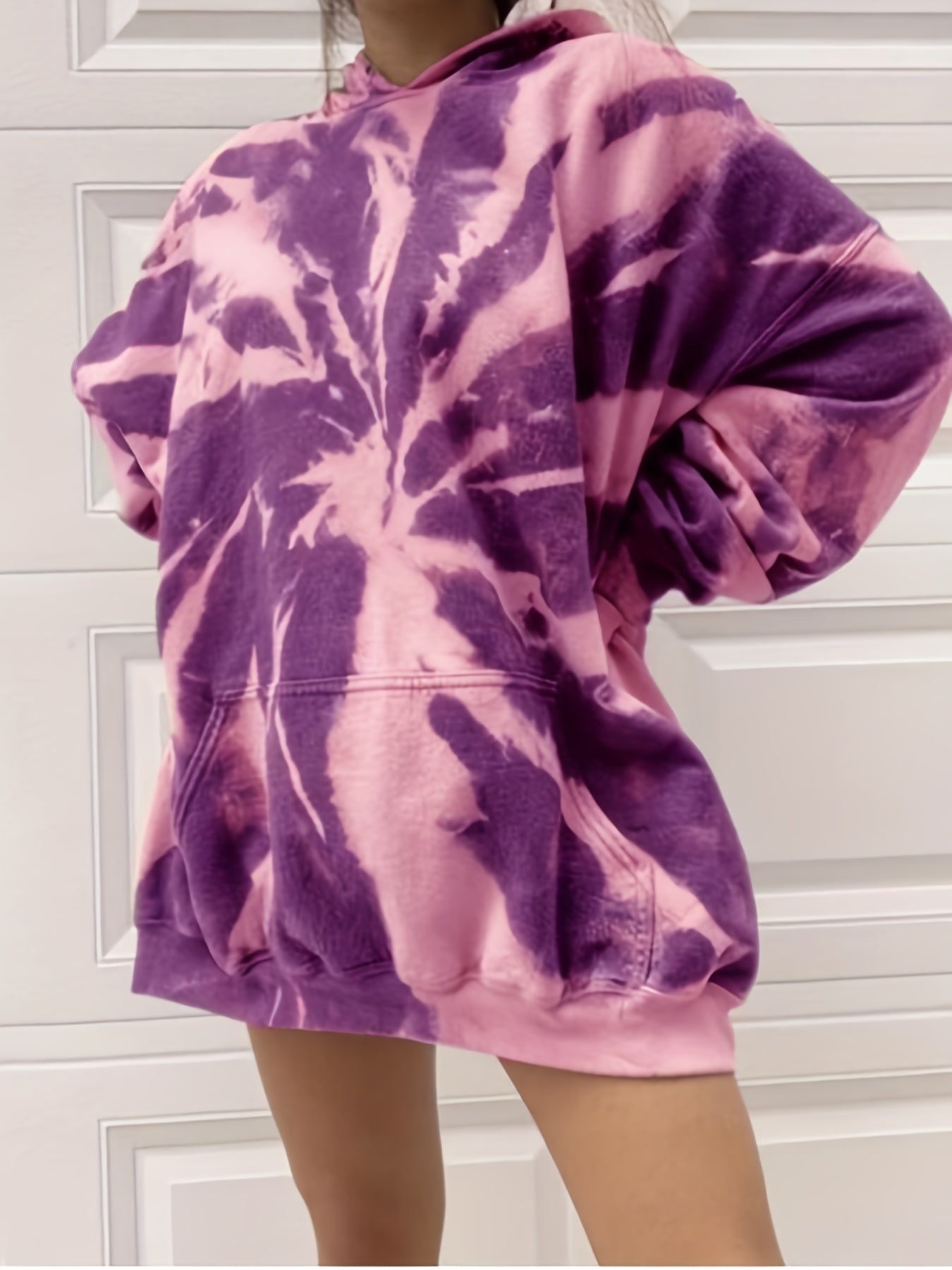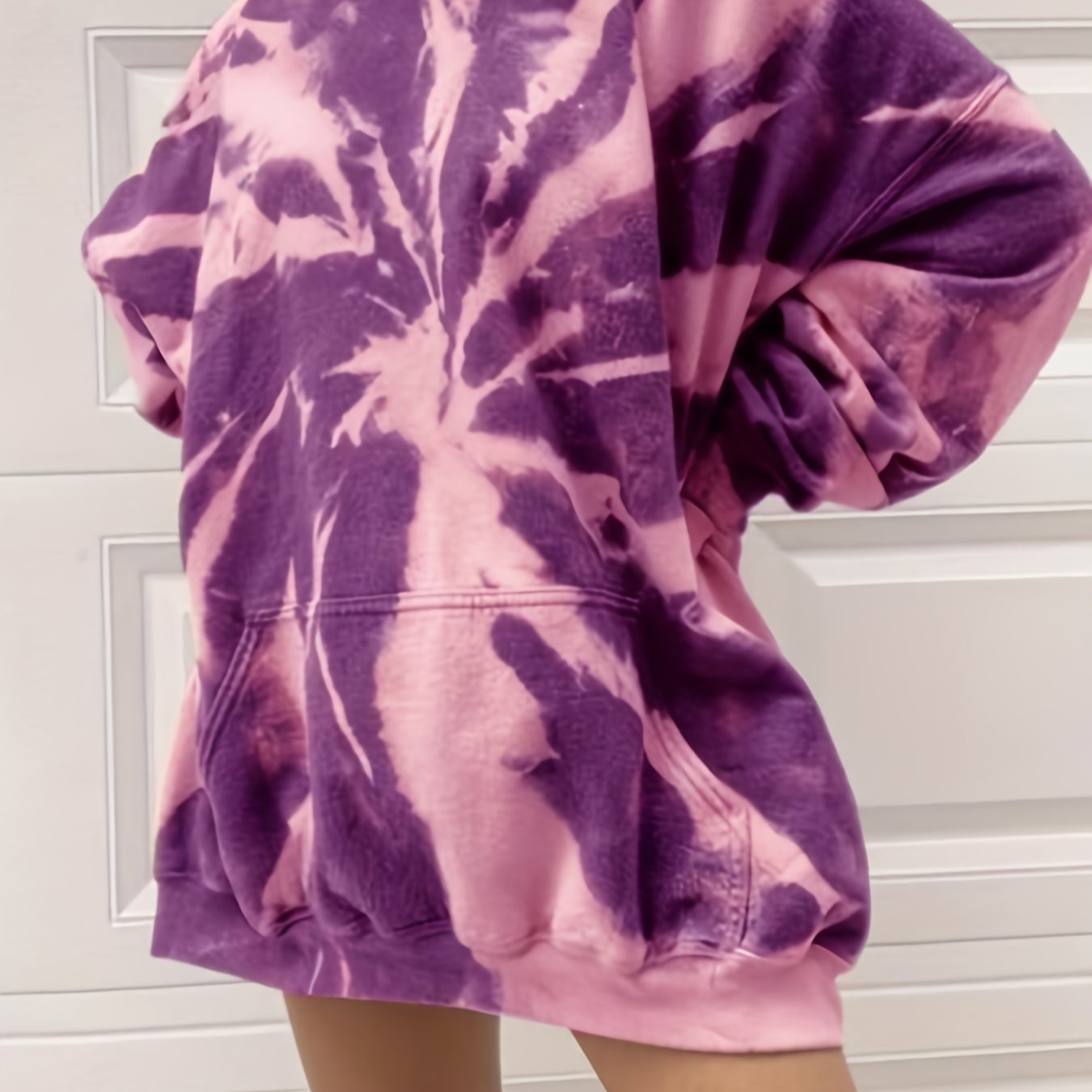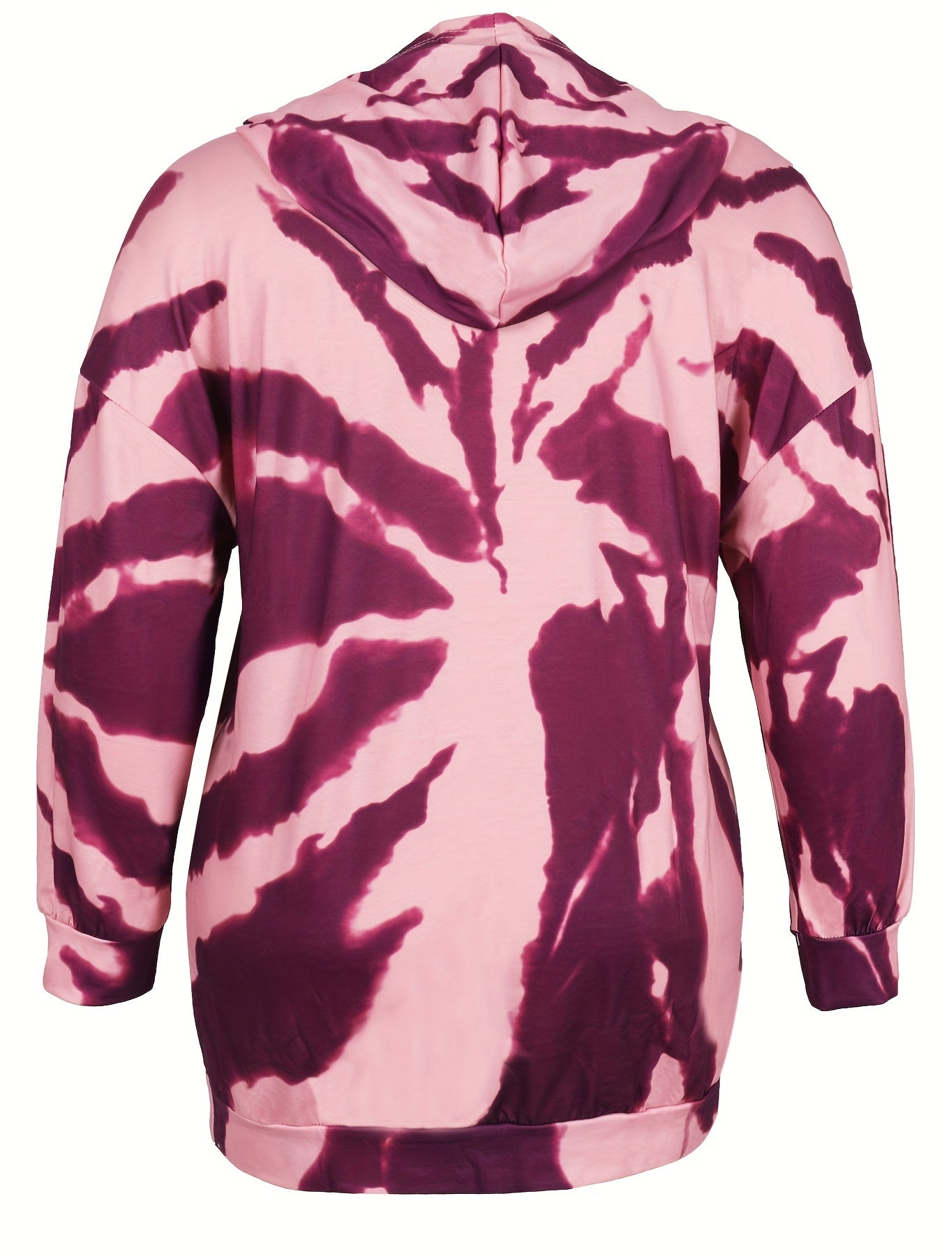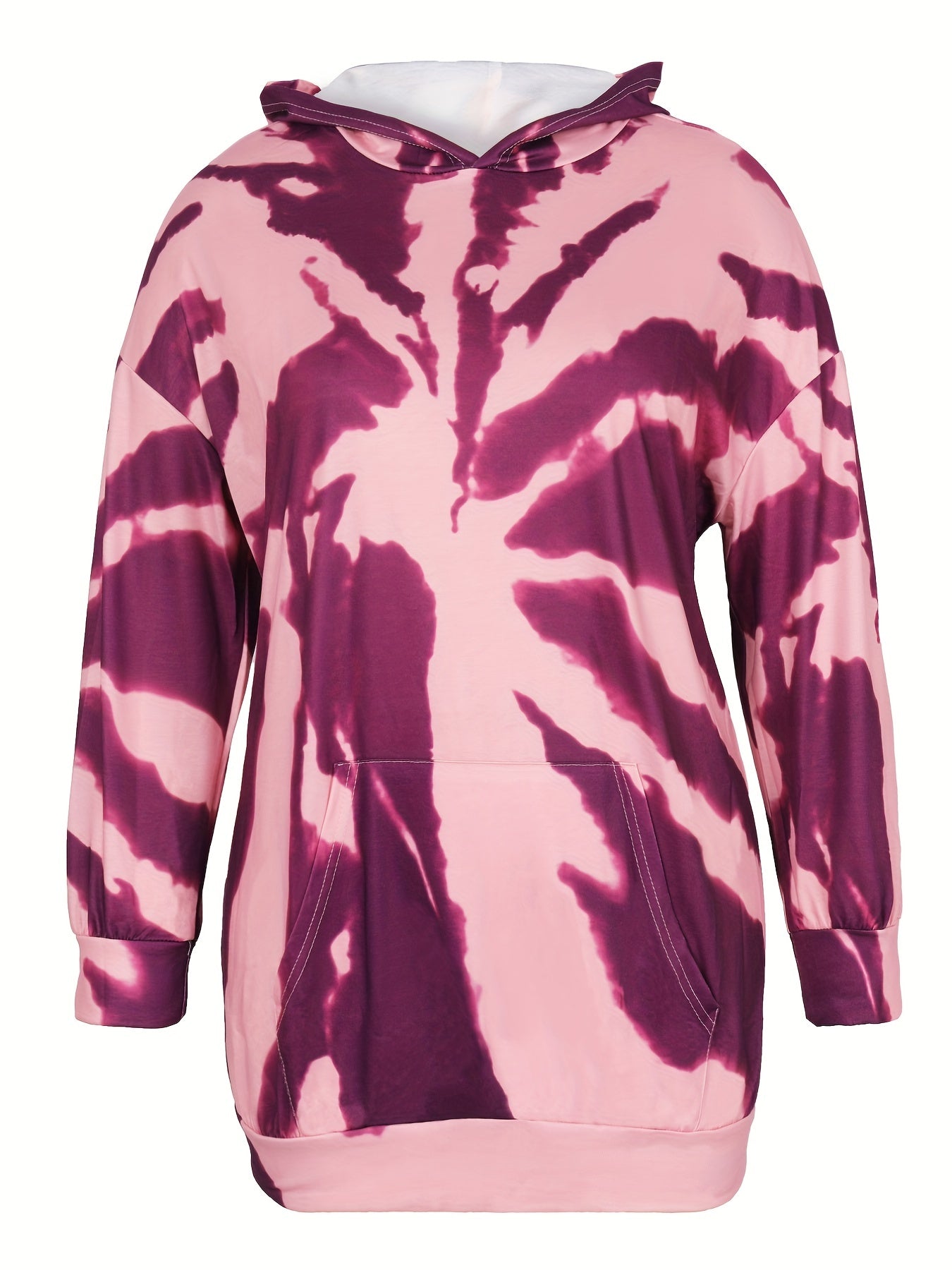 Sixsr Plus Size Casual Sweatshirt, Women's Plus Tie Dye Long Sleeve Slight Stretch Hoodie With Pocket