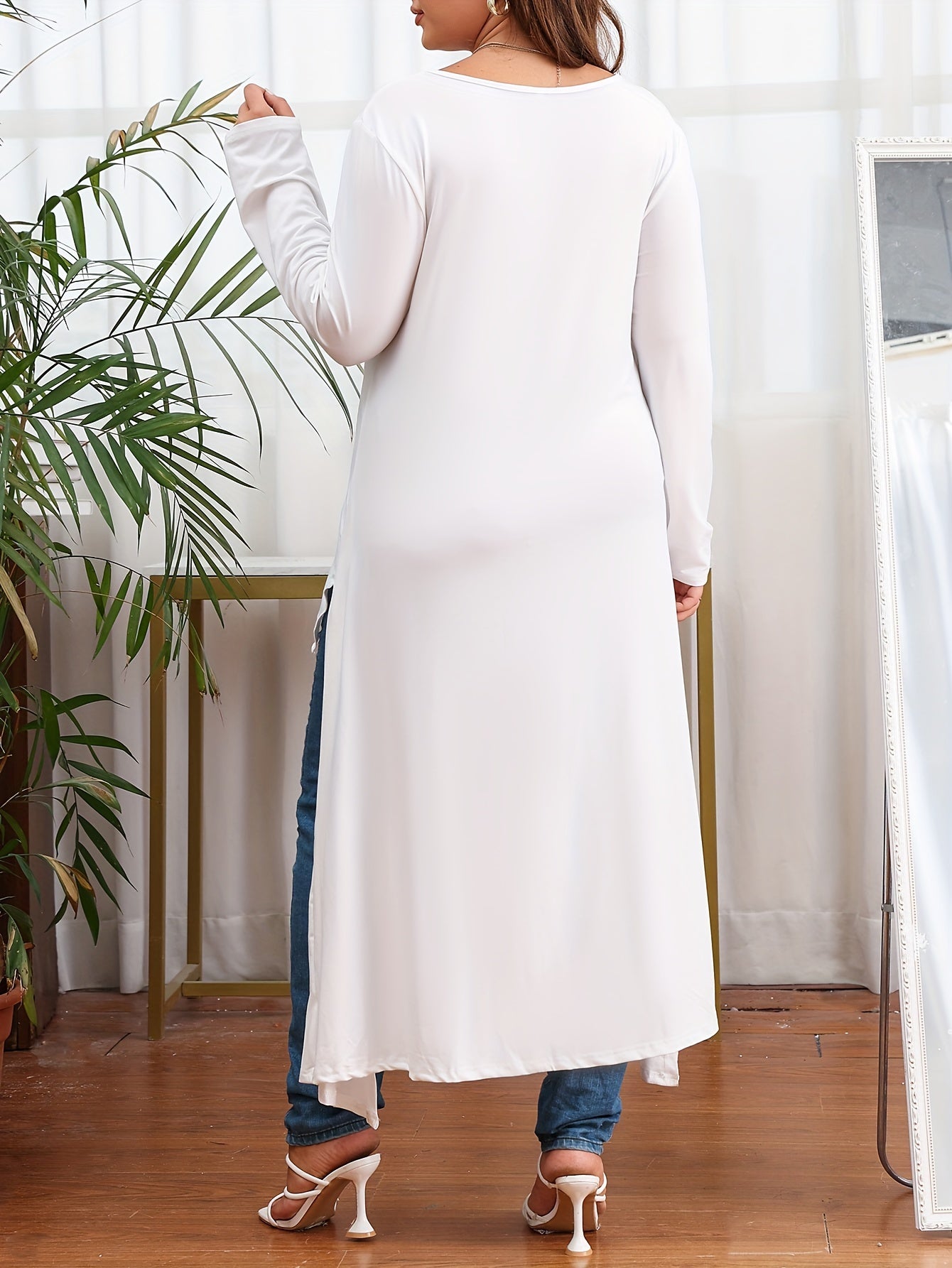Sixsr Plus Size Casual Top, Women's Plus Figure Print Long Sleeve Round Neck Tunic Top