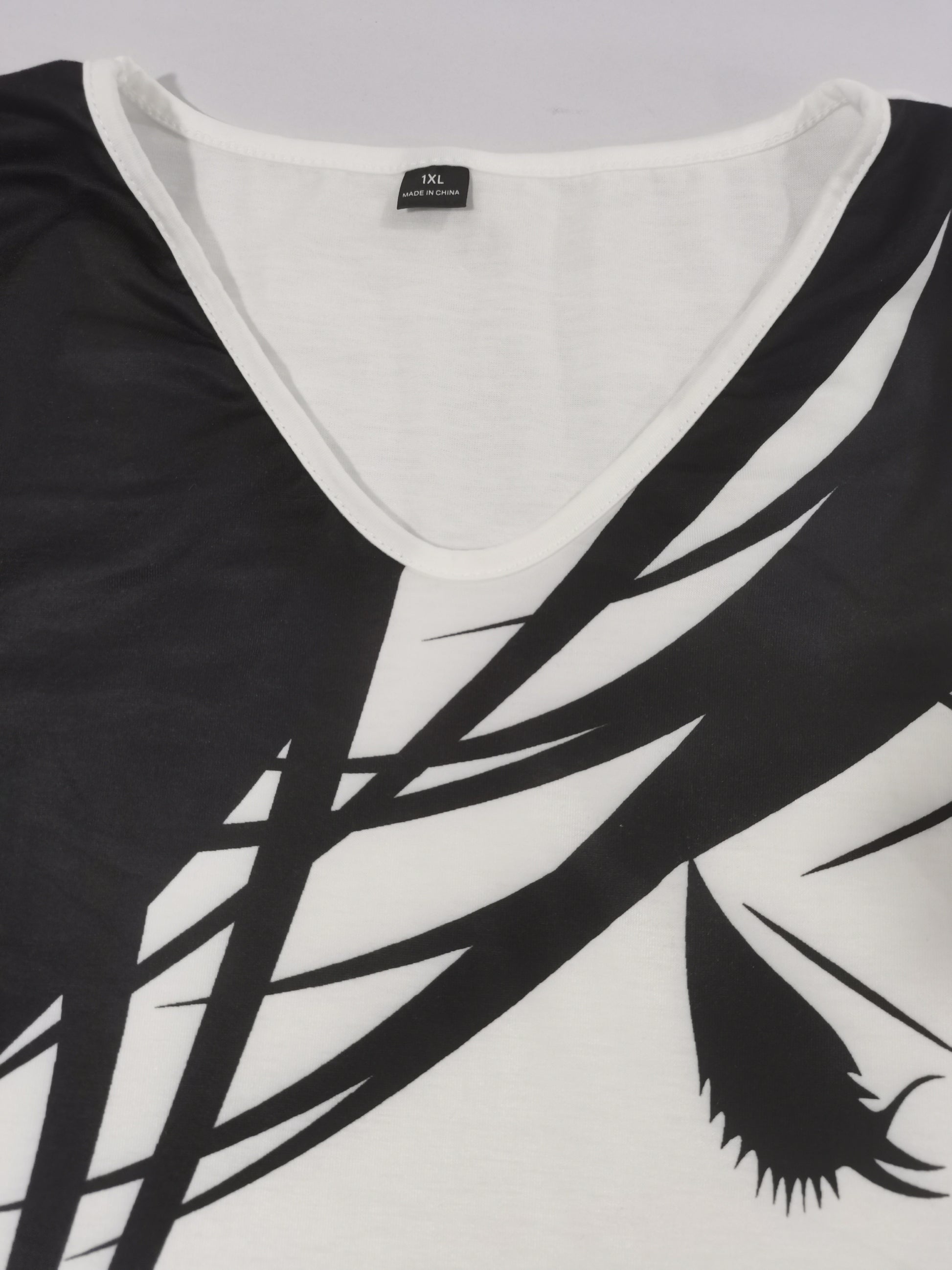 Sixsr Plus Size Casual Top, Women's Plus Figure Print Long Sleeve V Neck Slight Stretch Tunic Top With Pockets