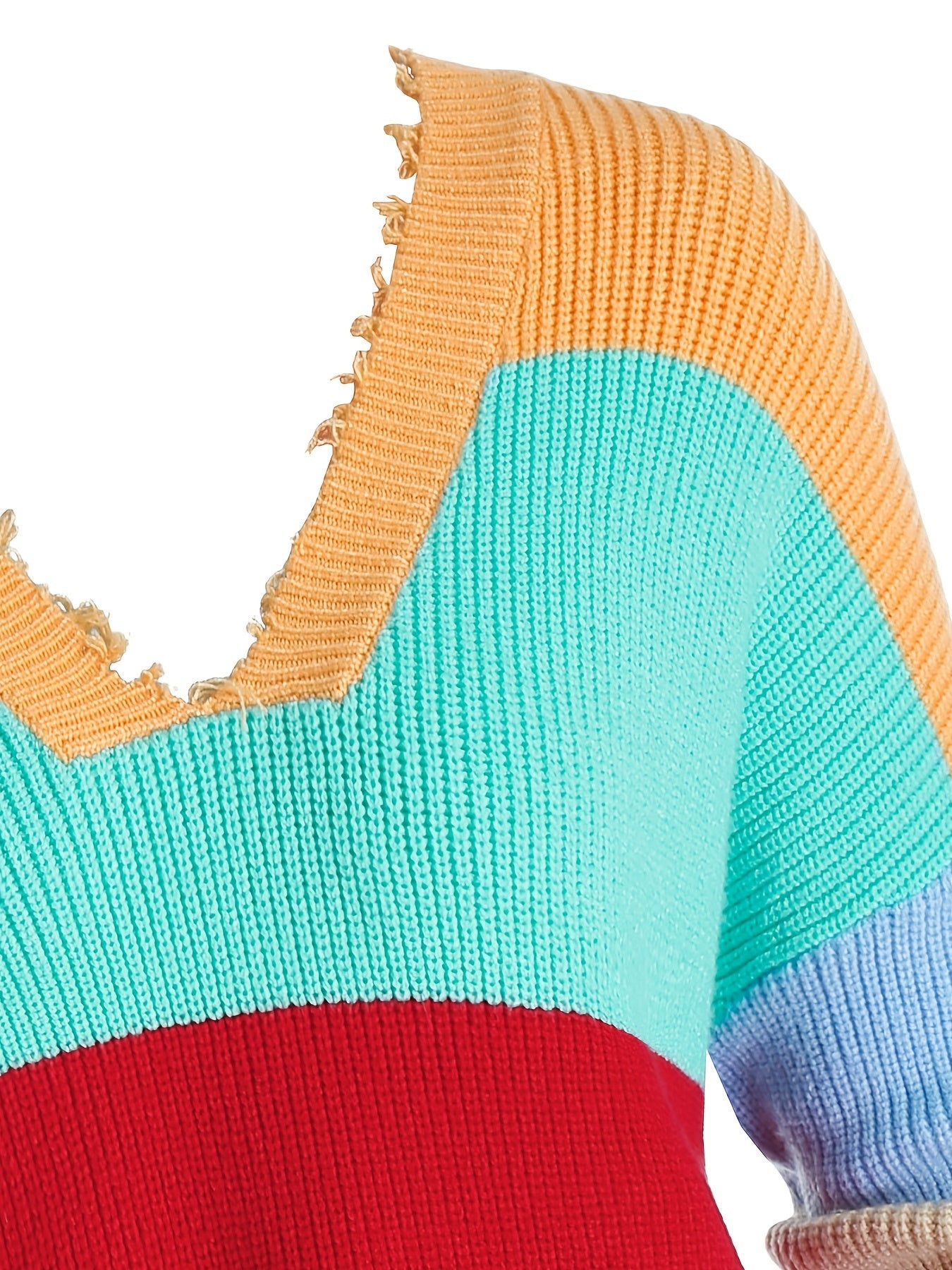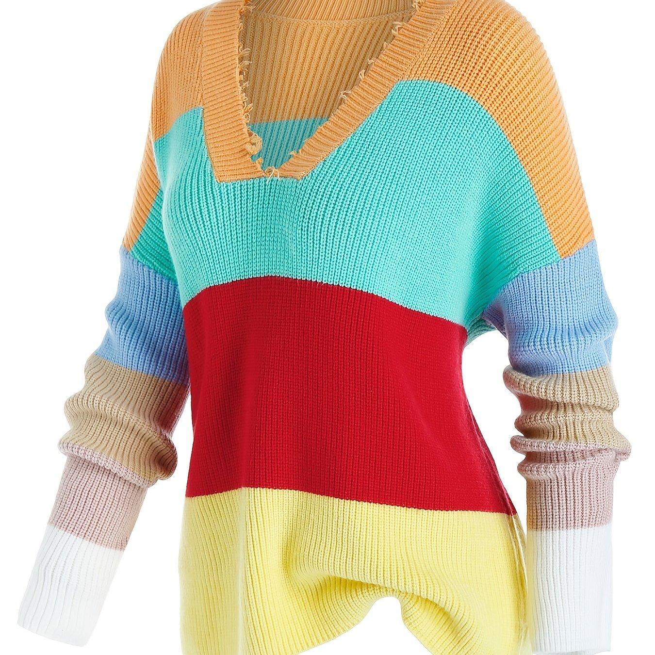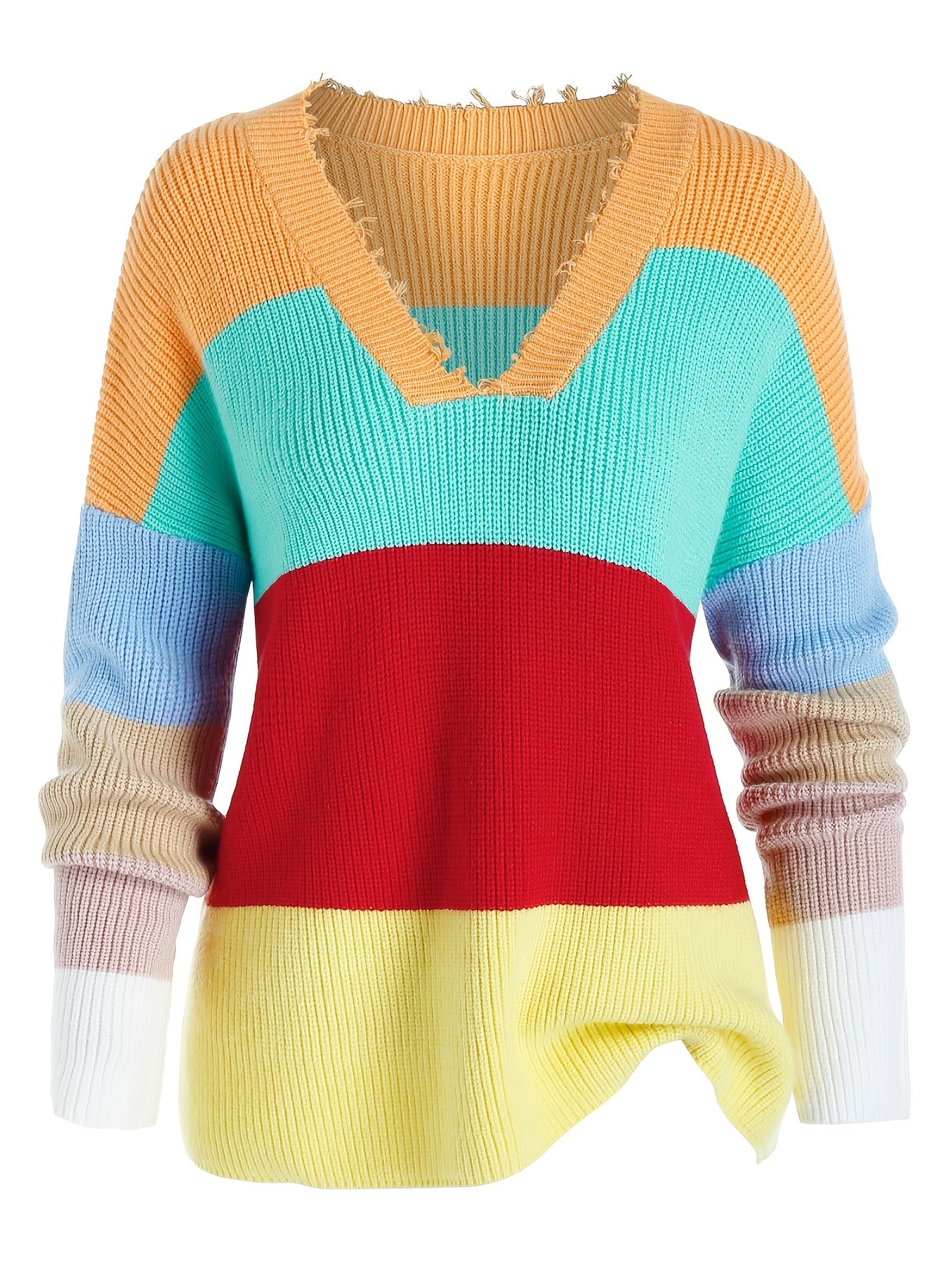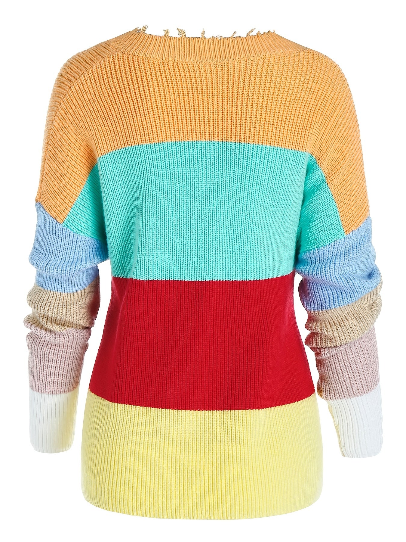 Sixsr Plus Size Color Eyelash Trim Long Sleeve Sweater, Women's Plus Slight Stretch Casual Sweater