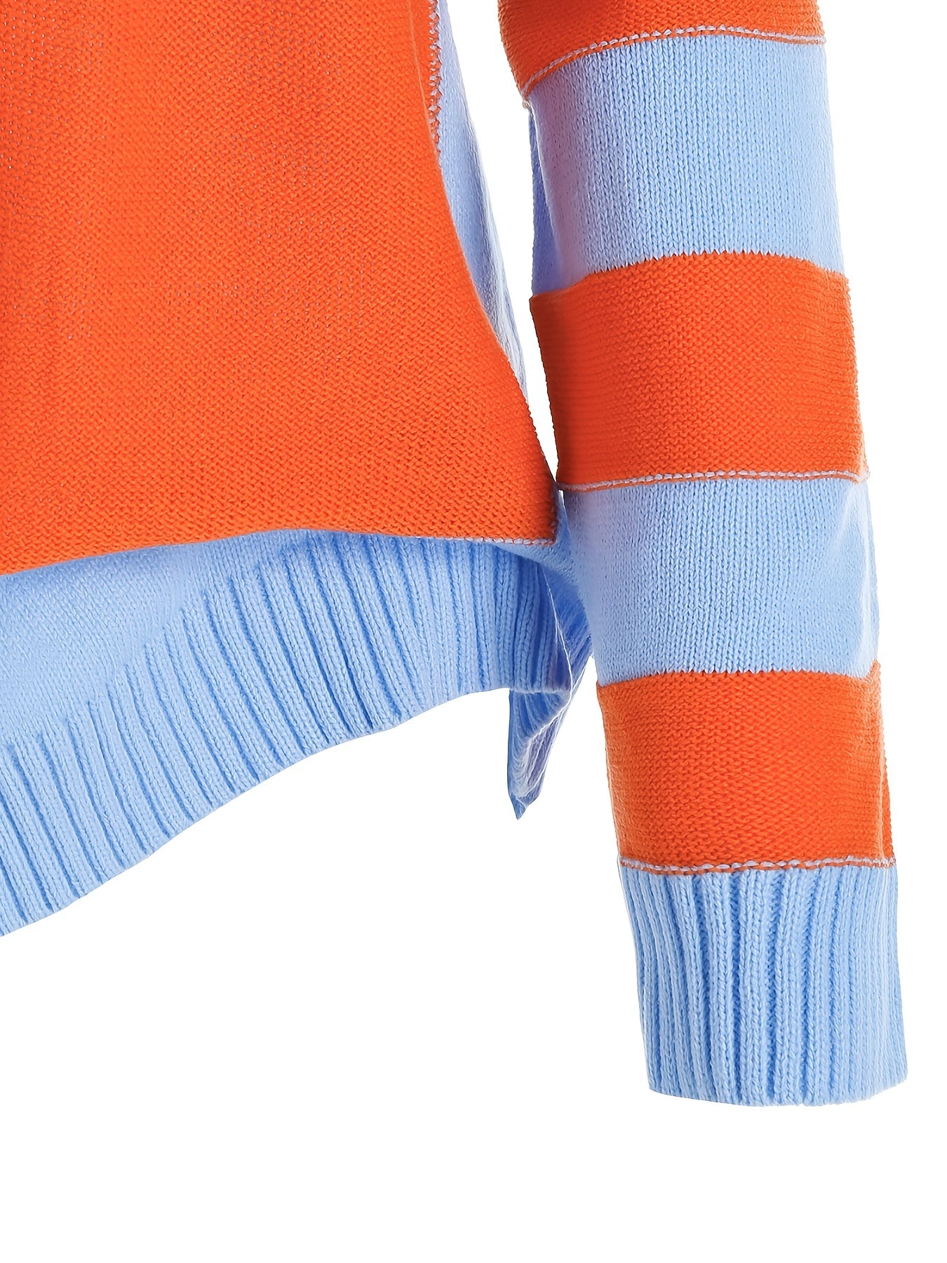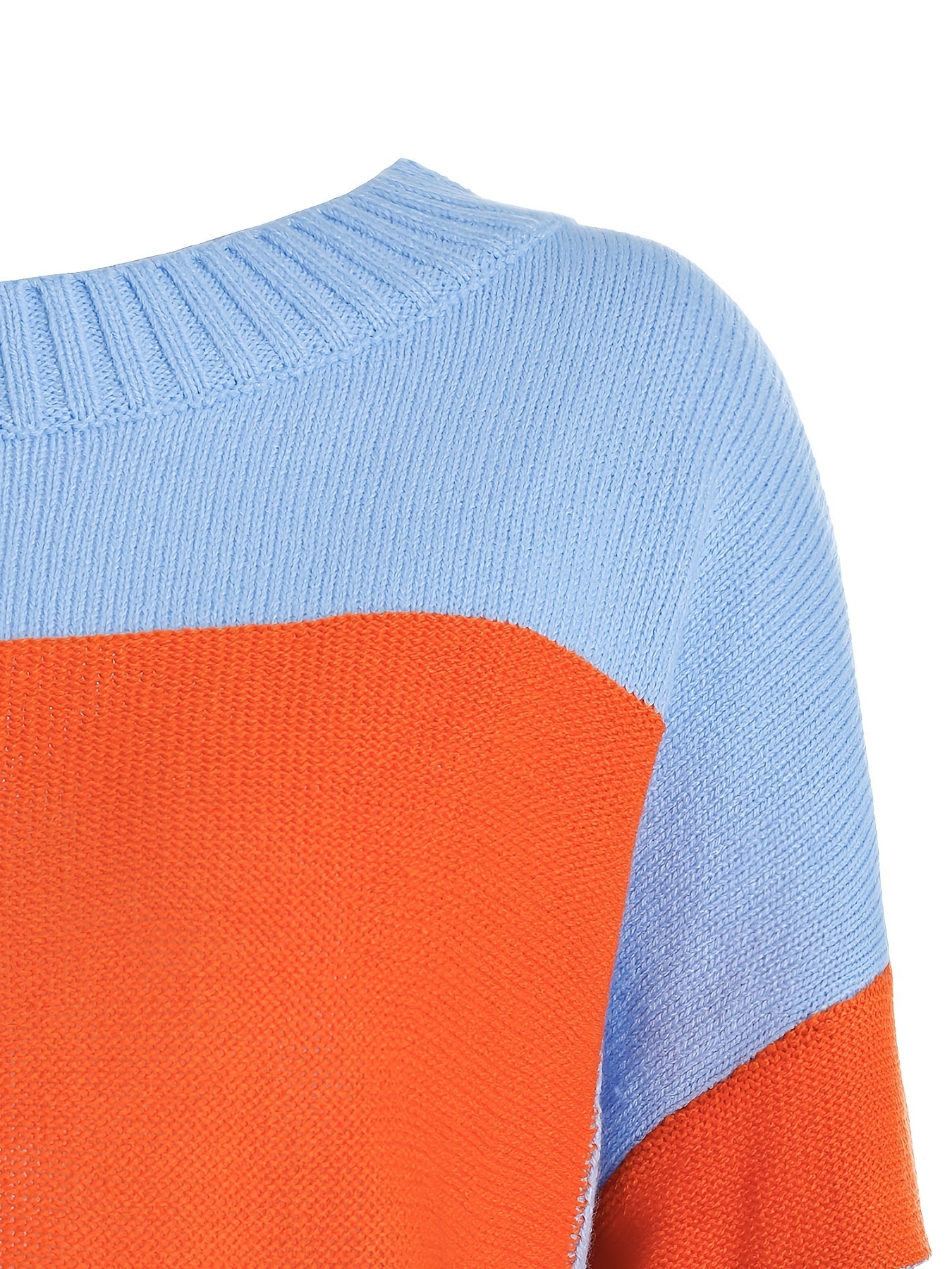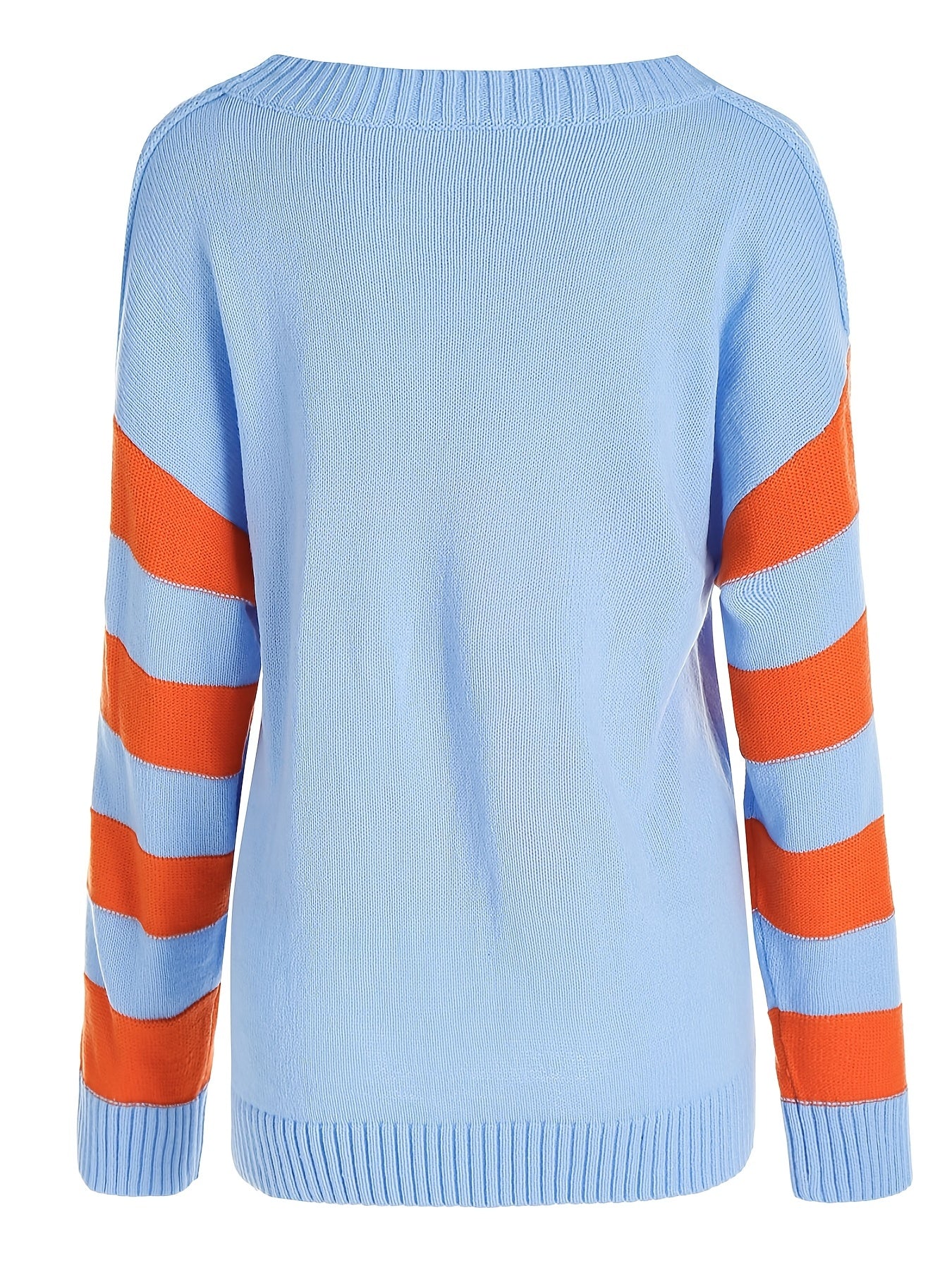 Sixsr Plus Size Colorblock Long Sleeve Pullover Sweater, Women's Plus Slight Stretch Casual Sweater