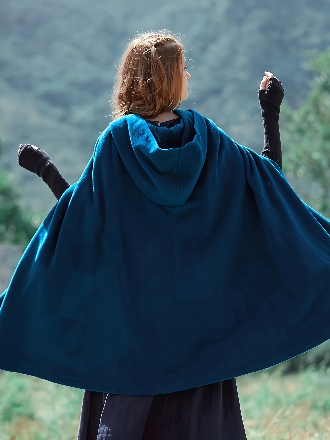 Sixsr Plus Size Elegant Coat, Women's Plus Solid Split Cape Sleeve Button Detail Hooded Shawl Coat