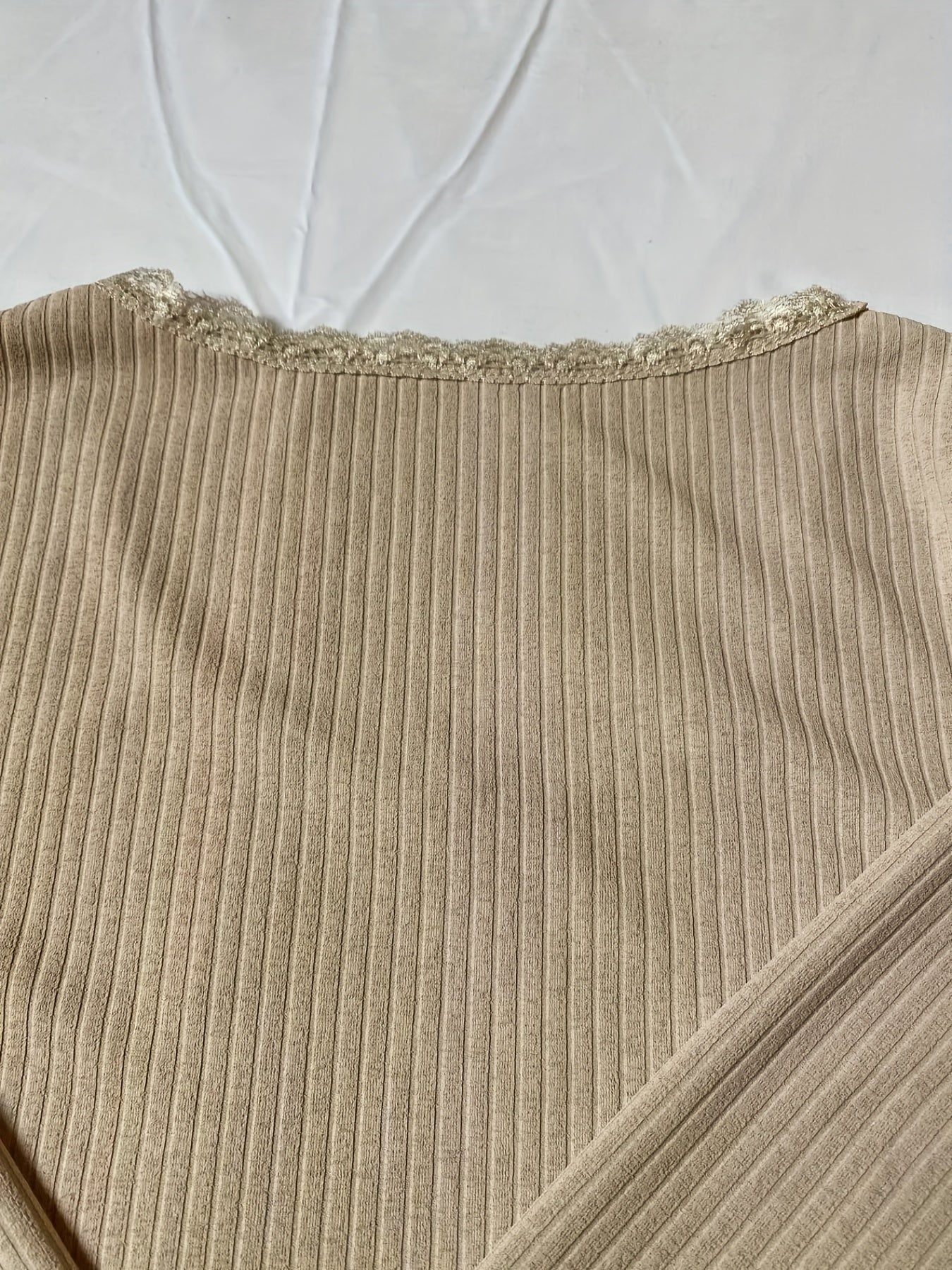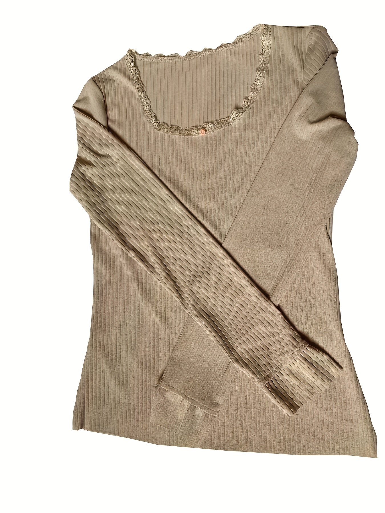 Sixsr Plus Size Elegant Sweater, Women's Plus Contrast Lace Ribbed Mini Decor Long Sleeve Thin Sweater