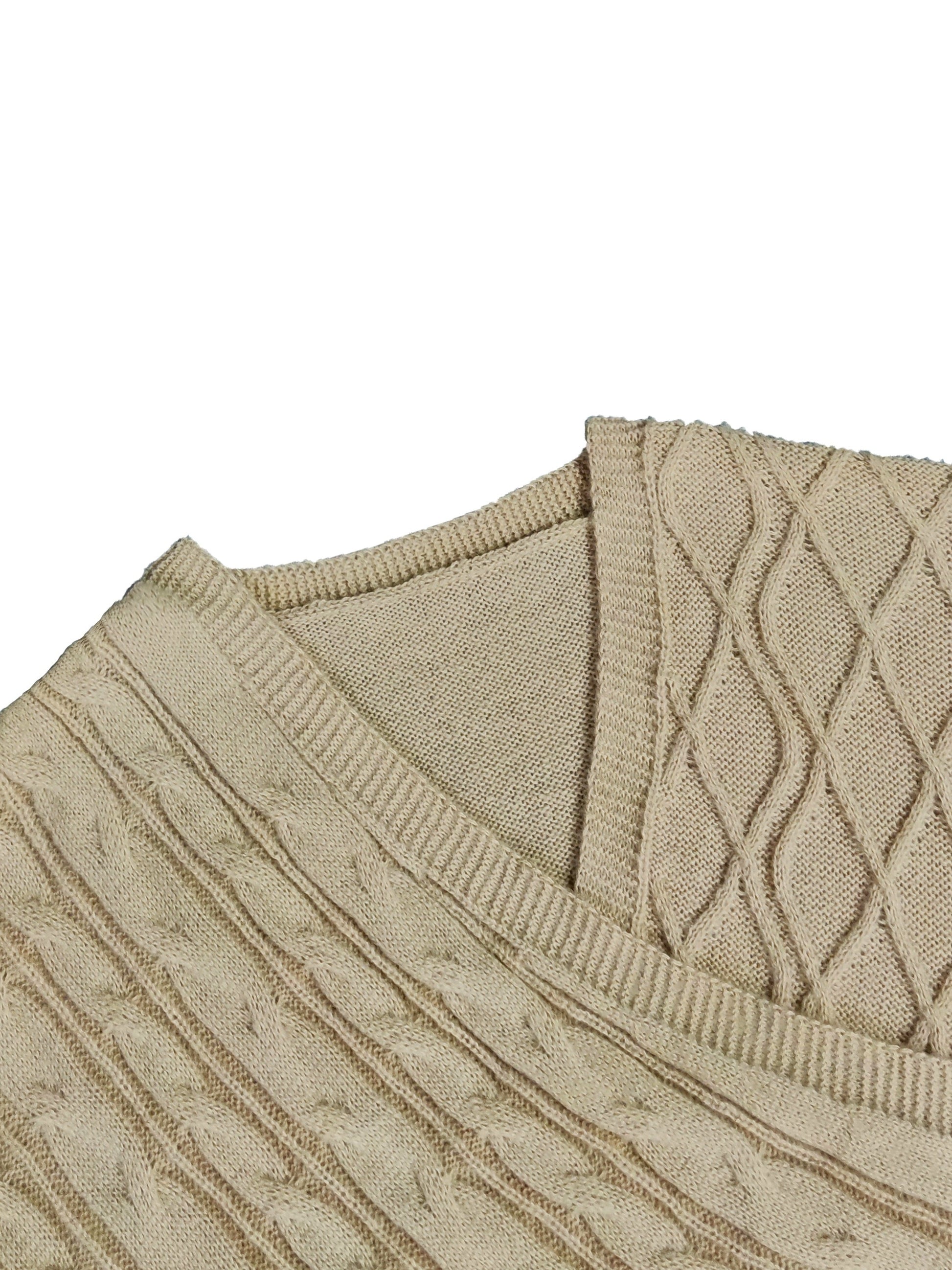 Sixsr Plus Size Elegant Sweater, Women's Plus Solid Cable Drop Shoulder Long Sleeve Wrap Cross V Neck Jumper