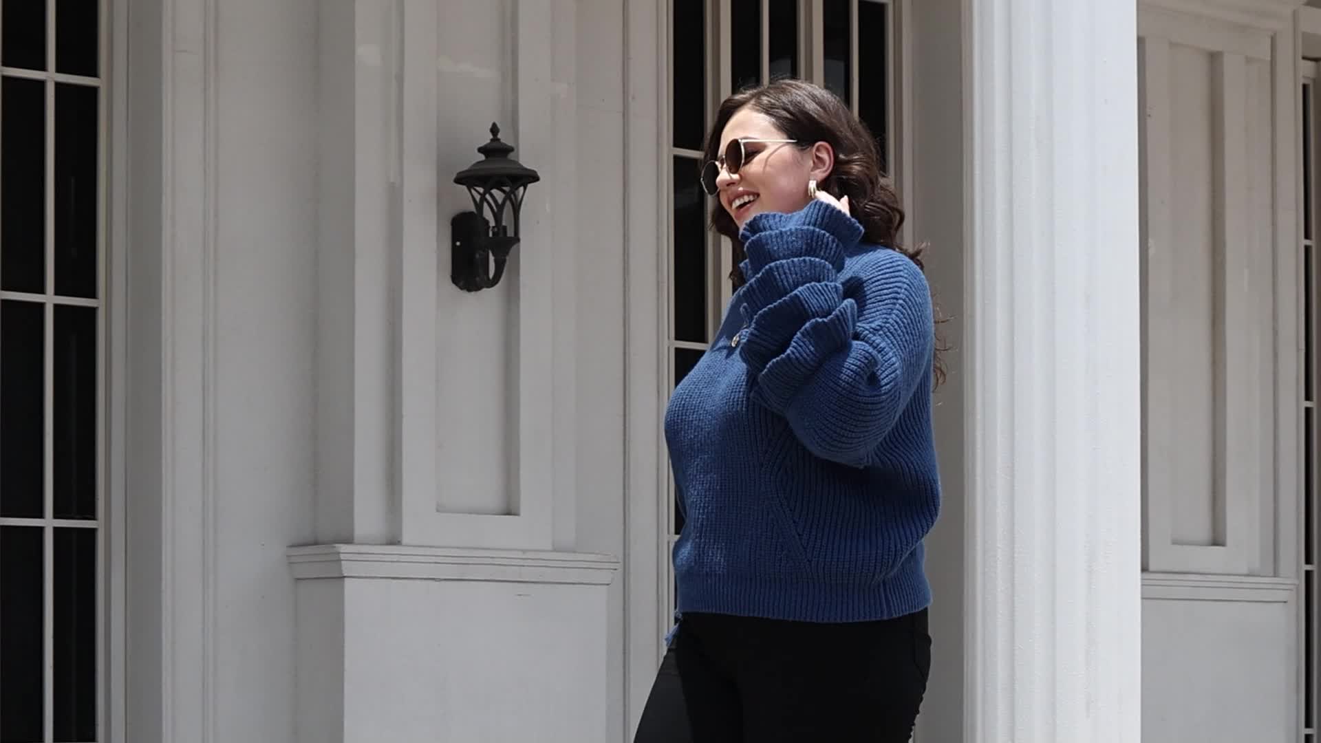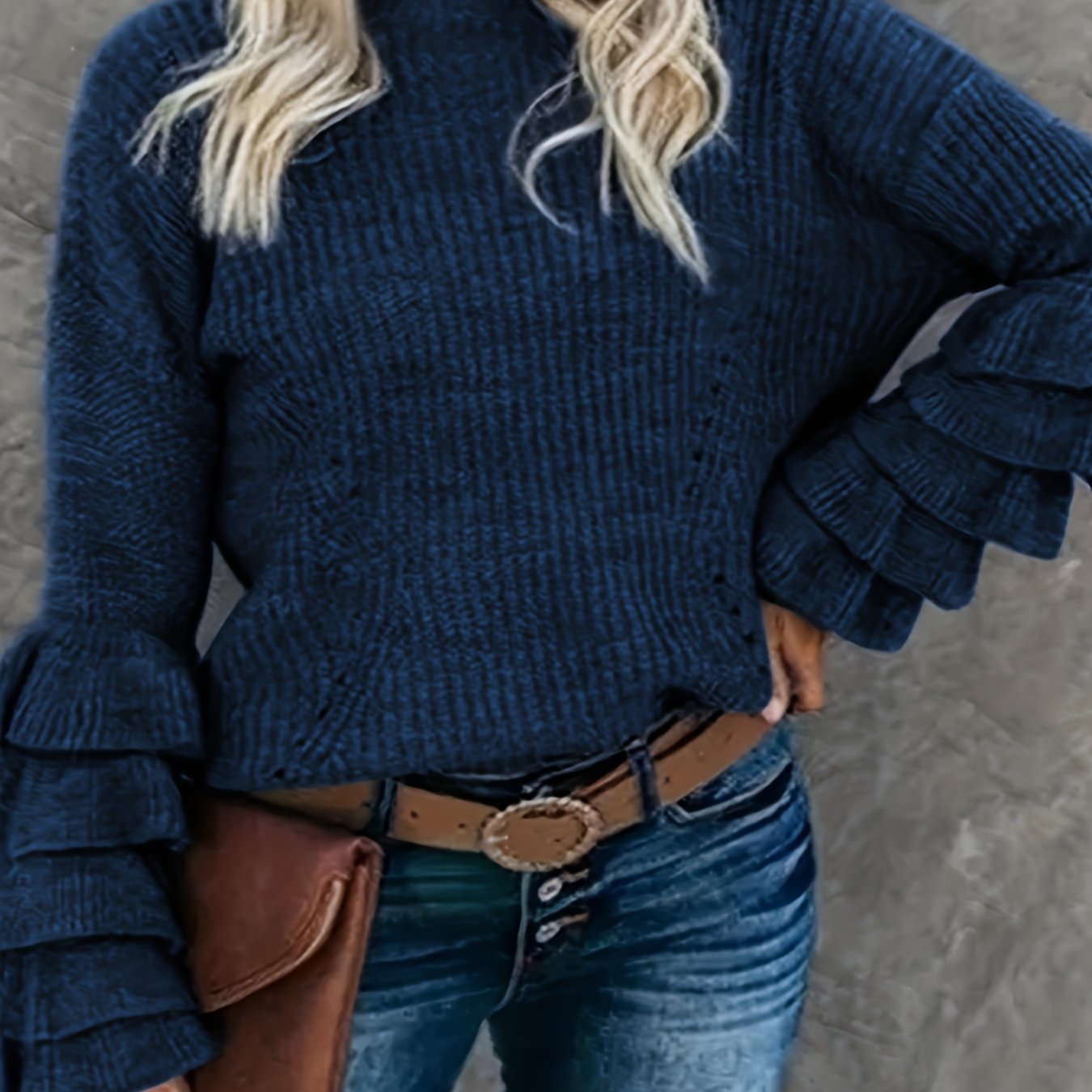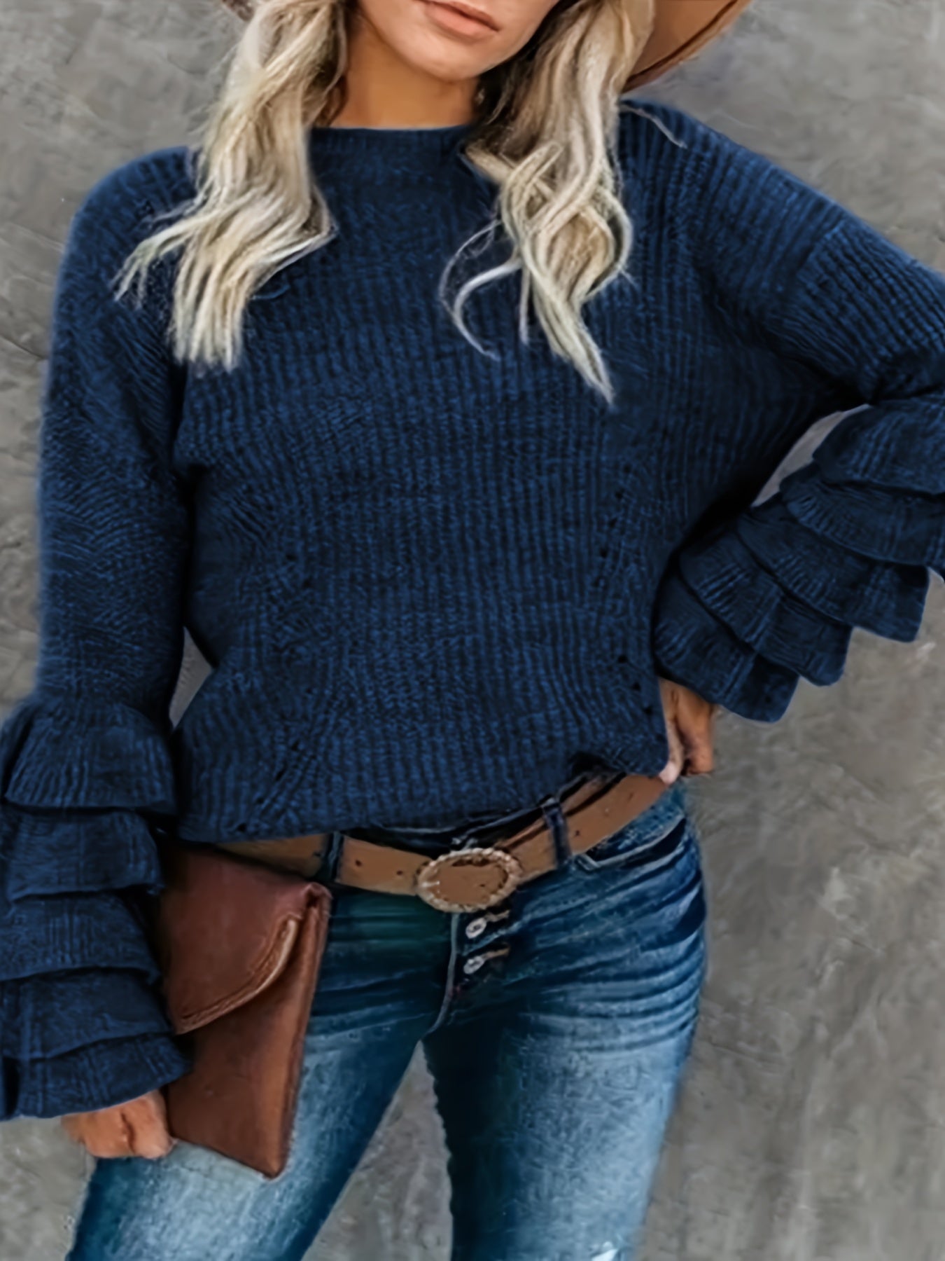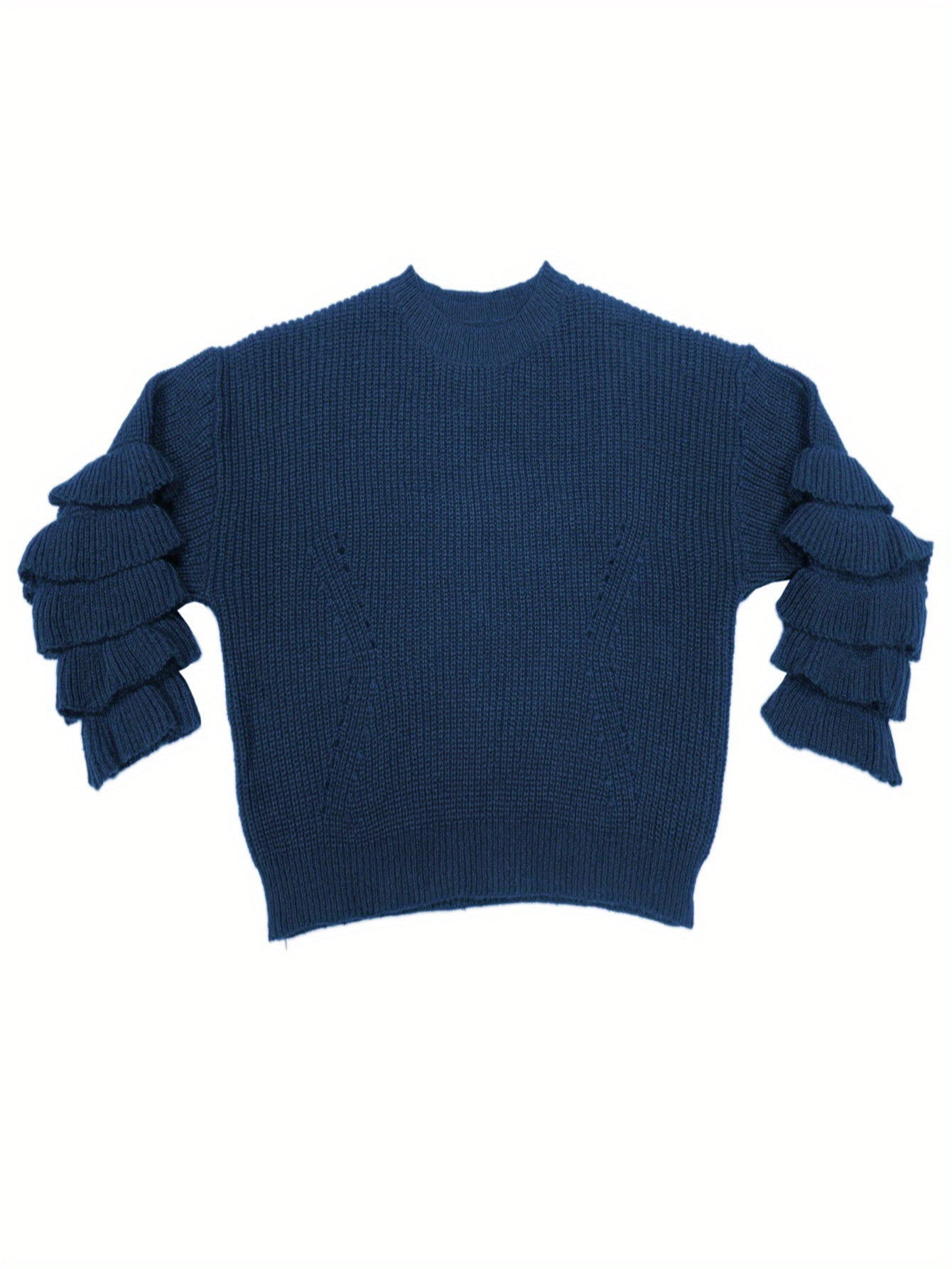 Sixsr Plus Size Elegant Sweater, Women's Plus Solid Layered Sleeve Round Neck Pullover Sweater
