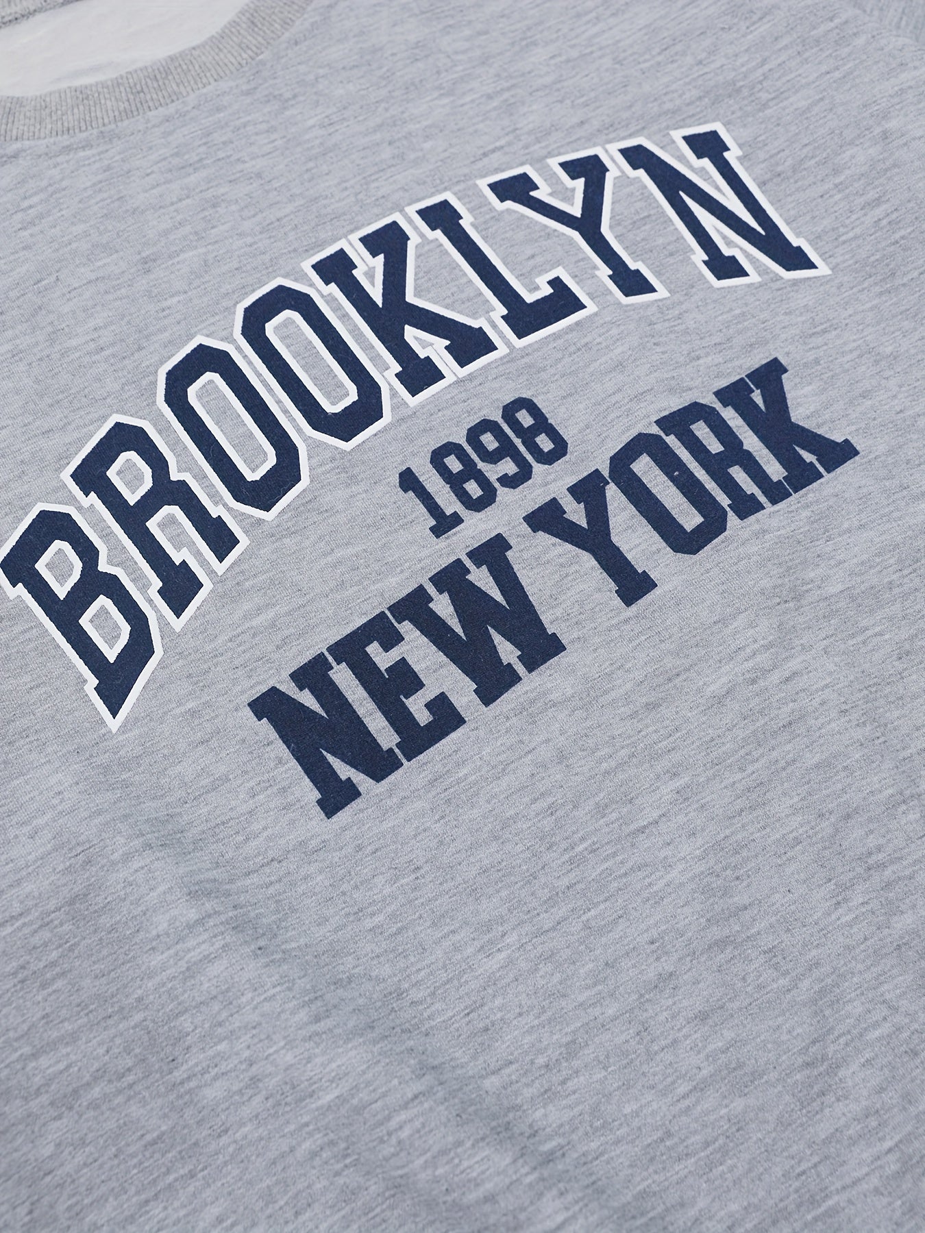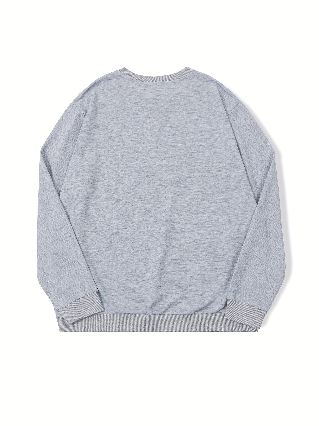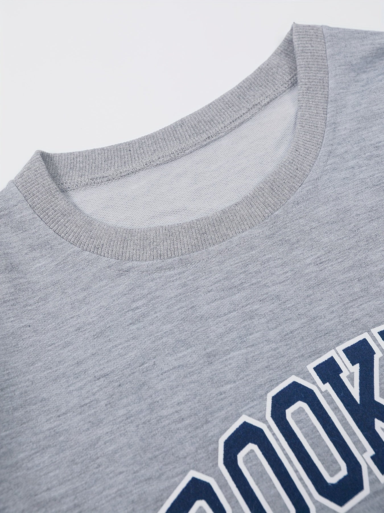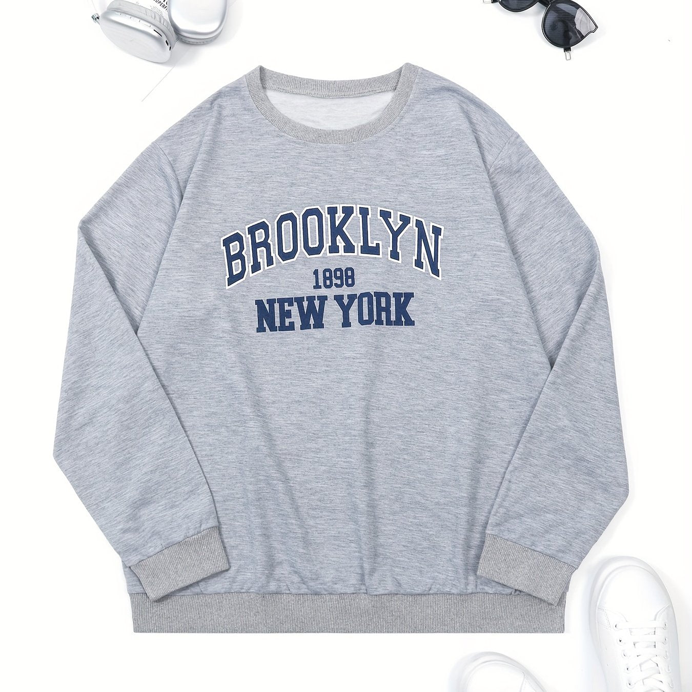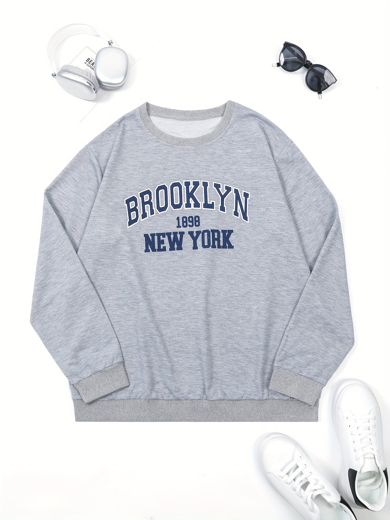 Sixsr Plus Size Letter Print Round Neck Long Sleeve Sweatshirt, Women's Plus Slight Stretch Drop Shoulder Sweatshirt