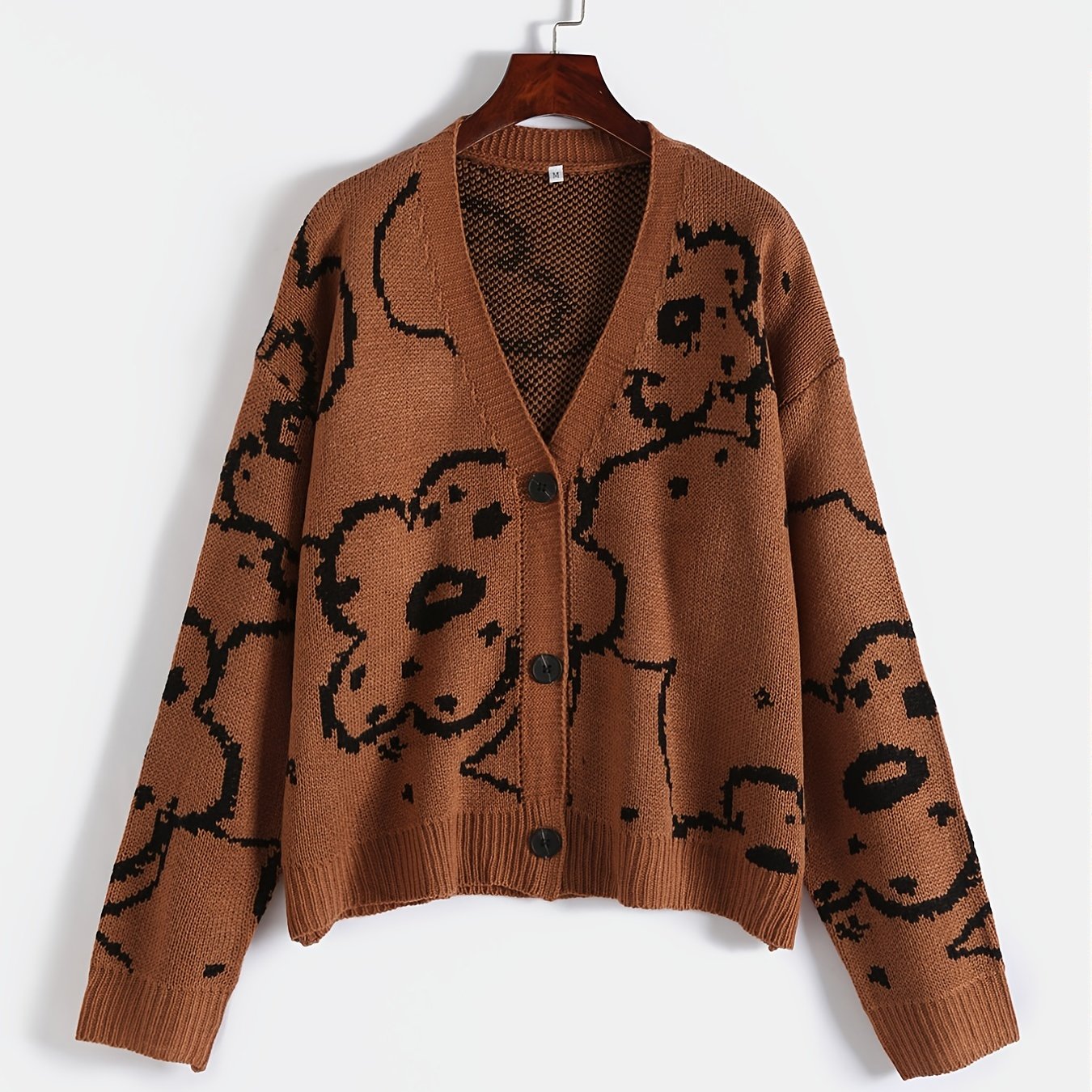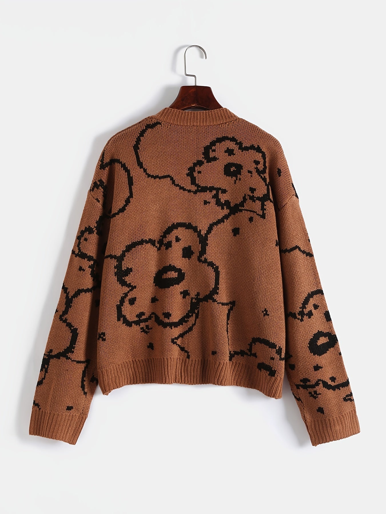 Sixsr Plus Size Long Sleeve Button Front Sweater Cardigan, Women's Plus Casual Slight Stretch Sweater