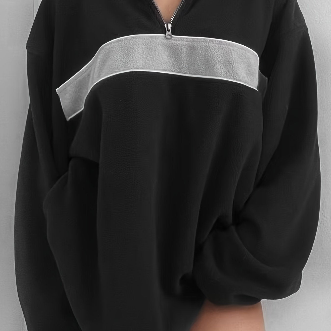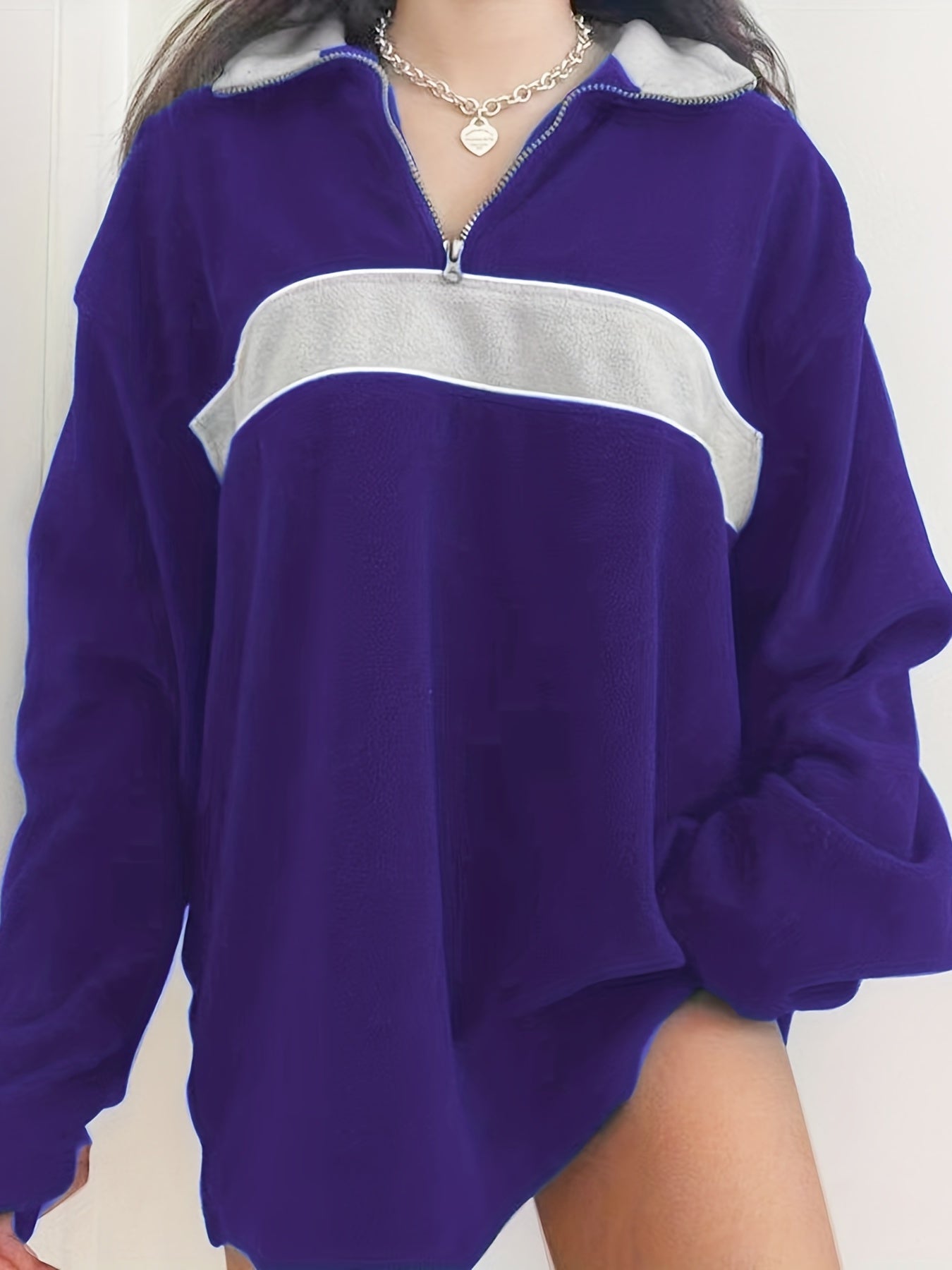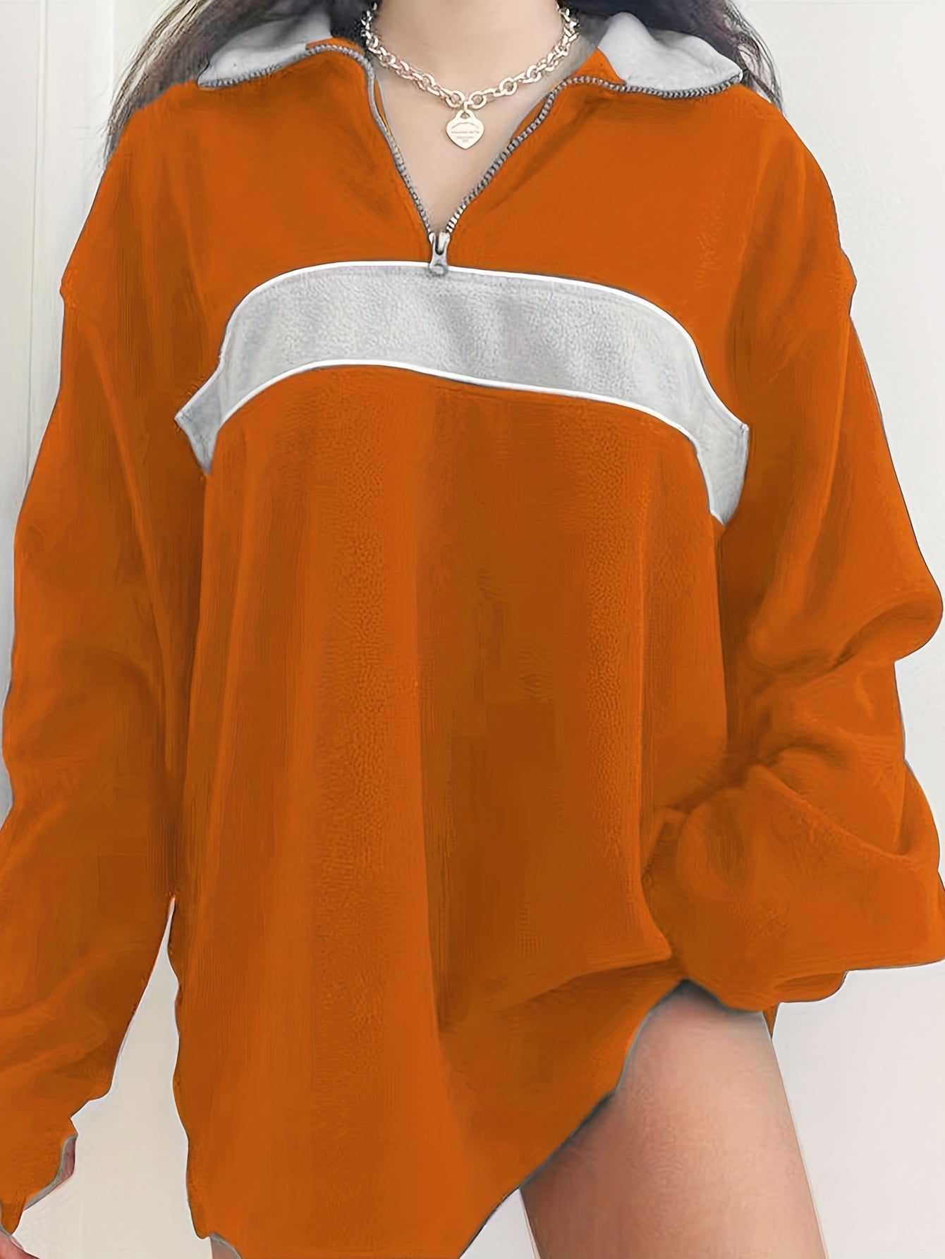 Sixsr Retro Lapel Thermal Pullover, Casual Striped Colorblock Fashion Loose Long Sleeve Sweatshirt, Women's Clothing