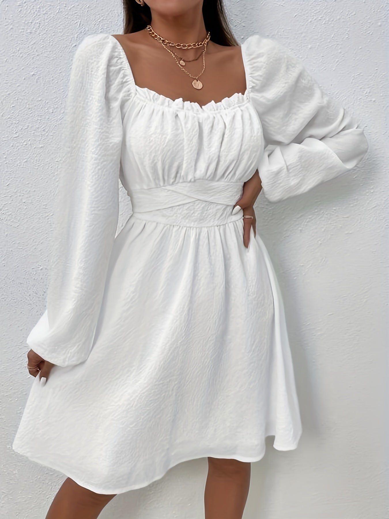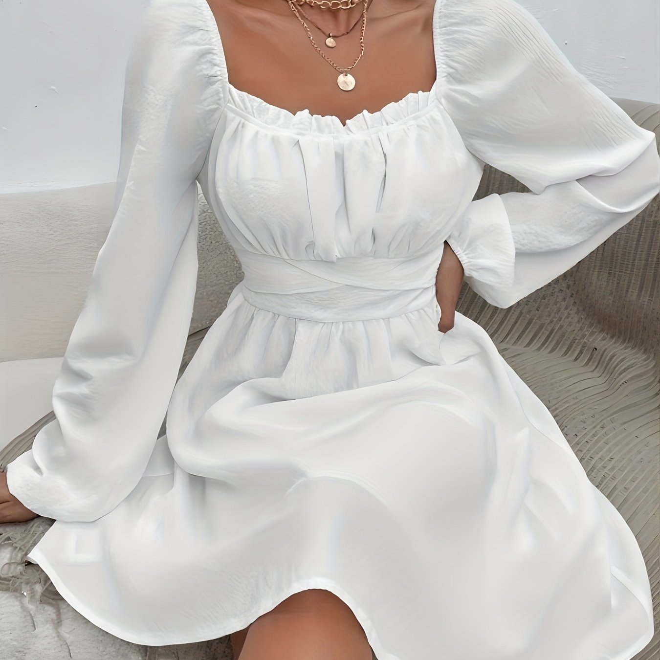 Sixsr Ruched Backless Dress, Elegant Long Sleeve Solid Dress, Women's Clothing