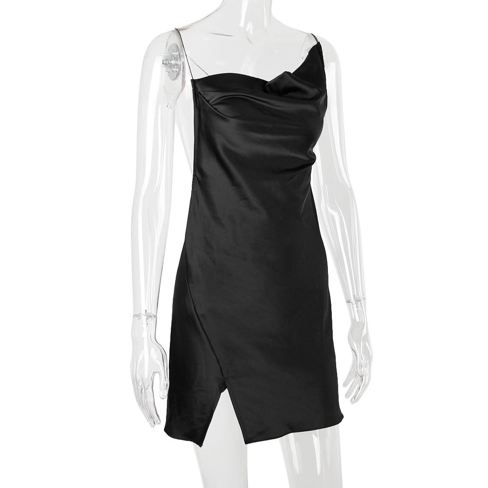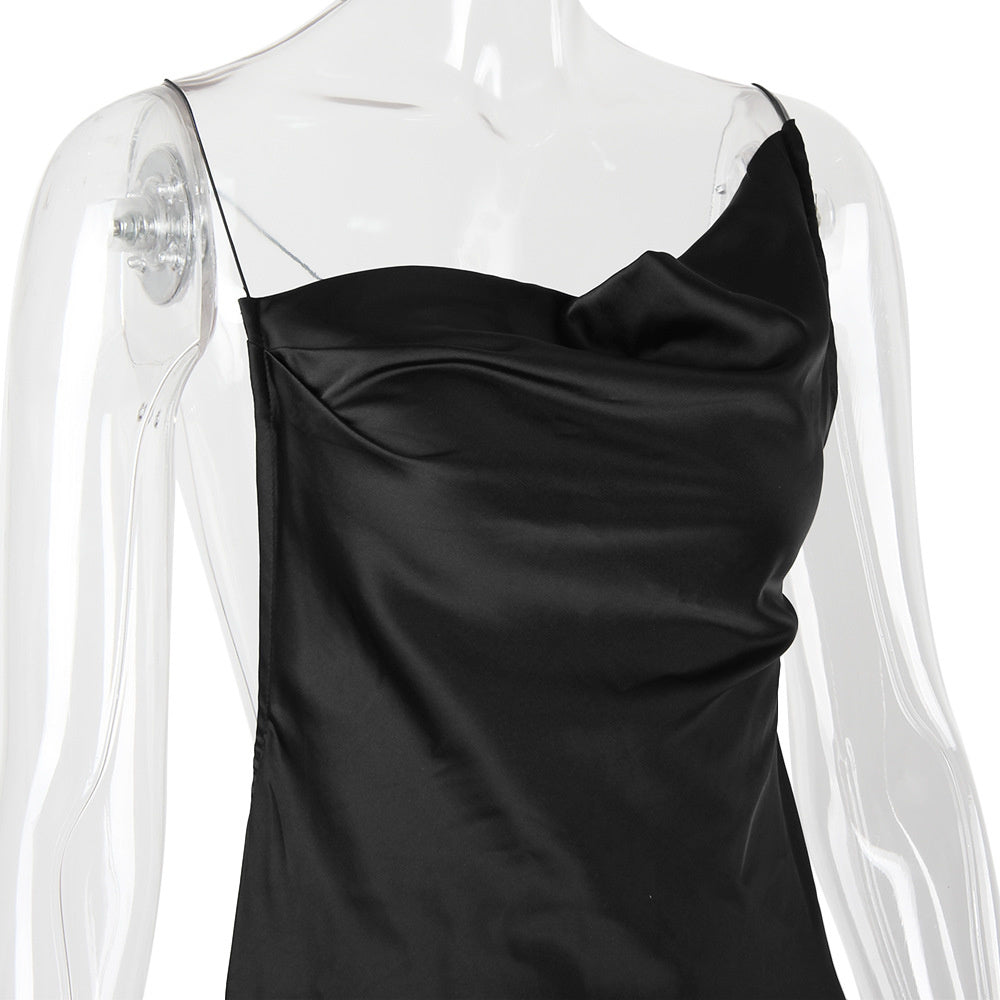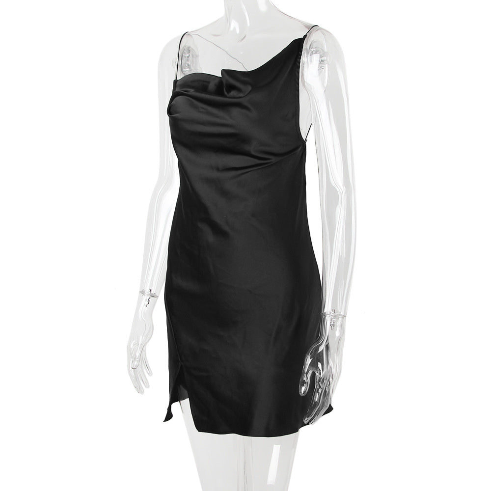 sixsr Satin Sexy Backless Slit Women Dress Green Spaghetti Strap Hollow Out Dresses Women Summer Skinny Fashion Party Clubwear