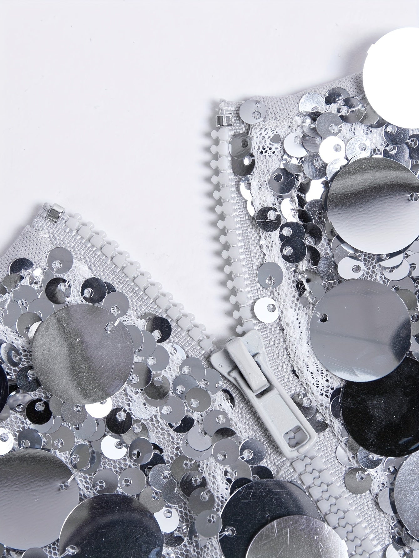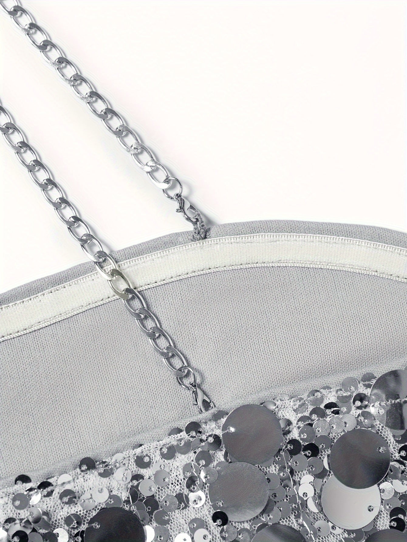 Sixsr Sequined Chain Strap Cami Top, Elegant Sleeveless Zip Back Top For Summer & Spring, Women's Clothing