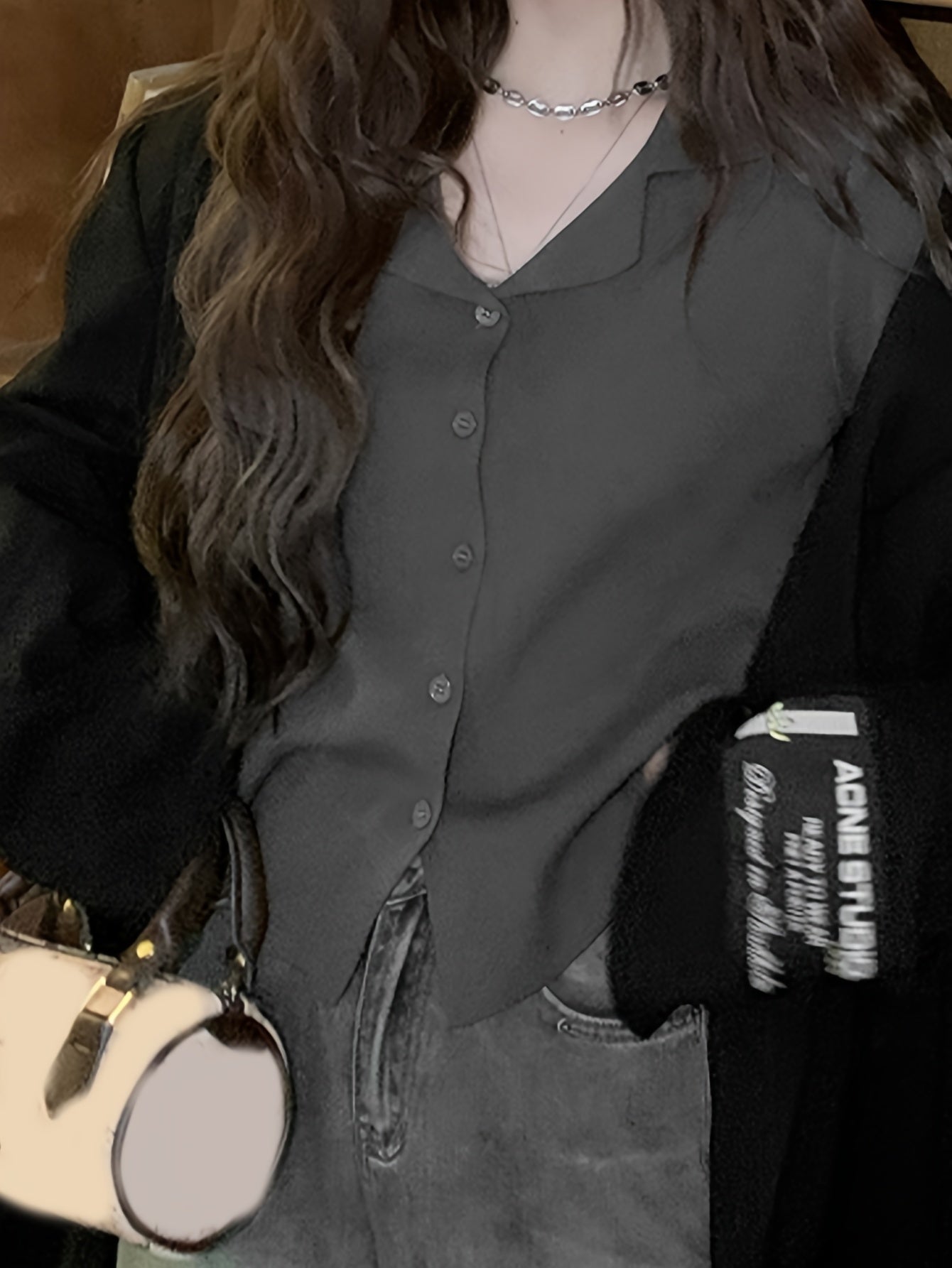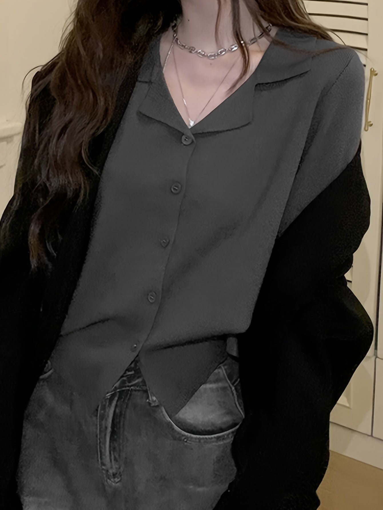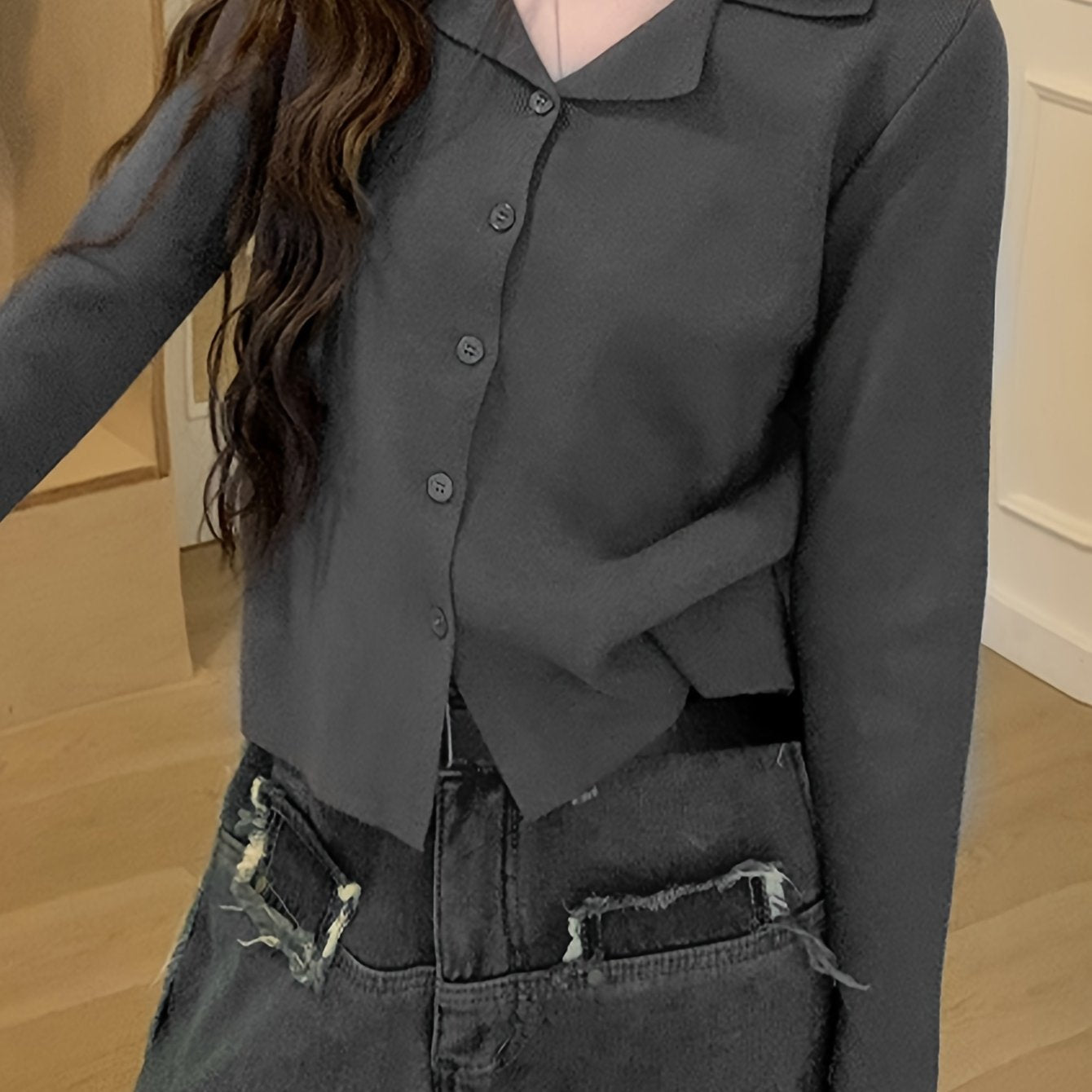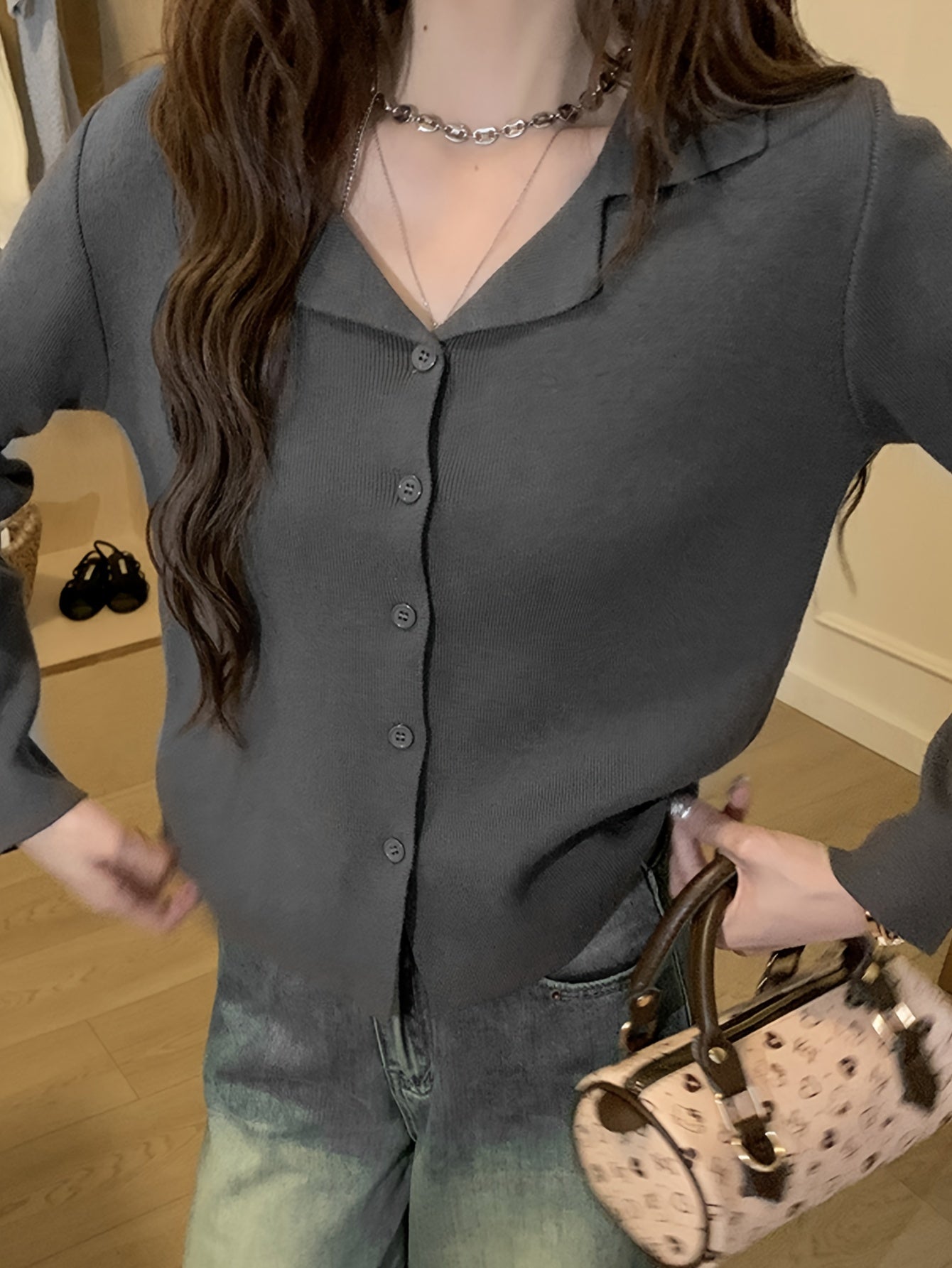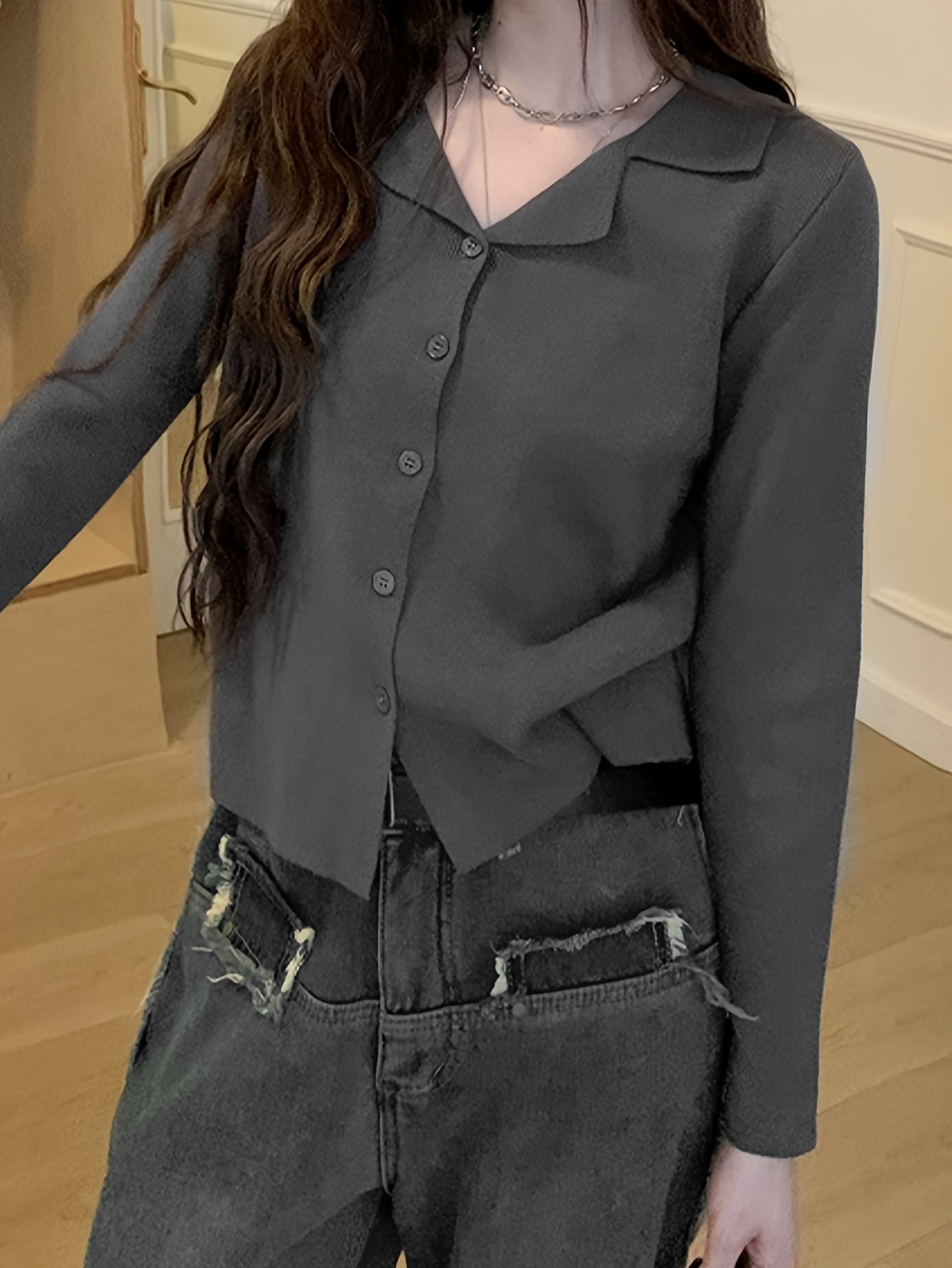 Sixsr Solid Button Down Knit Cardigan, Casual Lapel Long Sleeve Cardigan, Women's Clothing