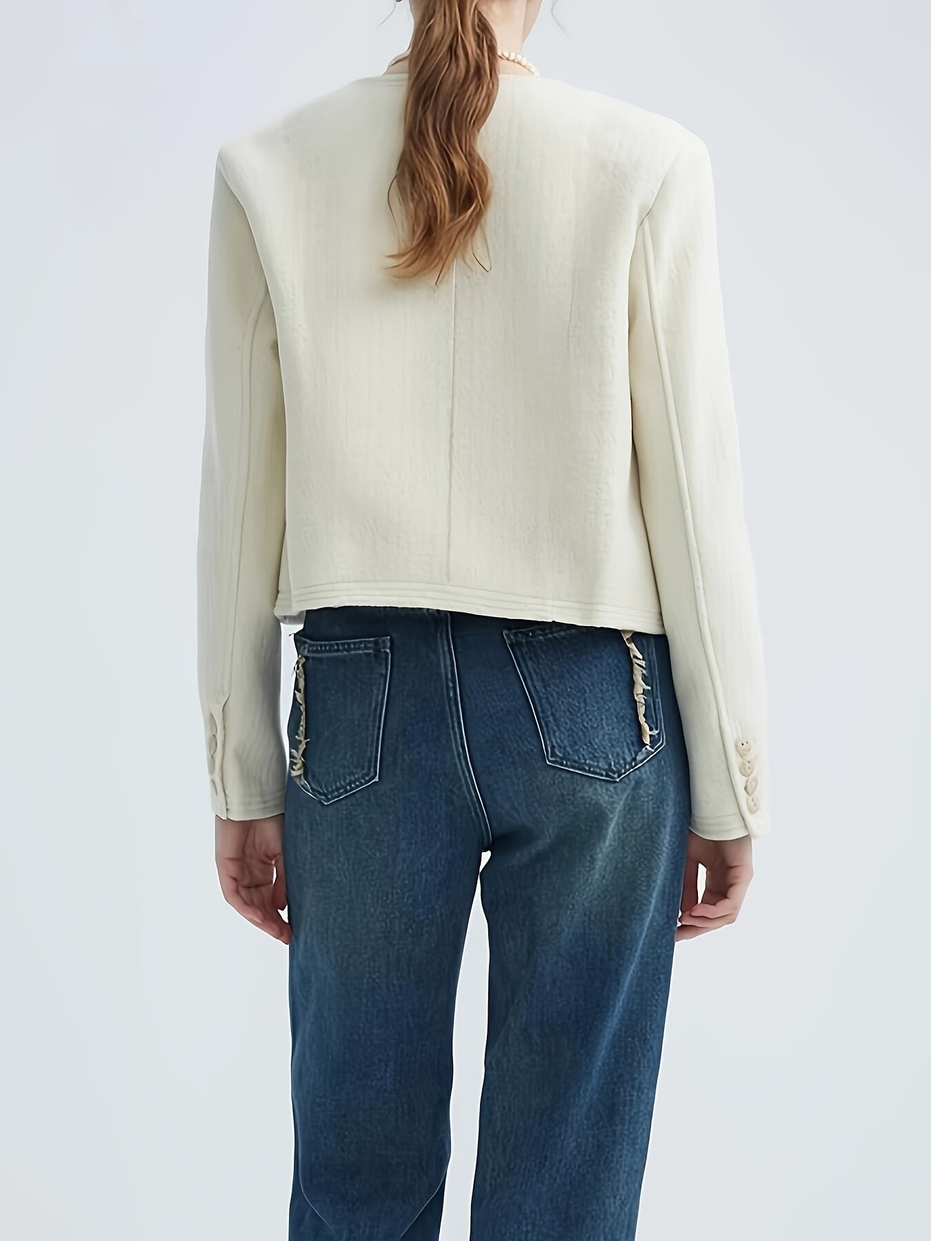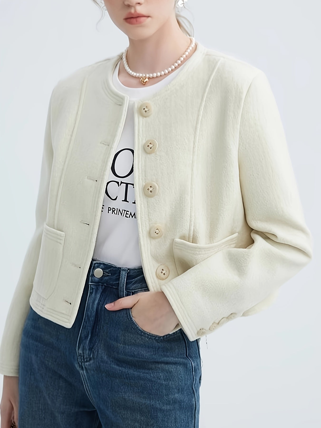Sixsr Solid Button Front Simple Coat, Elegant Long Sleeve Dual Pockets Coat For Fall & Winter, Women's Clothing