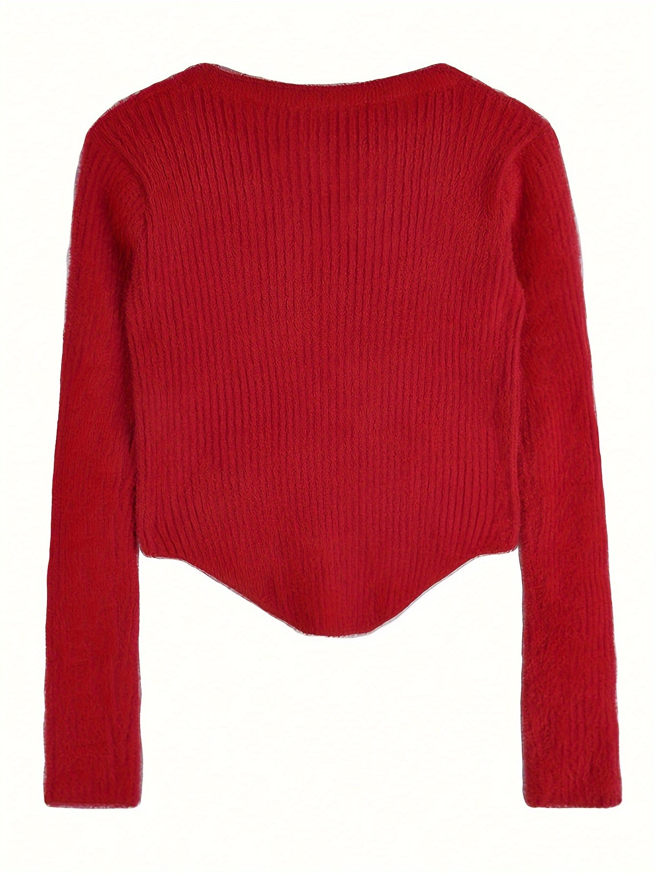 Sixsr Solid Button Up Pullover Sweater, Casual Long Sleeve Hanky Hem Sweater, Women's Clothing