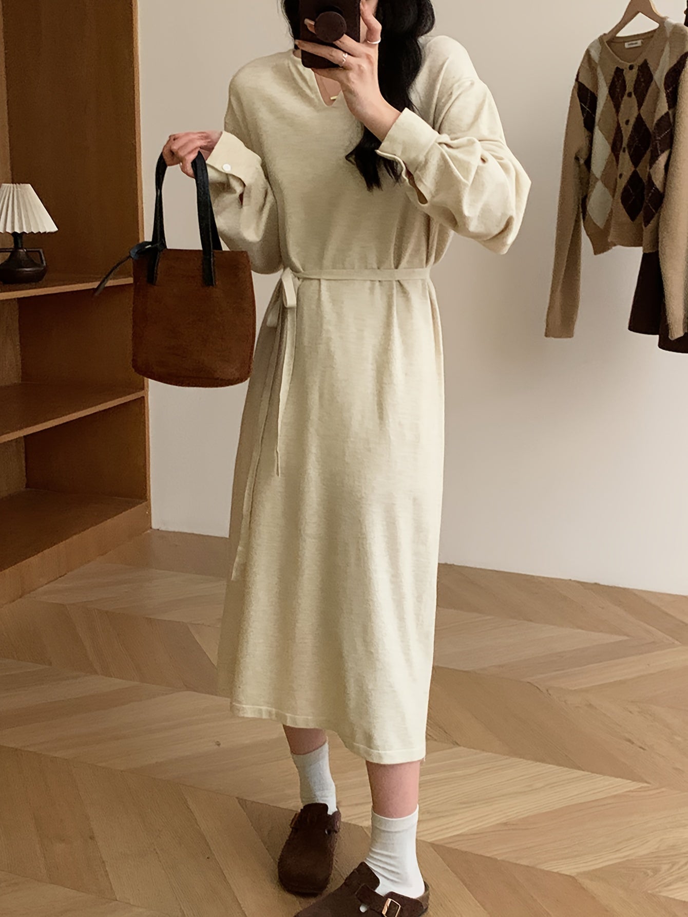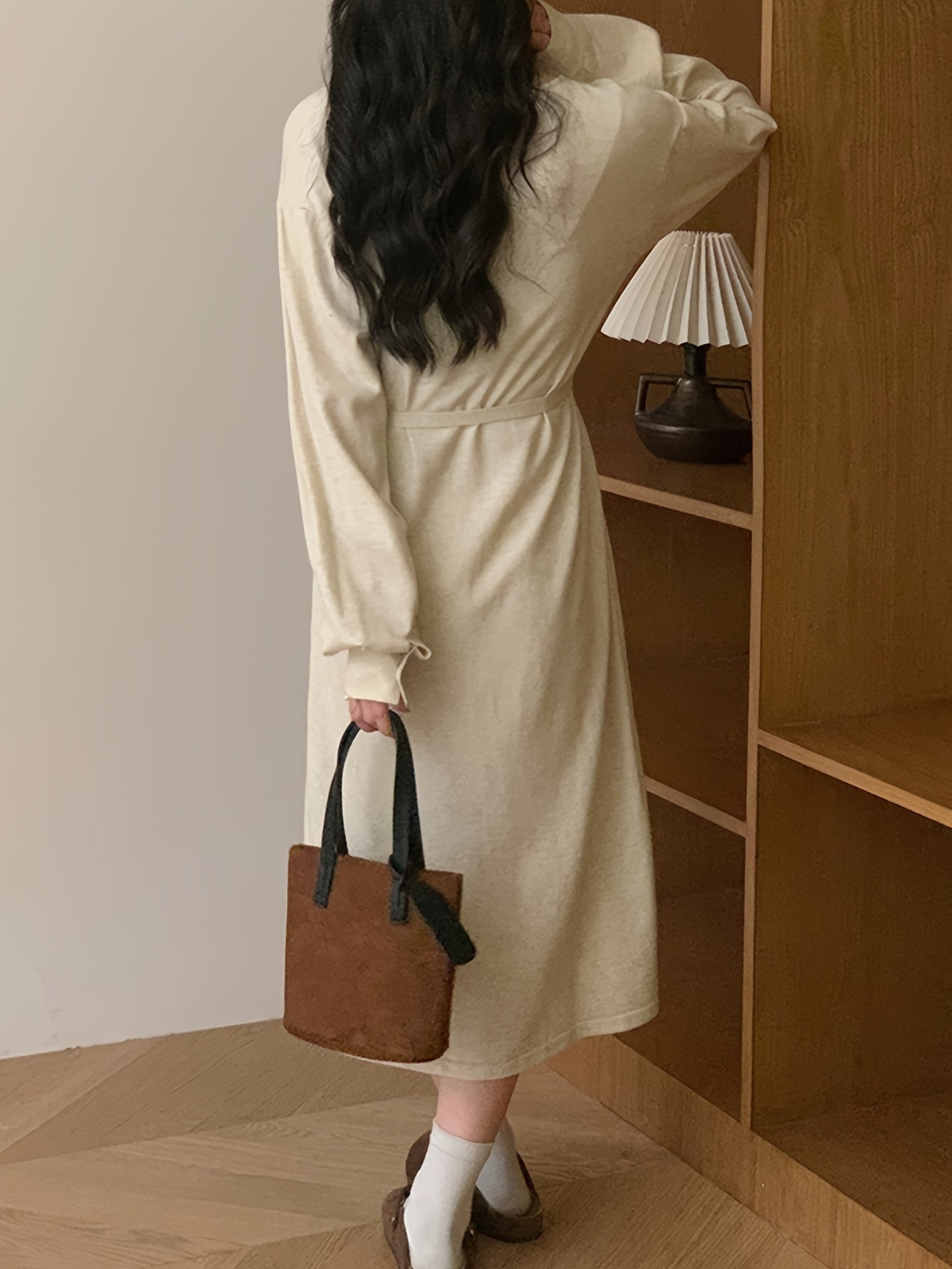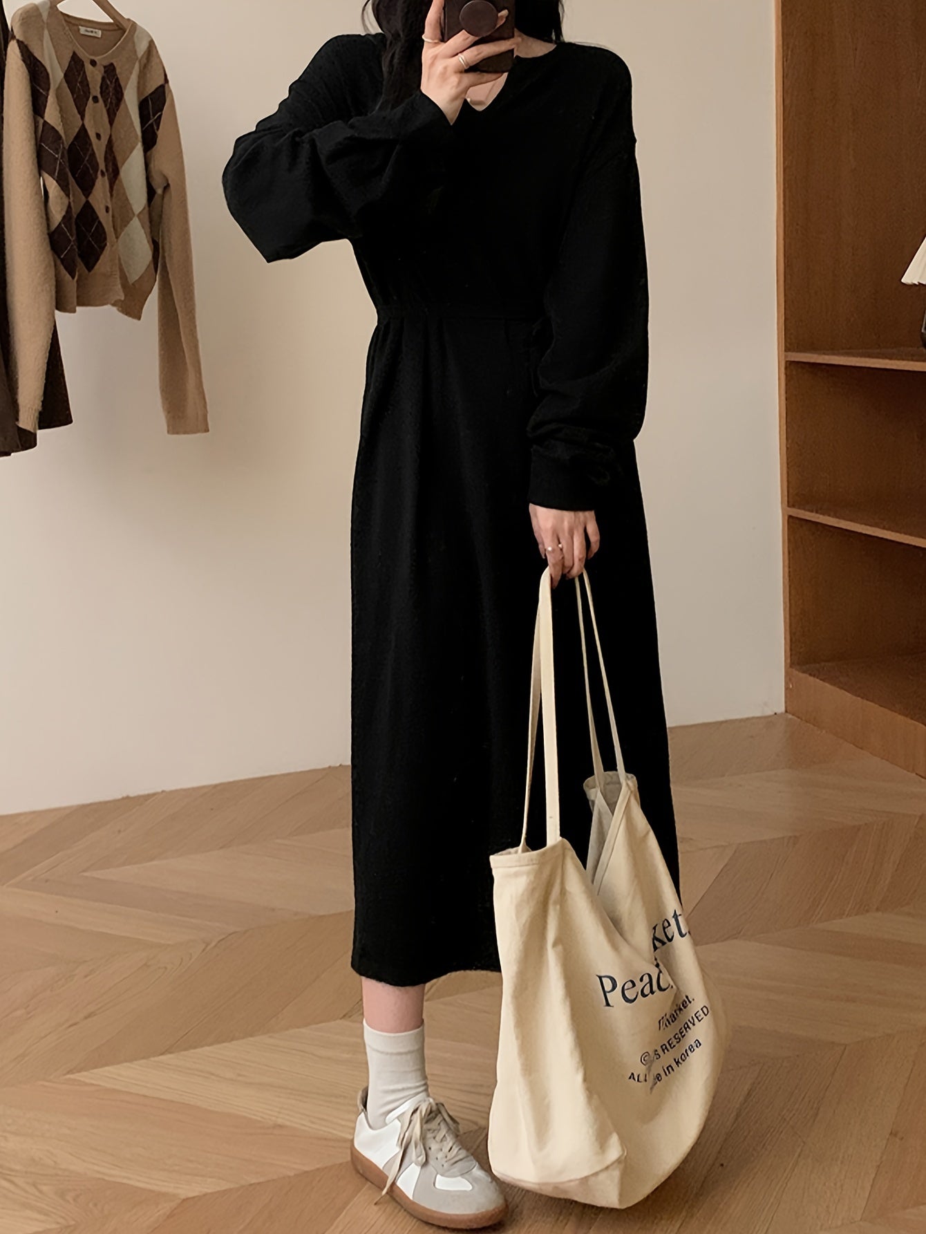Sixsr Solid Color Long Sleeve Dress, Elegant Every Day Dress For Spring & Fall, Women's Clothing