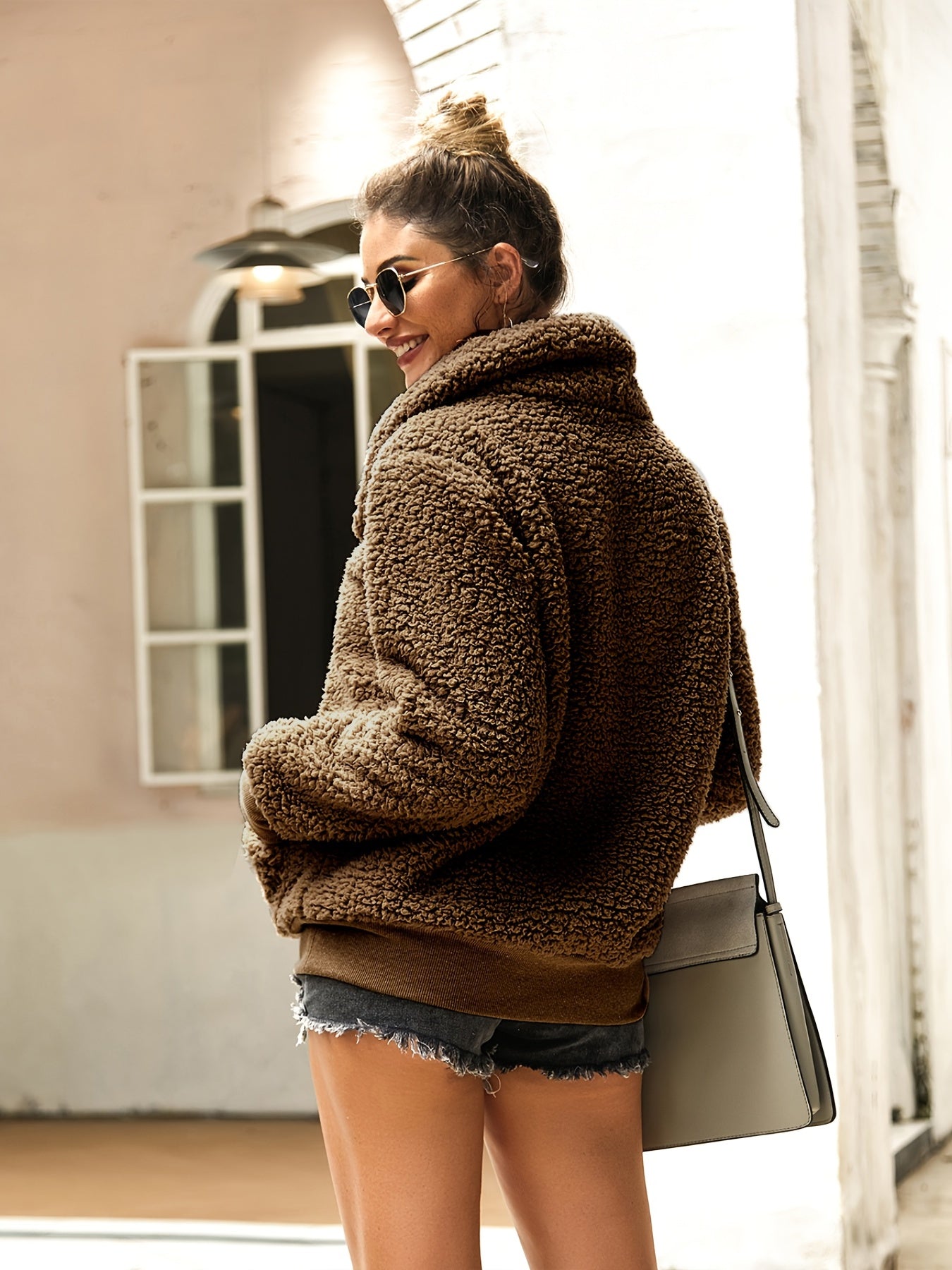 Sixsr Solid Cowl Neck Pullover, Long Sleeve Casual Every Day Top For Winter, Women's Clothing