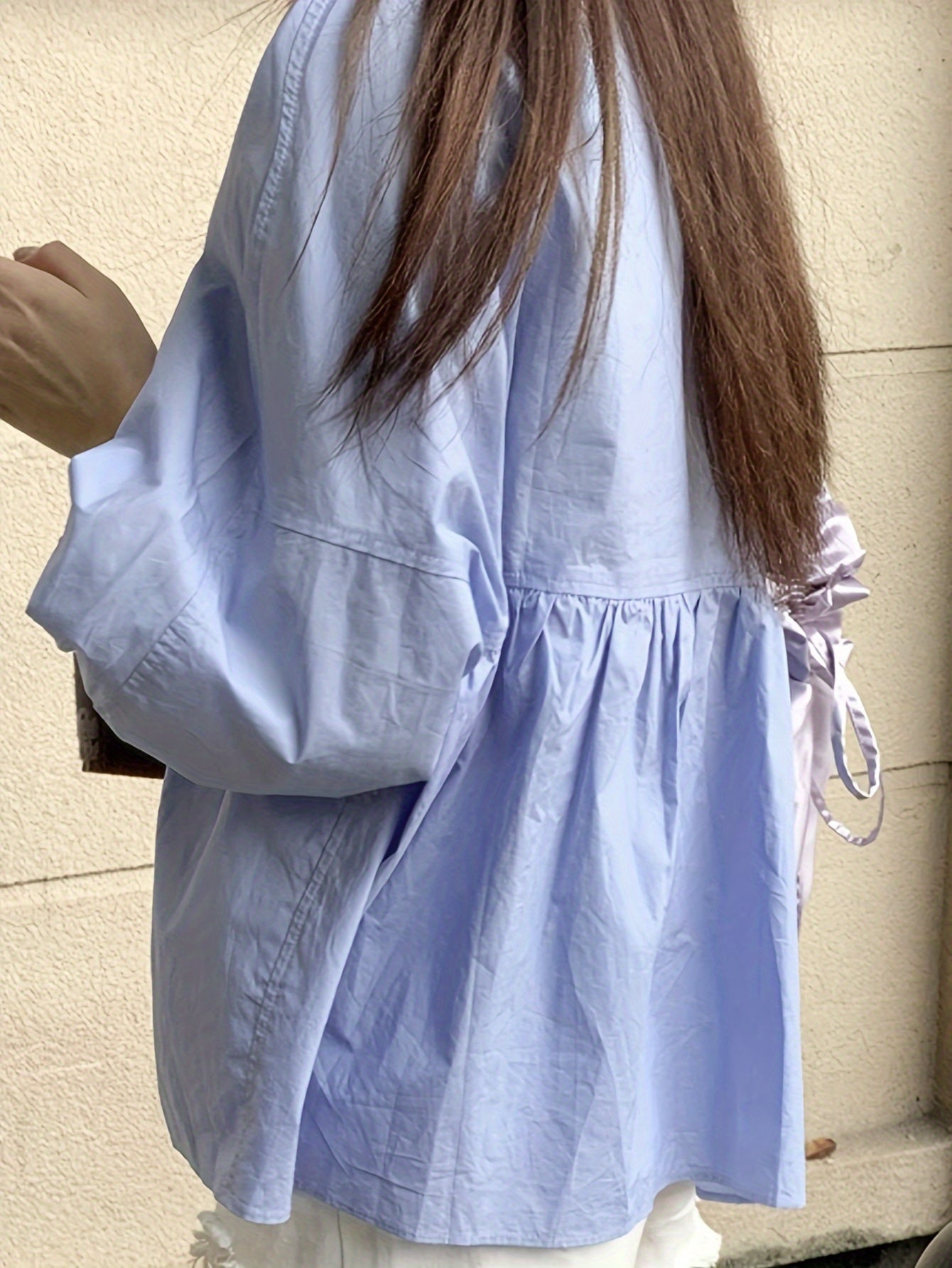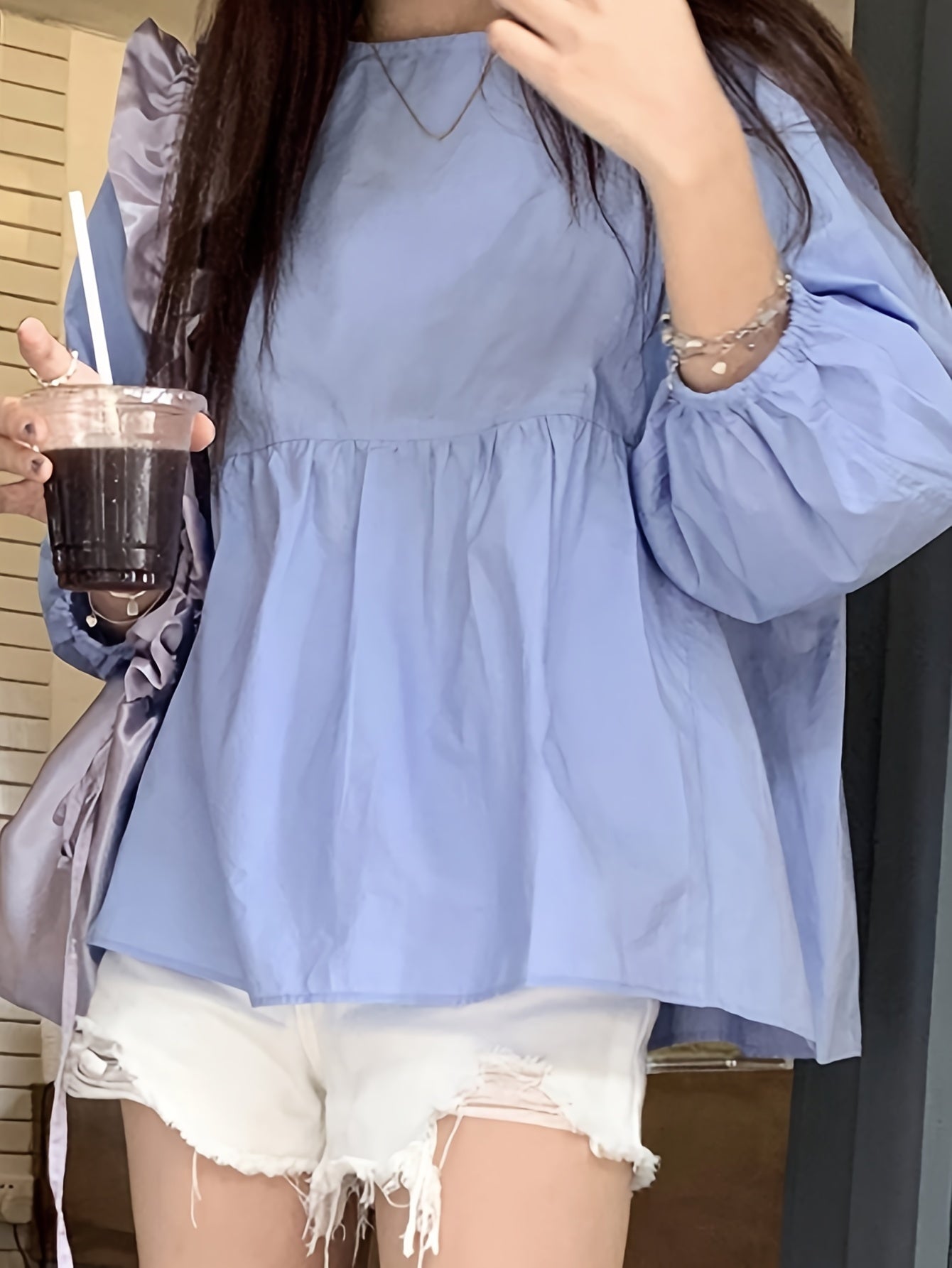 Sixsr Solid Crew Neck Smocked Blouse, Casual Long Sleeve Blouse For Spring & Fall, Women's Clothing