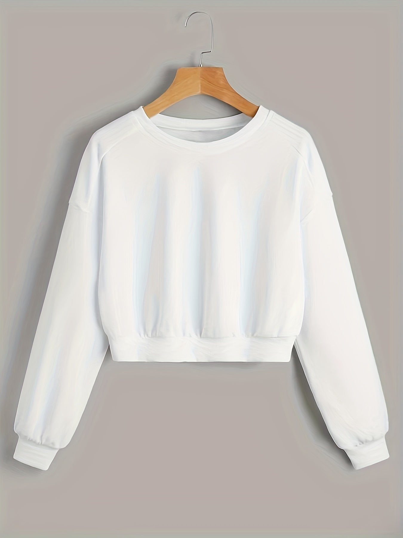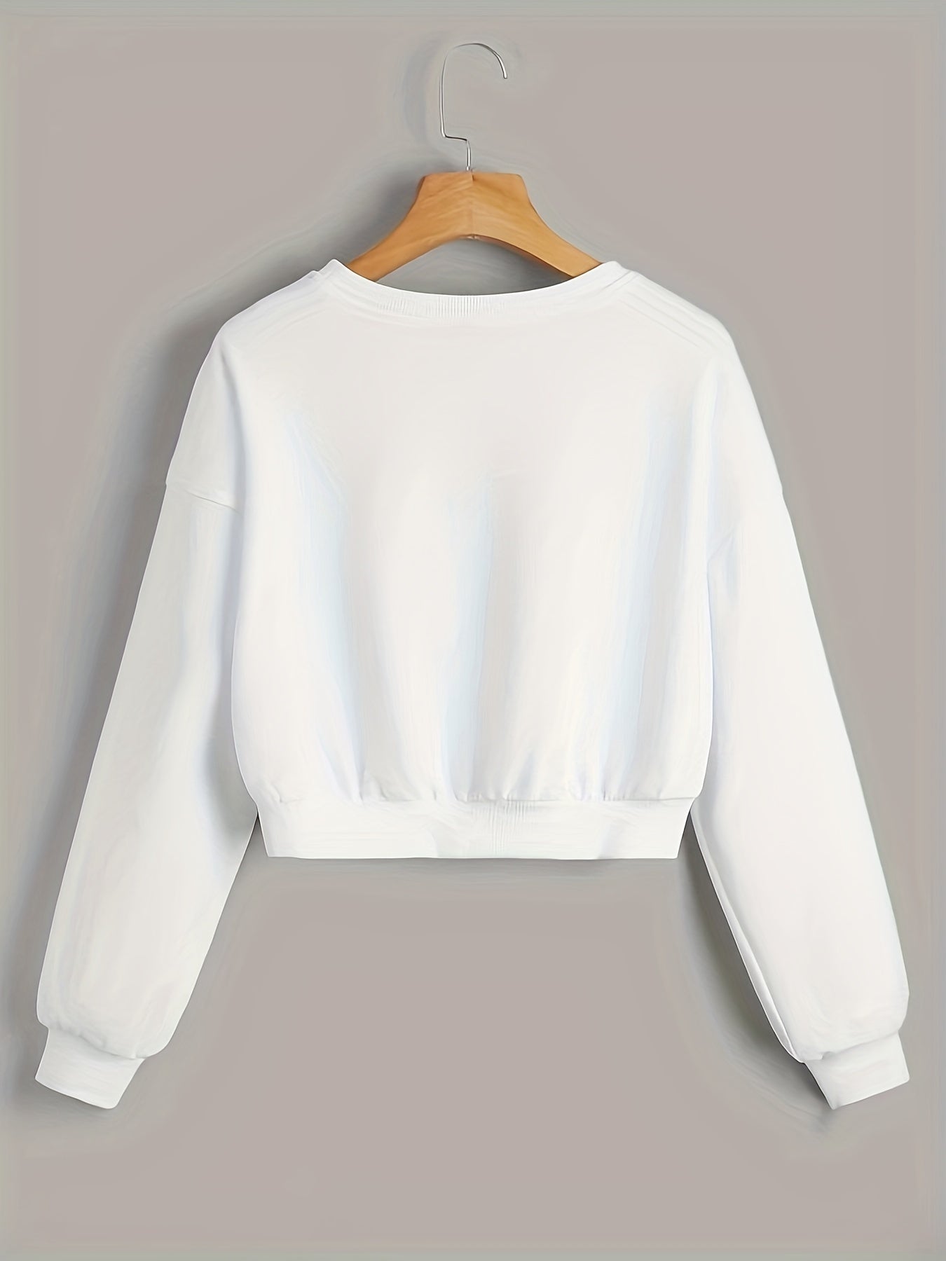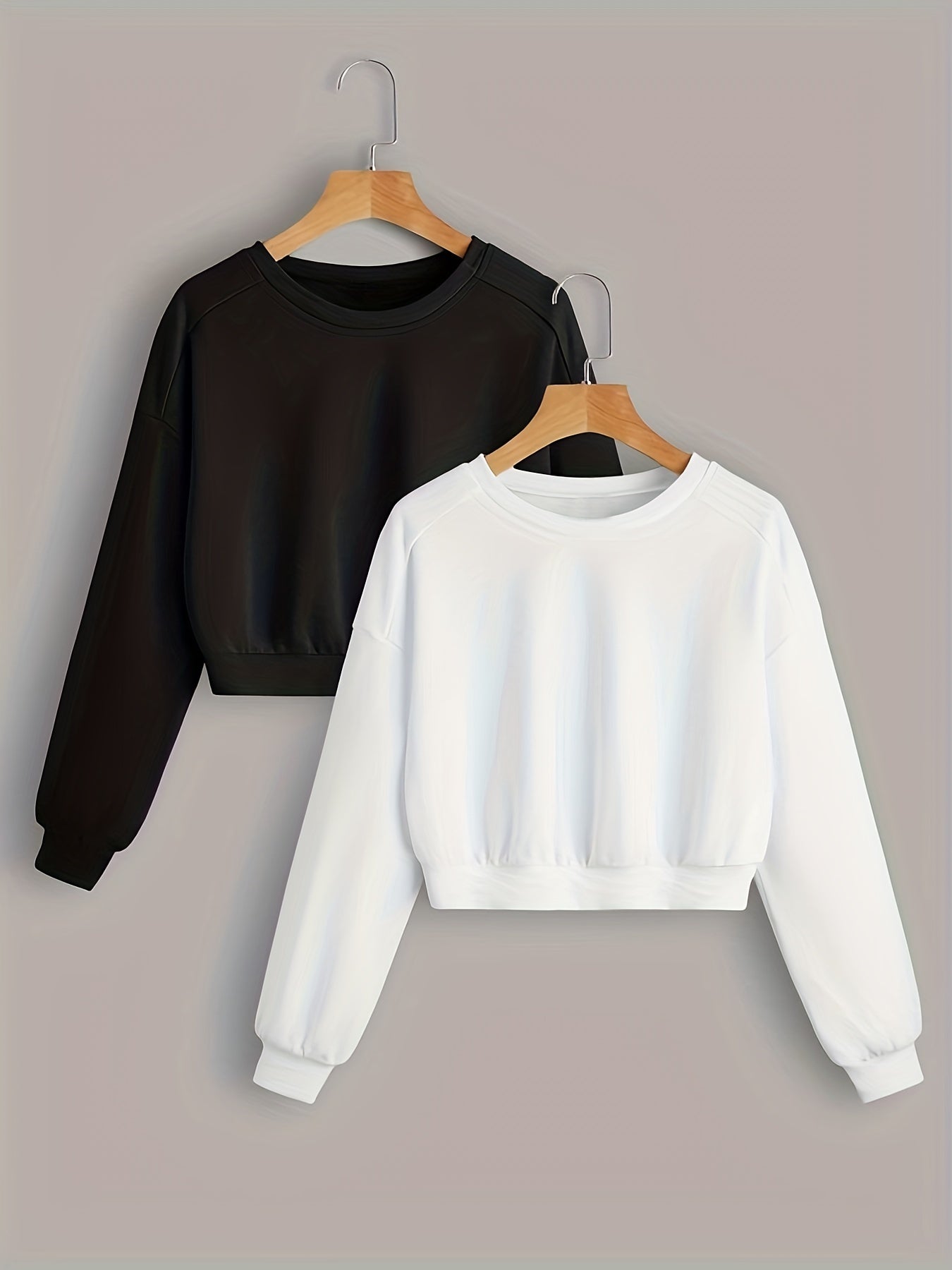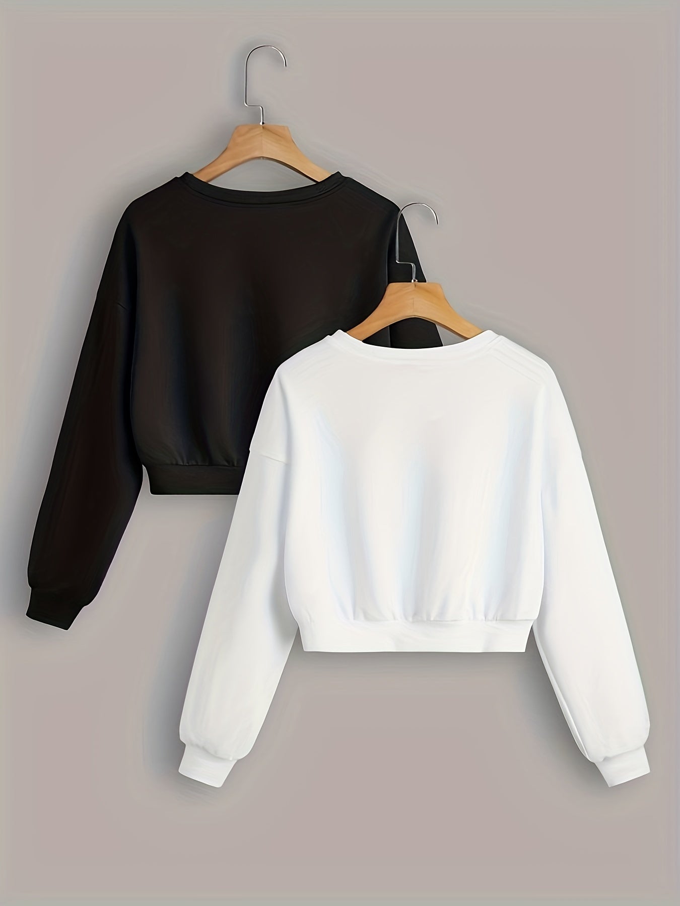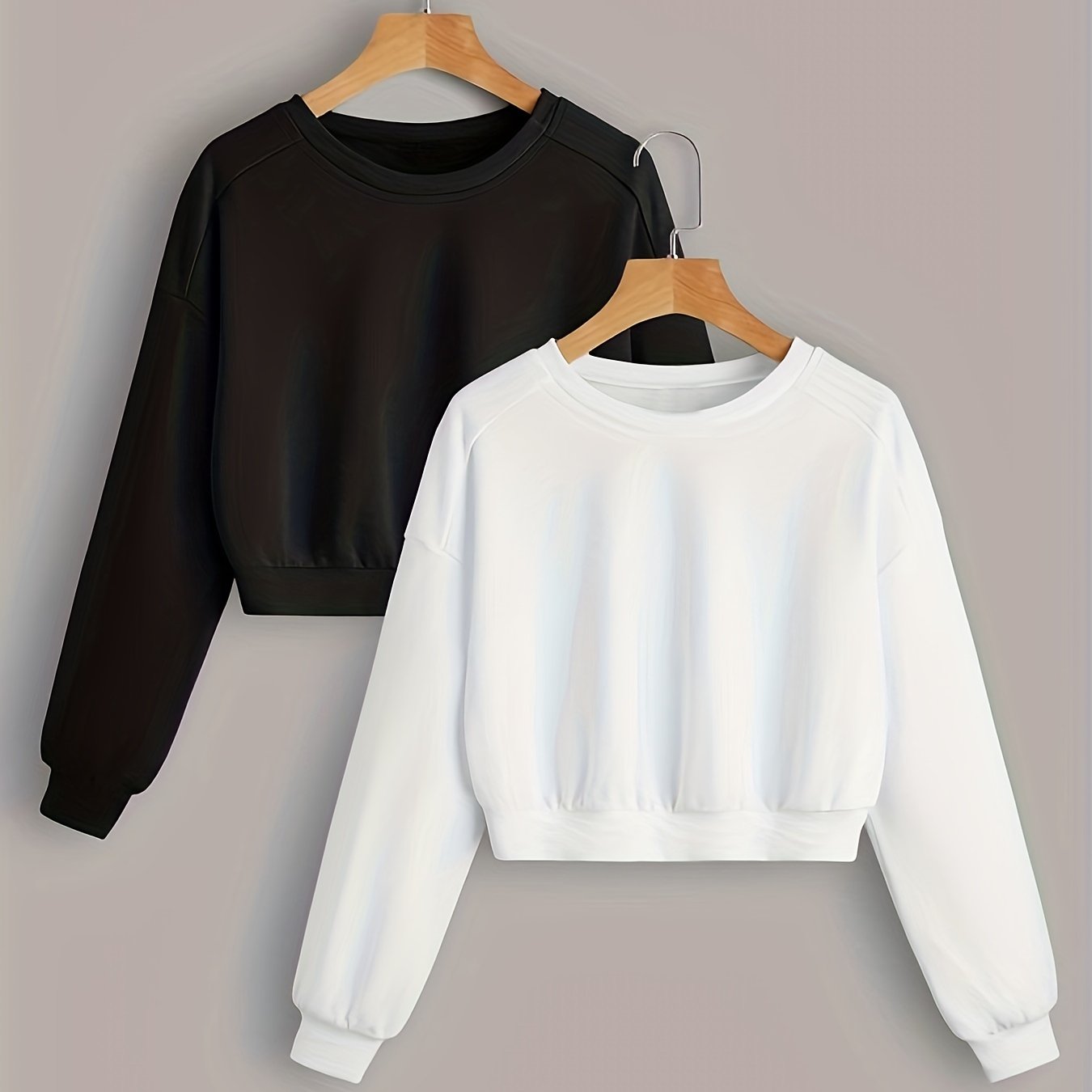 Sixsr Solid Crop Sweatshirt 2 Pack, Casual Long Sleeve Sweatshirt For Spring & Fall, Women's Clothing