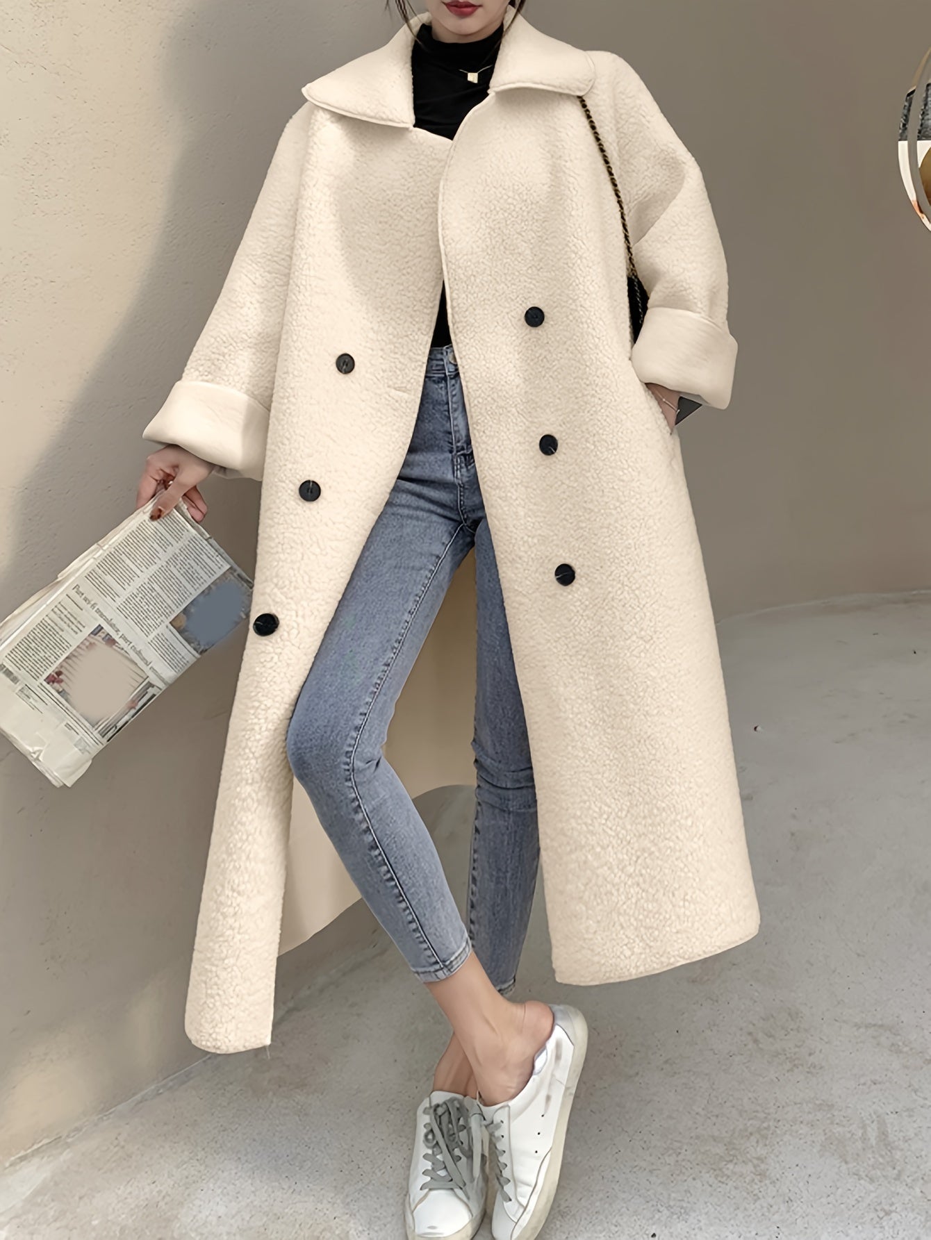 Sixsr Solid Double Breasted Belted Overcoat, Elegant Long Sleeve Outwear For Fall & Winter, Women's Clothing