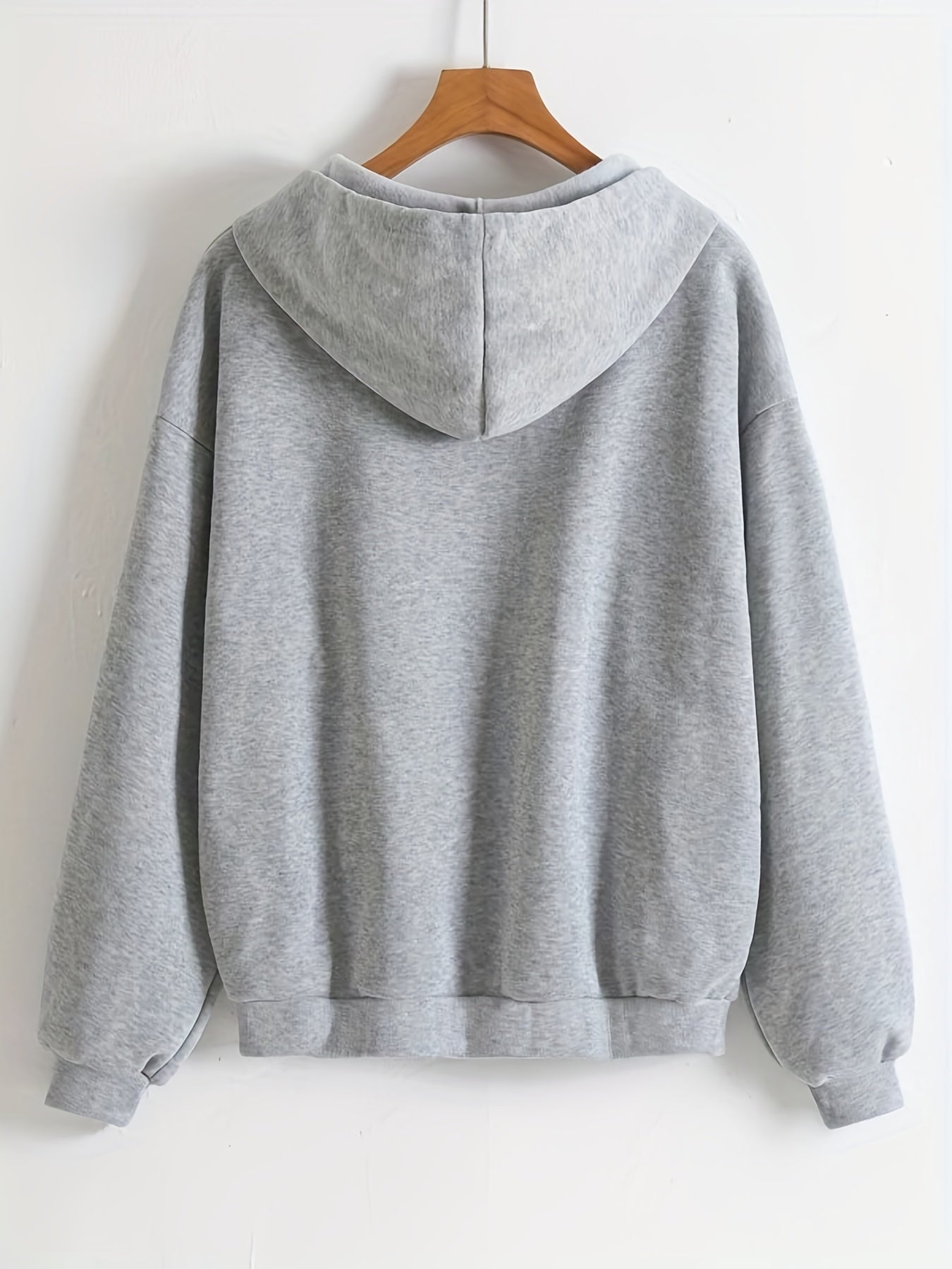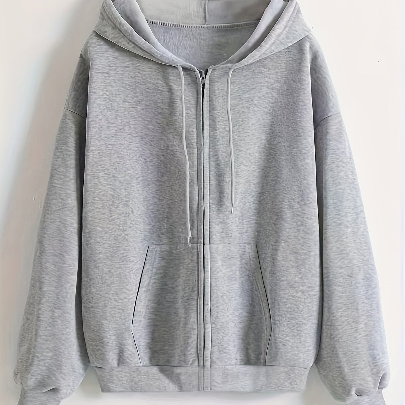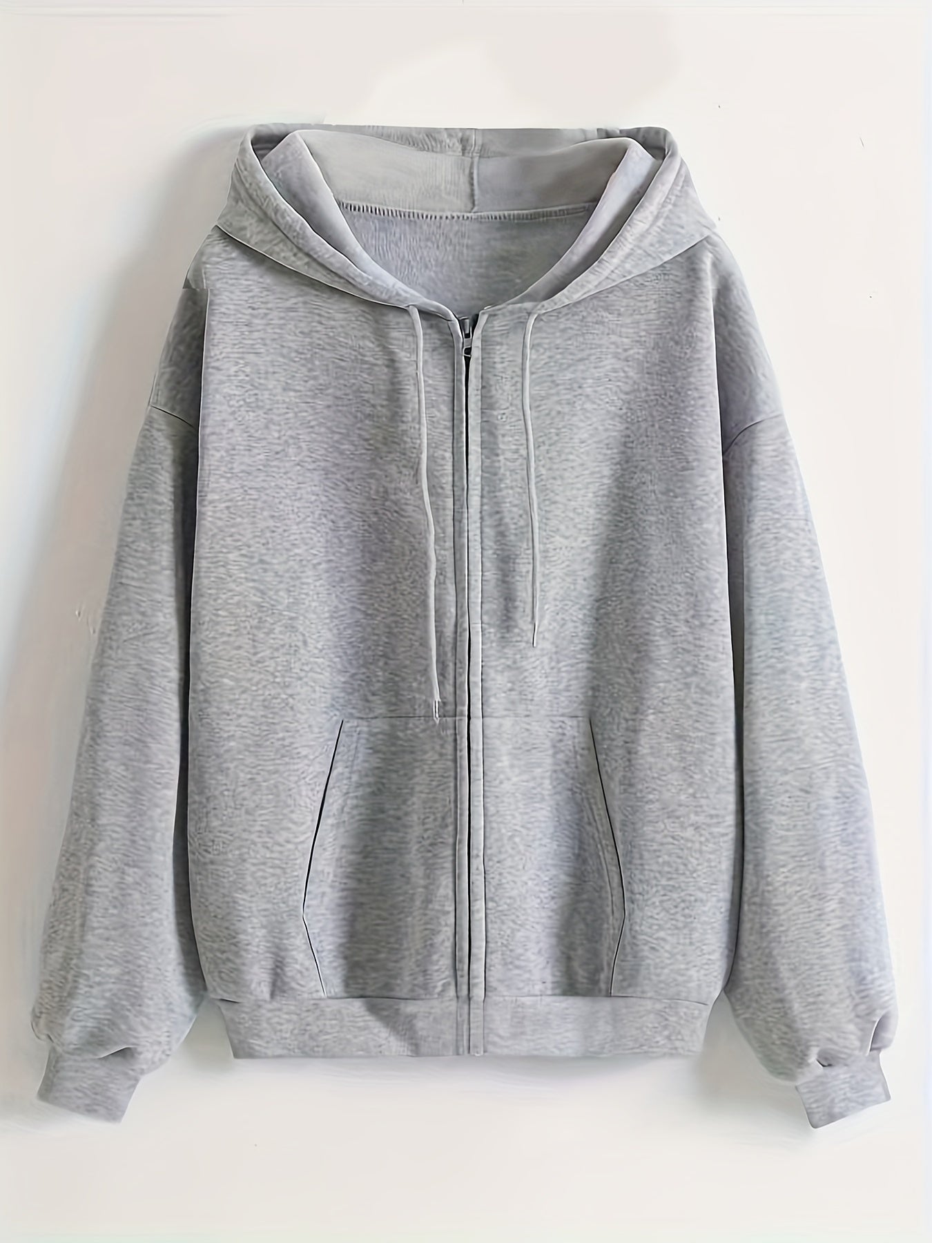 Sixsr Solid Drawstring Zipper Front Hoodie, Casual Long Sleeve Hoodie For Spring & Fall, Women's Clothing