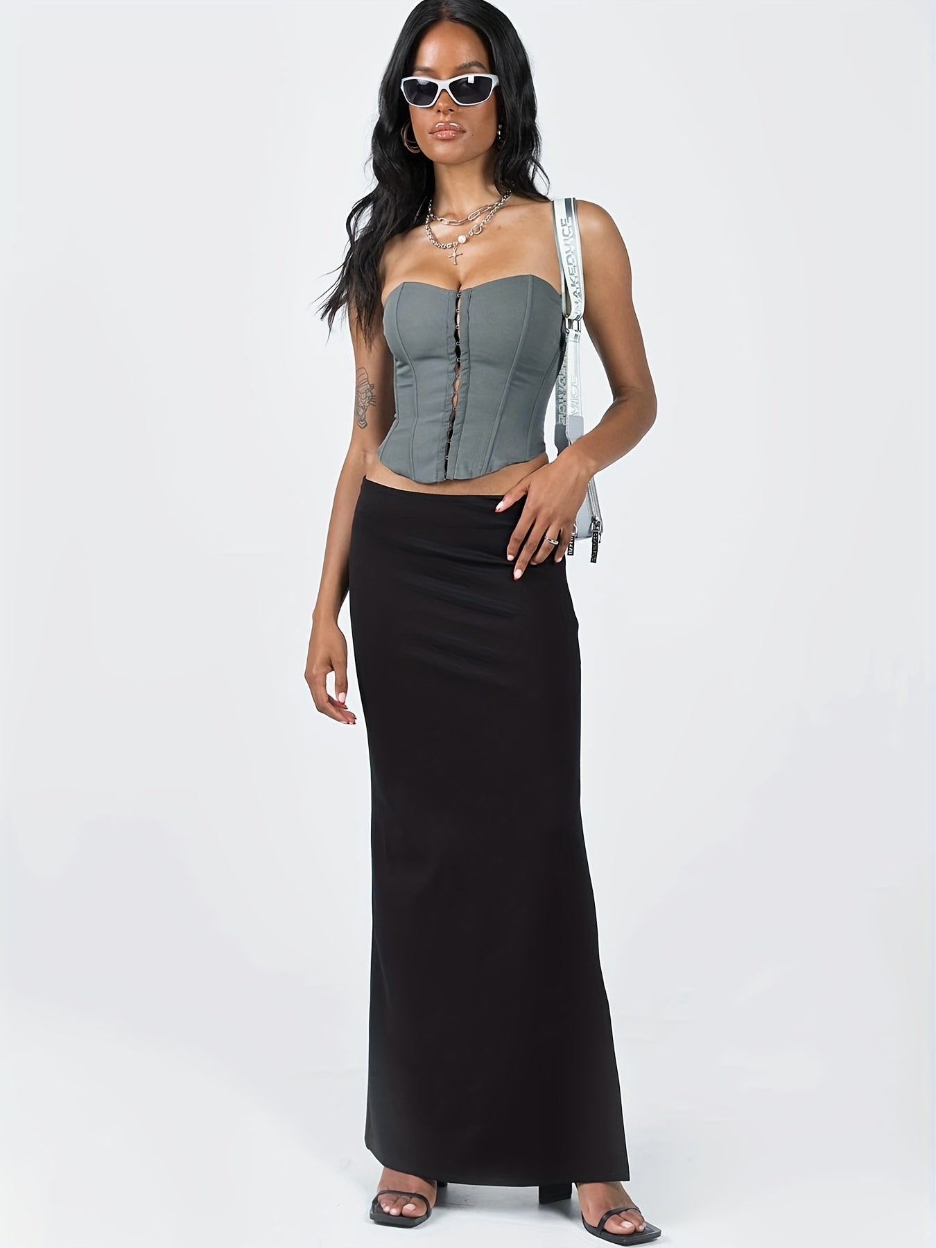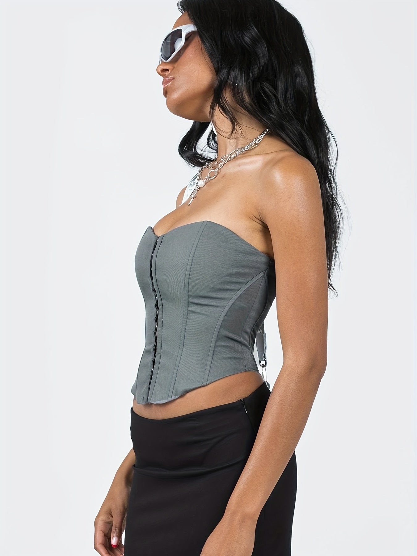 Sixsr Solid Hanky Hem Corset Crop Top, Casual Button Front Tube Top For Club & Party, Women's Clothing