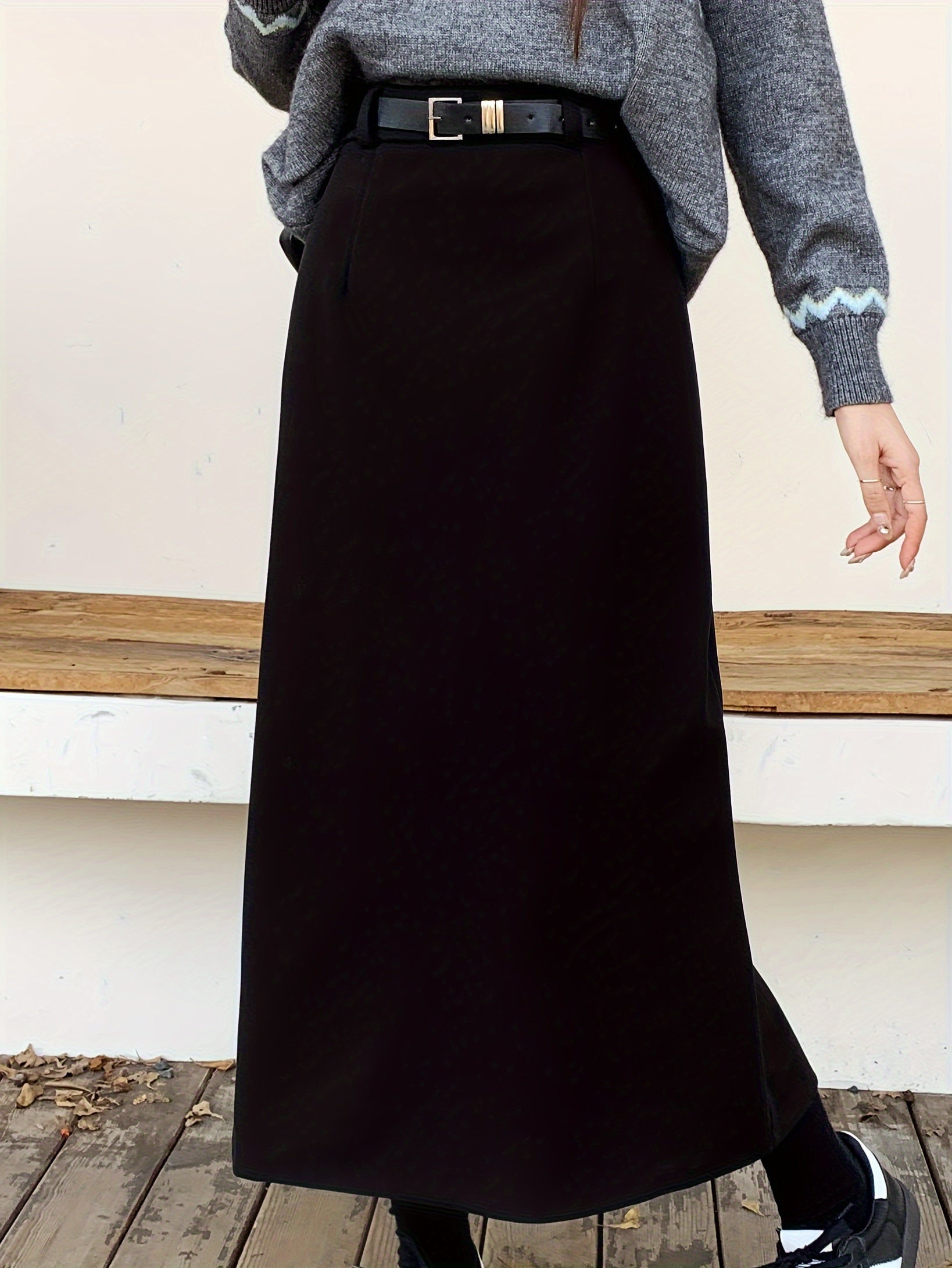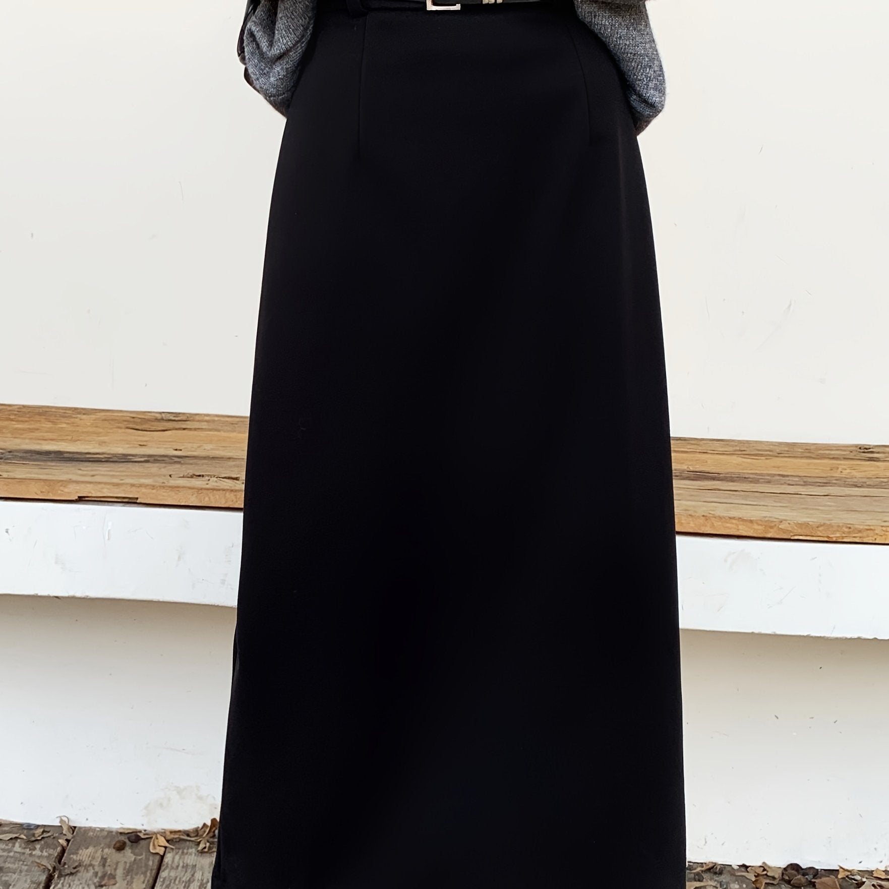 Sixsr Solid High Waist Slim Skirt, Casual Split Back A Line Maxi Skirt, Women's Clothing