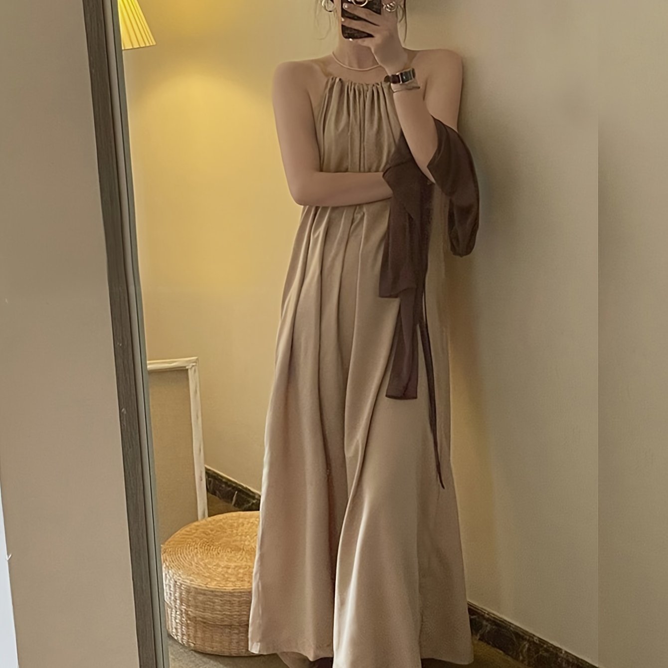 Sixsr Solid Loose Spaghetti Strap Dress, Elegant Sleeveless Cami Dress For Spring & Summer, Women's Clothing