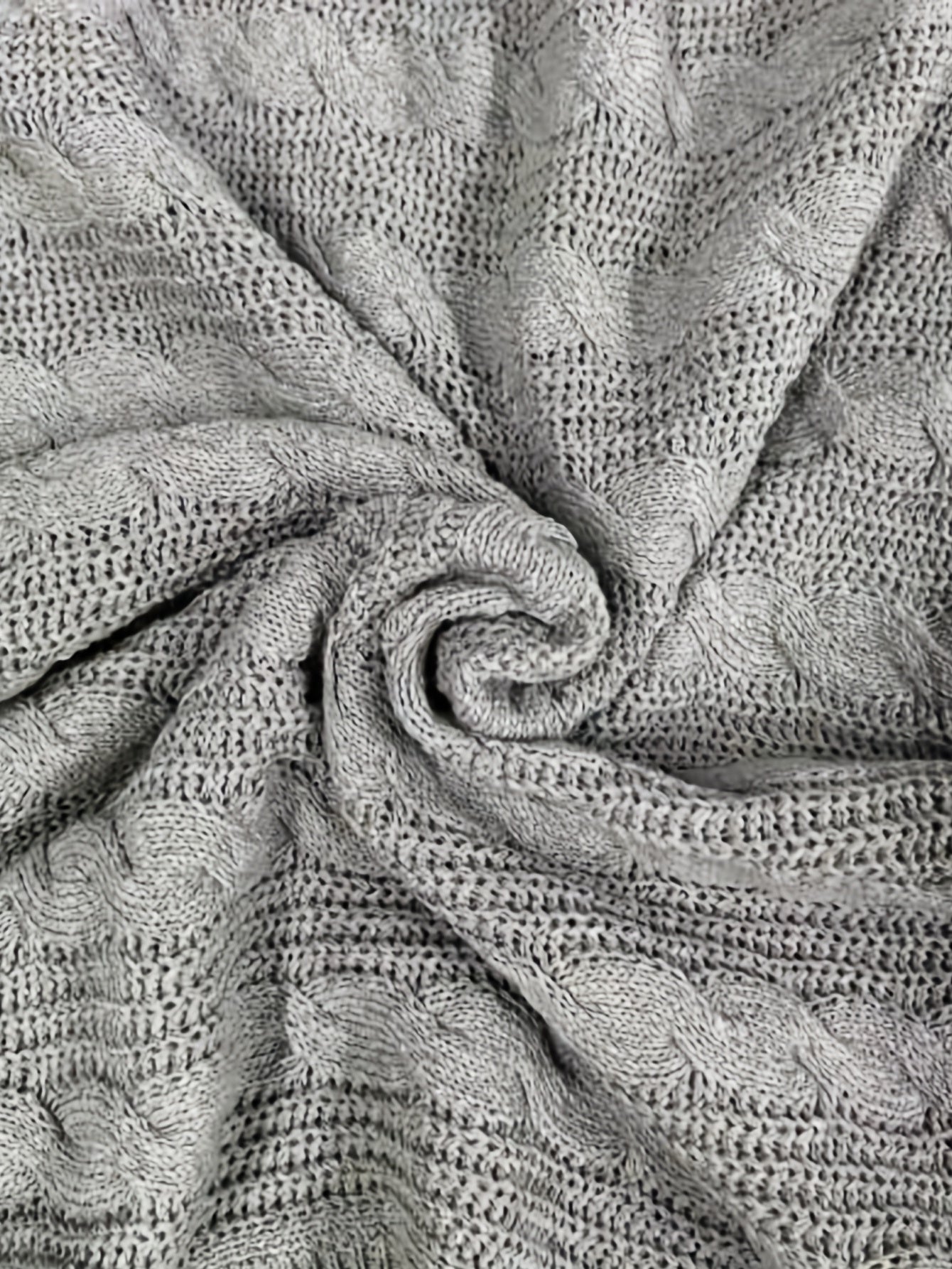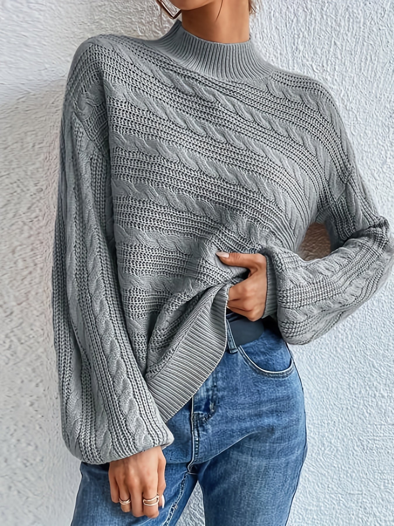 Sixsr Solid Mock Neck Cable Knit Sweater, Casual Long Sleeve Loose Sweater, Women's Clothing