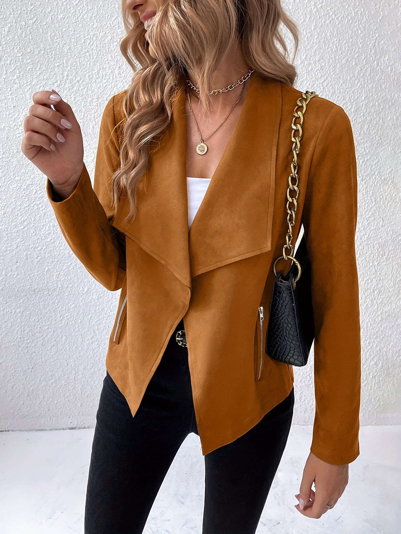 Sixsr Solid Open Front Lapel Jacket, Elegant Long Sleeve Jacket For Spring & Fall, Women's Clothing