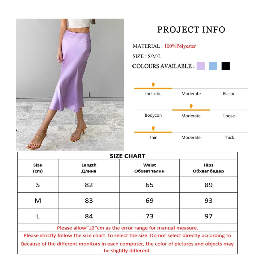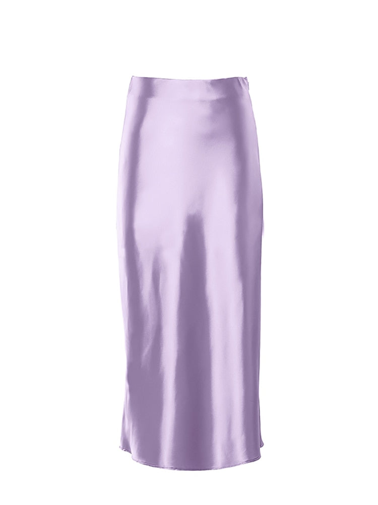sixsr Solid Purple Satin Silk Skirt Women High Waisted Summer Long Skirt New Elegant Ladies Office Skirts Midi Spring