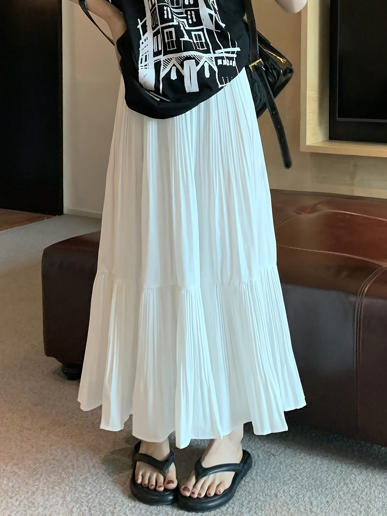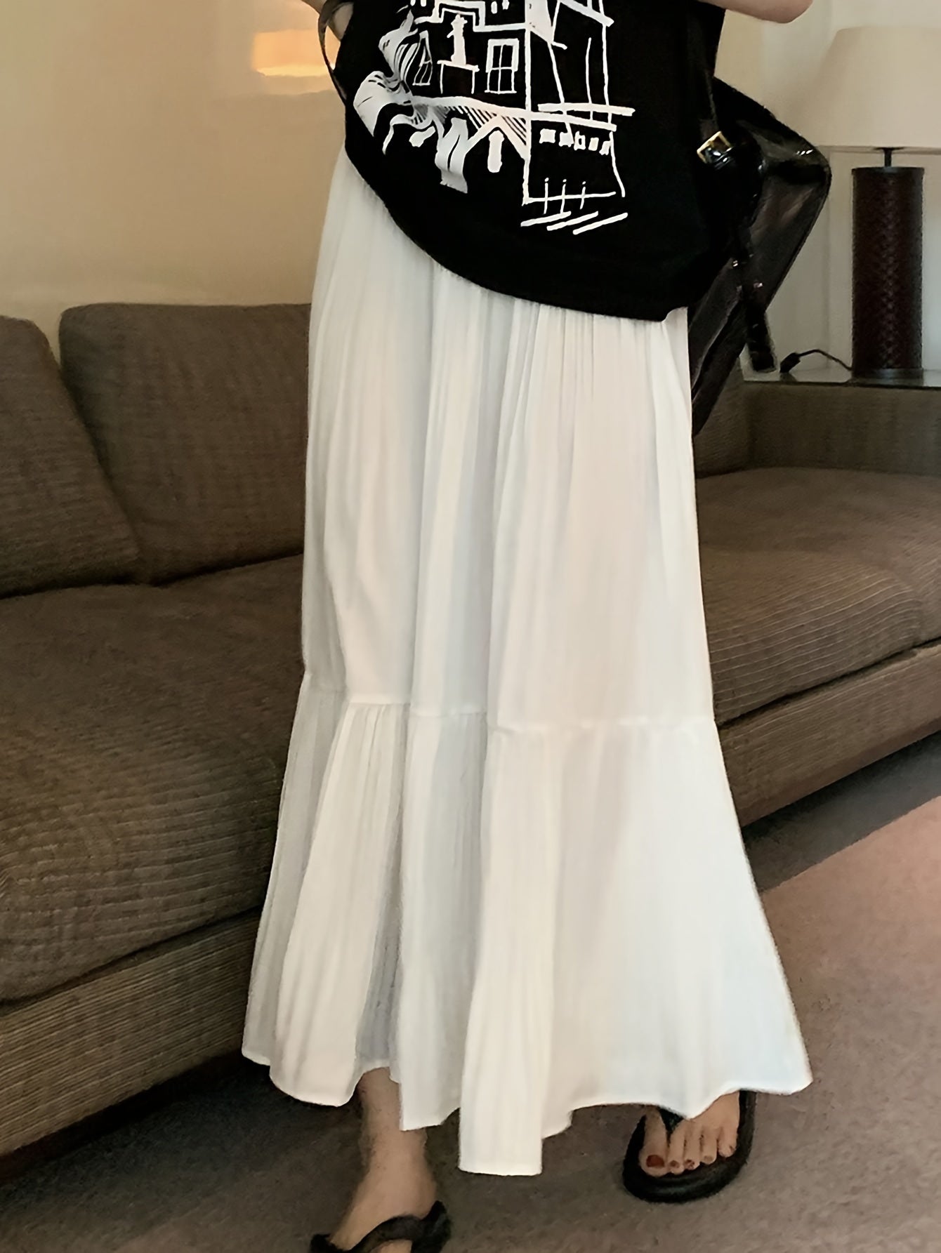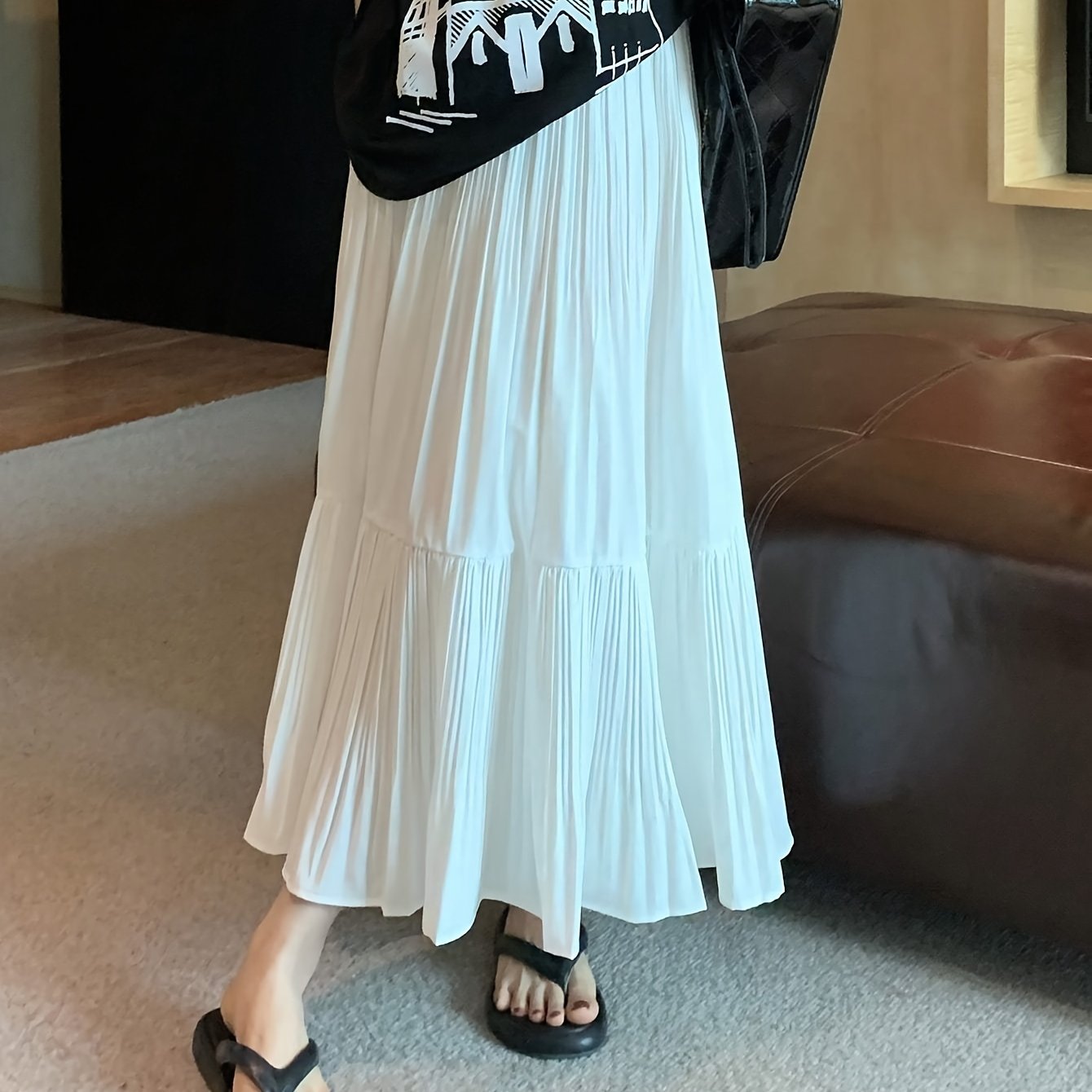 Sixsr Solid Ruffle Hem Swing Skirt, Elegant Skirt For Spring & Fall, Women's Clothing