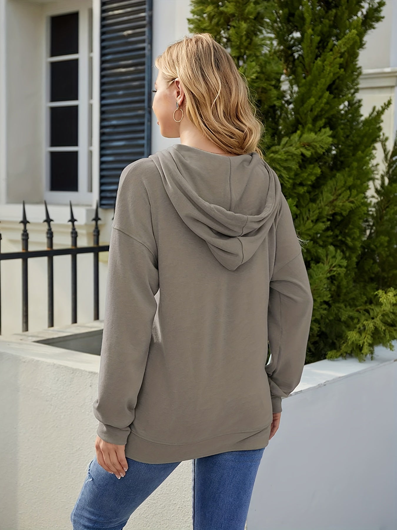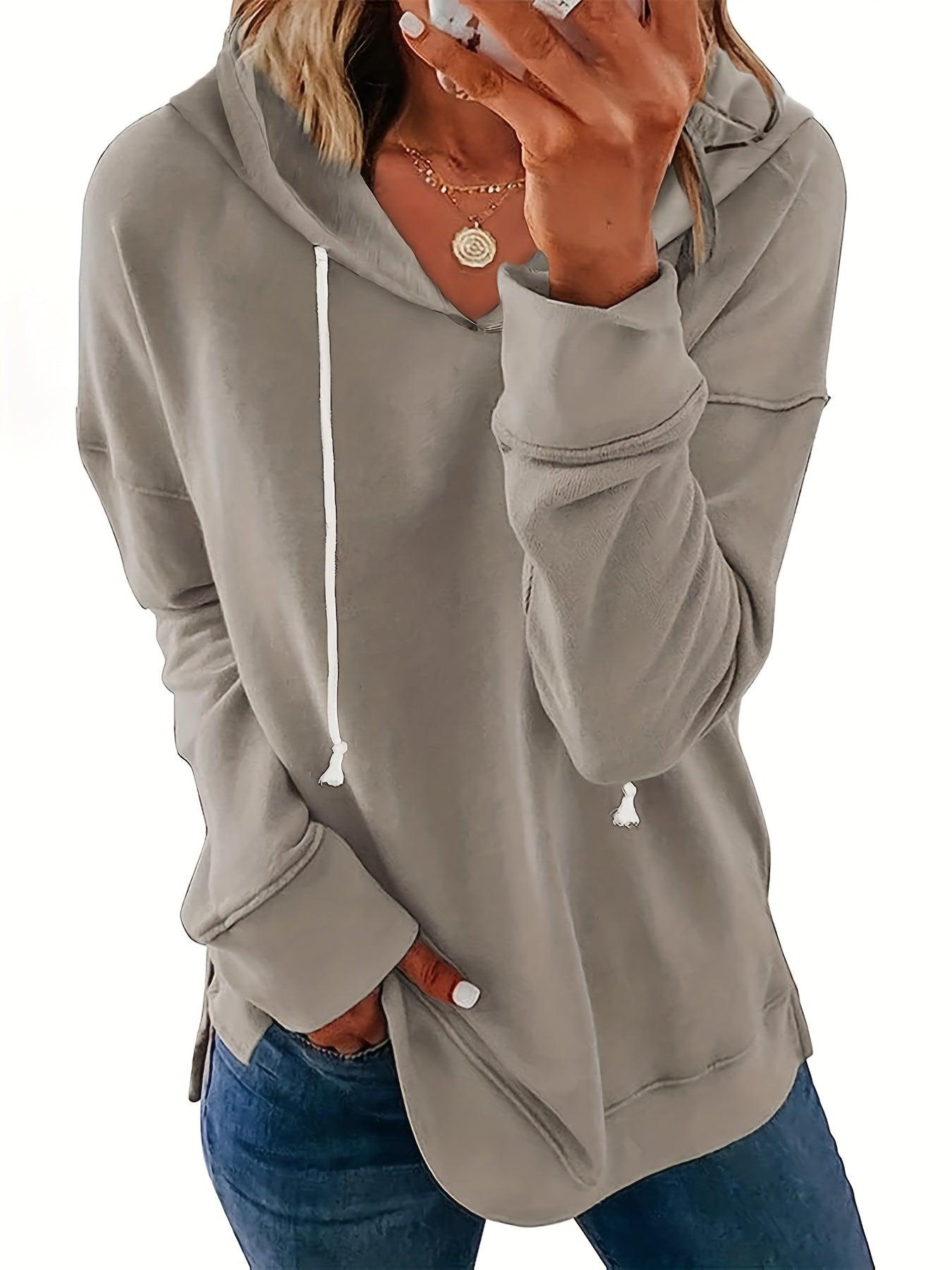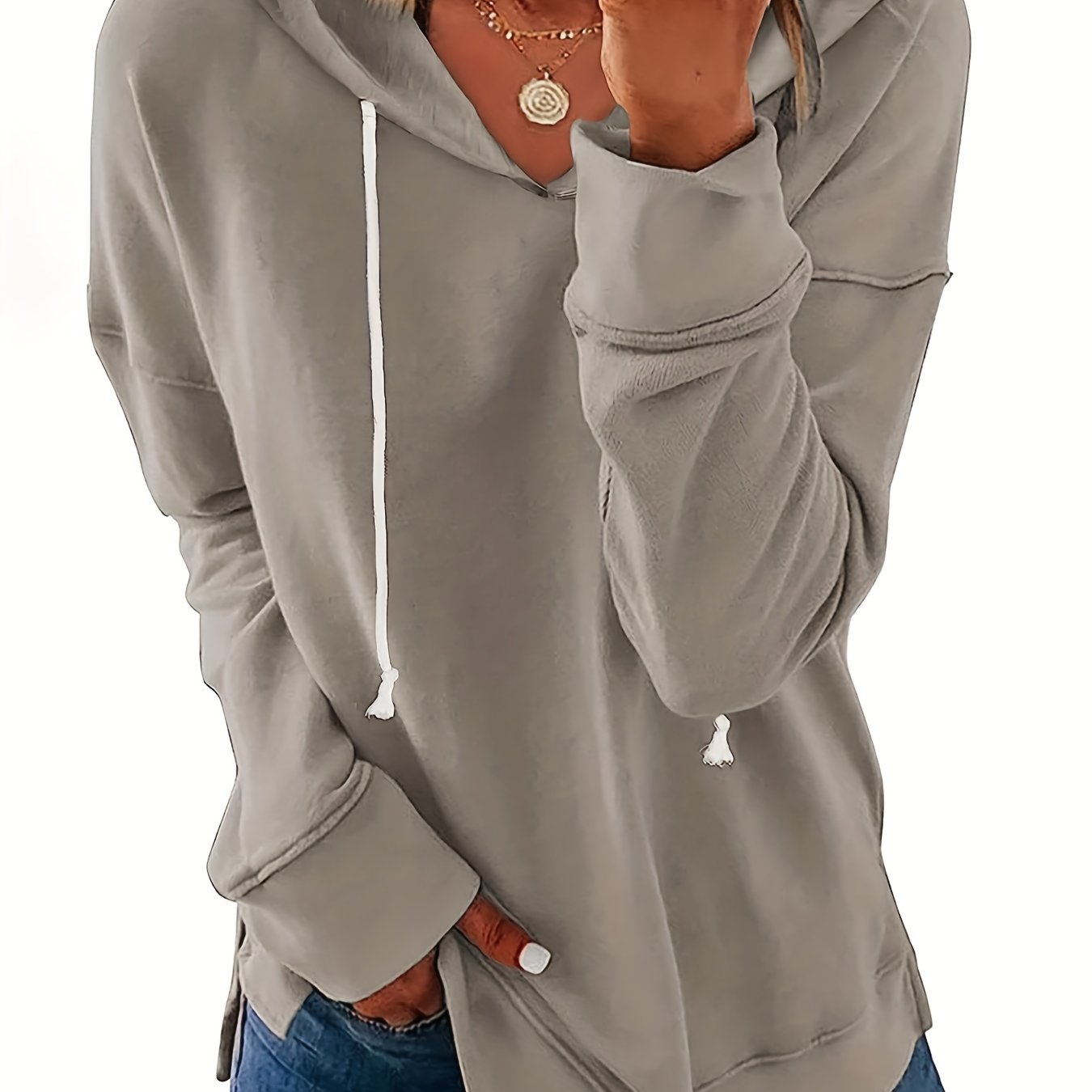 Sixsr Solid Split Side Hoodie, Casual Long Sleeve Drawstring Hoodies Sweatshirt, Women's Clothing