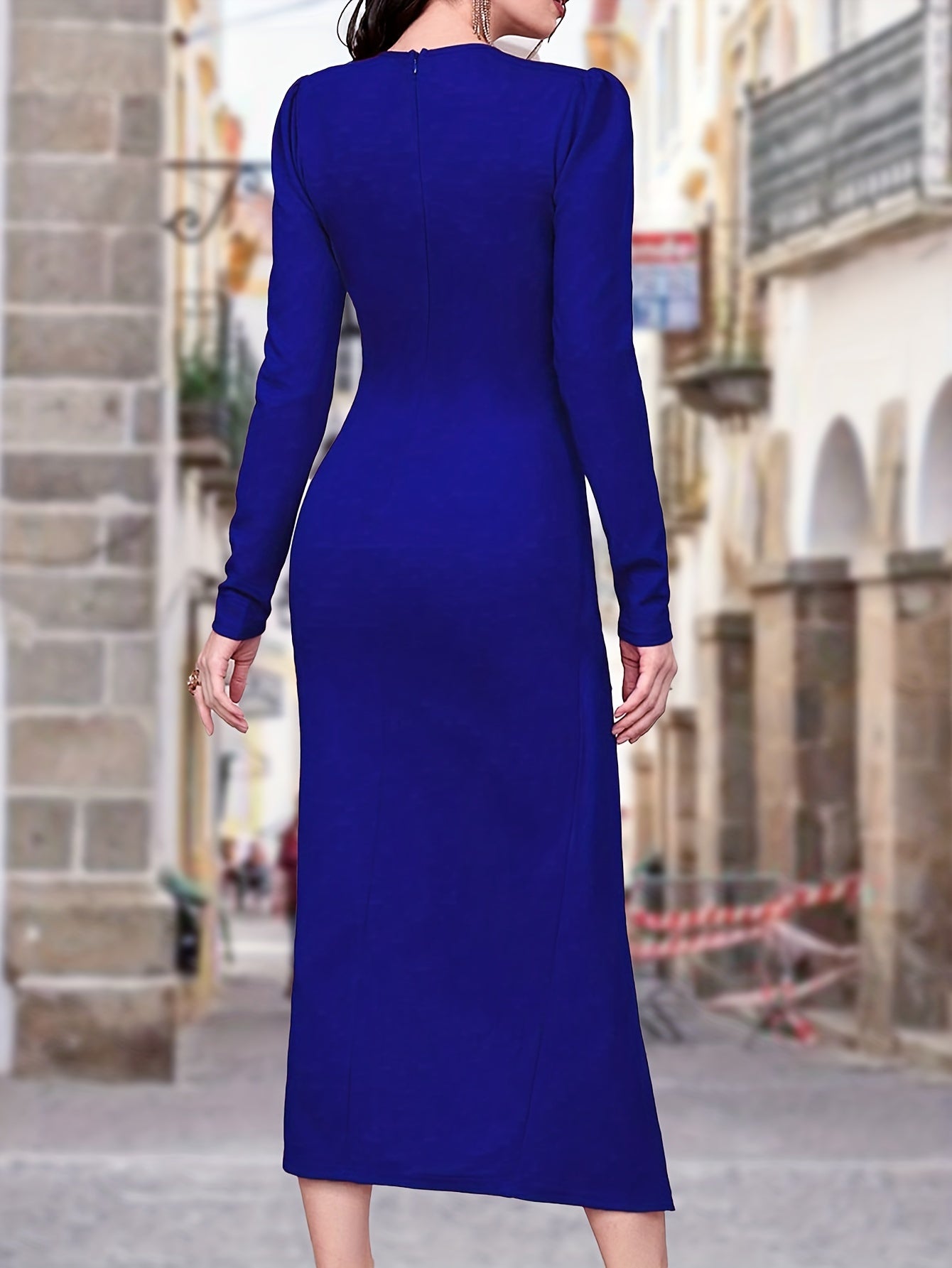 Sixsr Solid Surplice Neck Wrap Dress, Elegant Long Sleeve Twist Front Dress For Spring & Fall, Women's Clothing