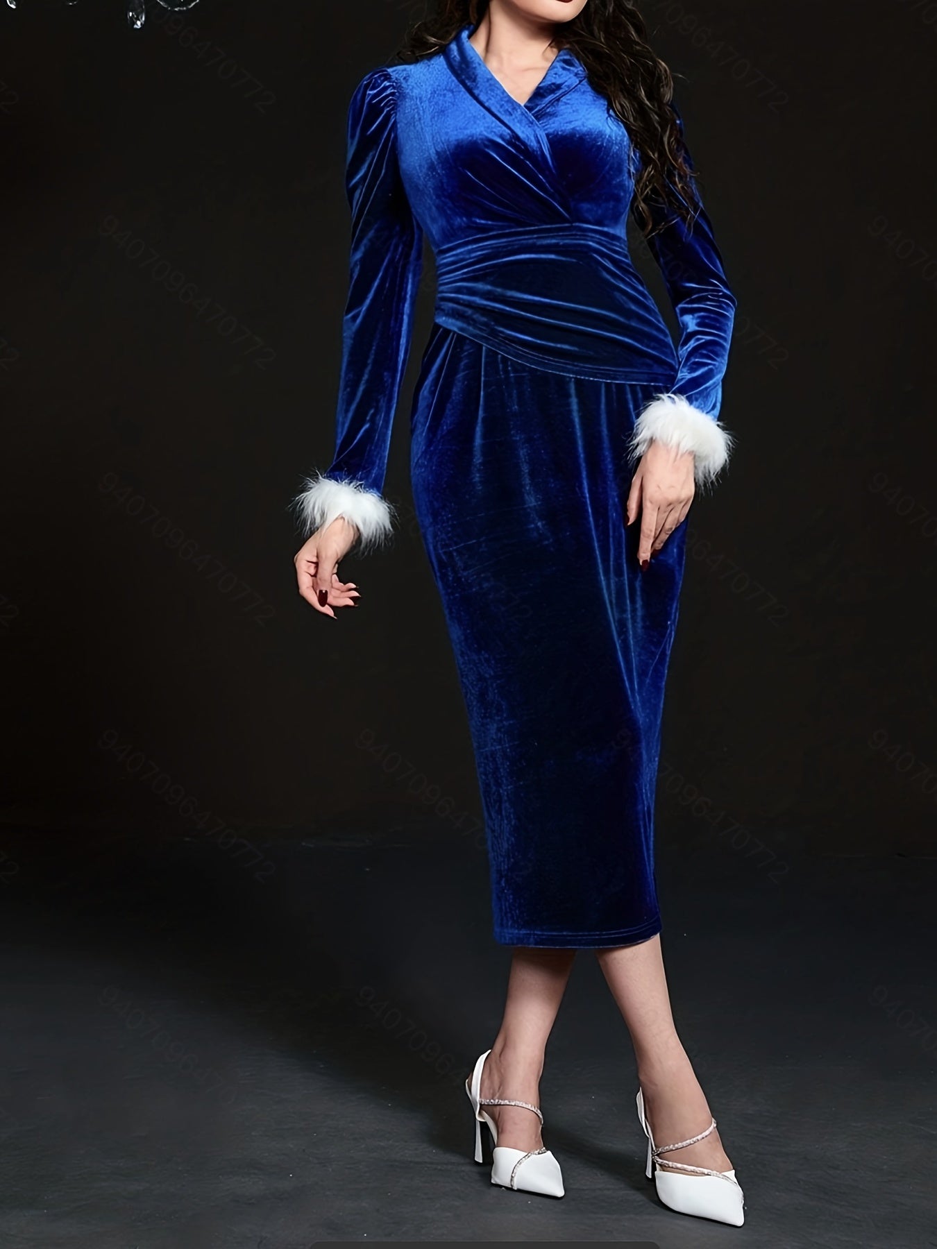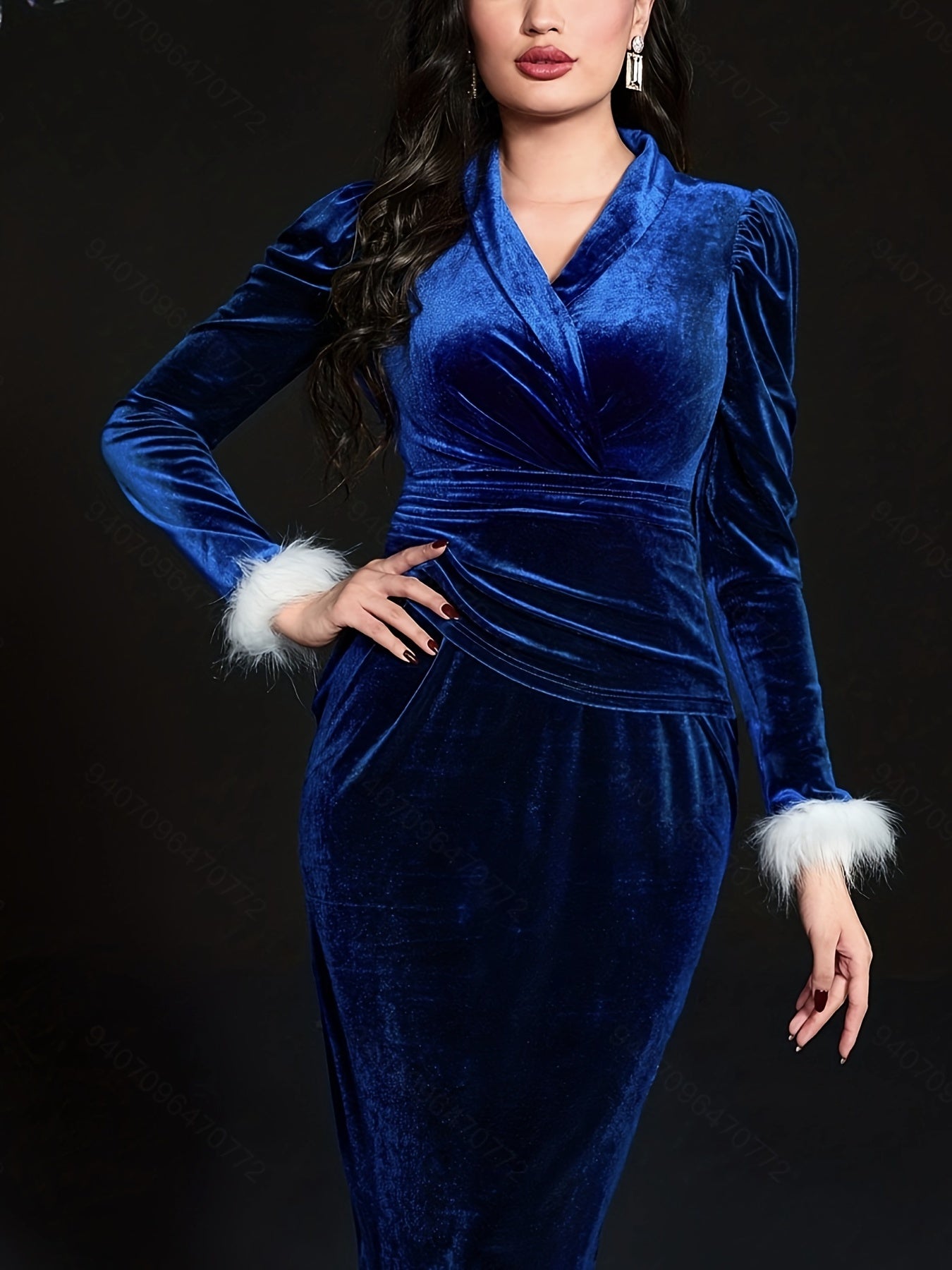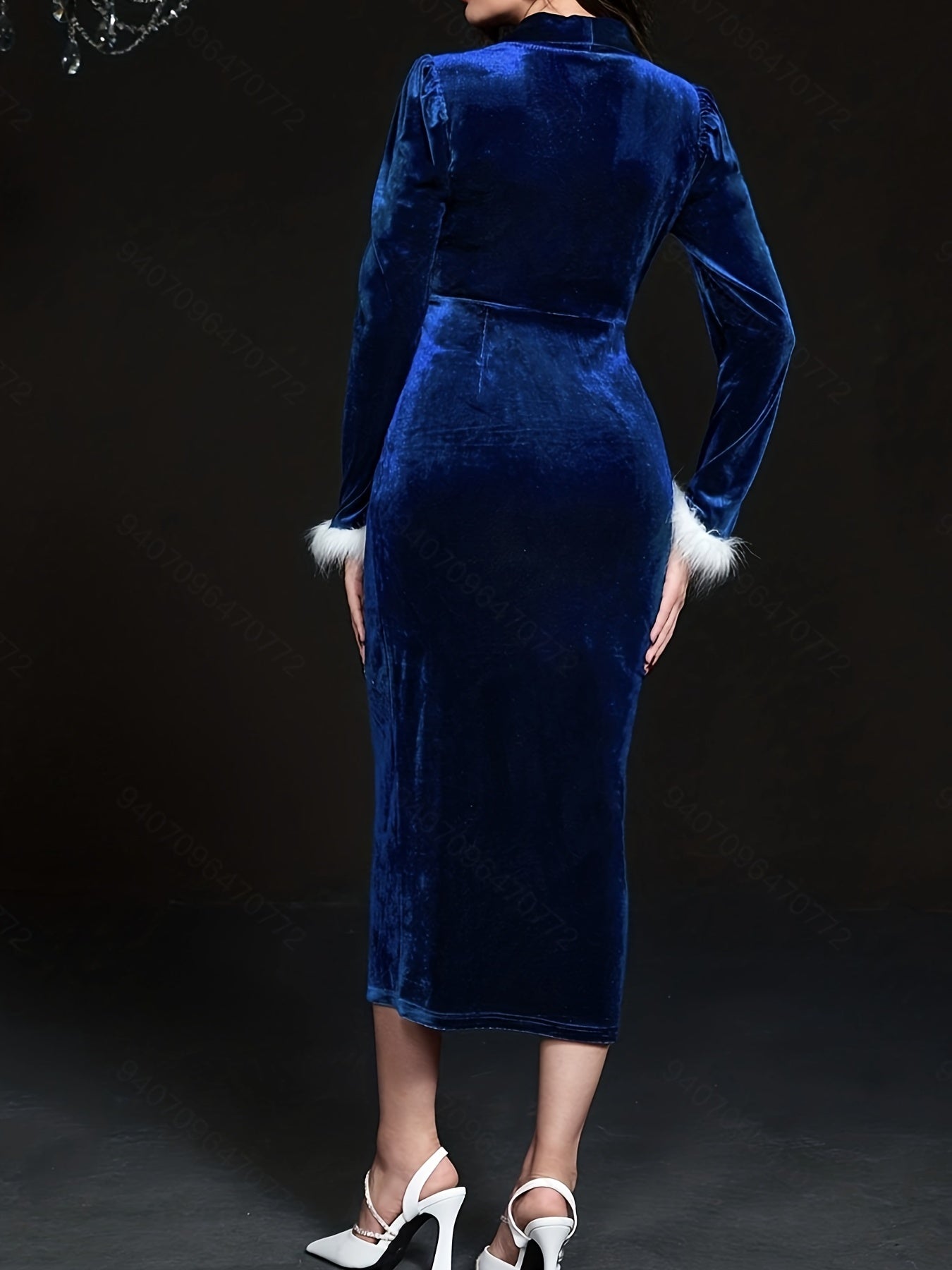 Sixsr Solid V-neck Bodycon Dress, Elegant Long Sleeve Dress For Spring & Fall, Women's Clothing