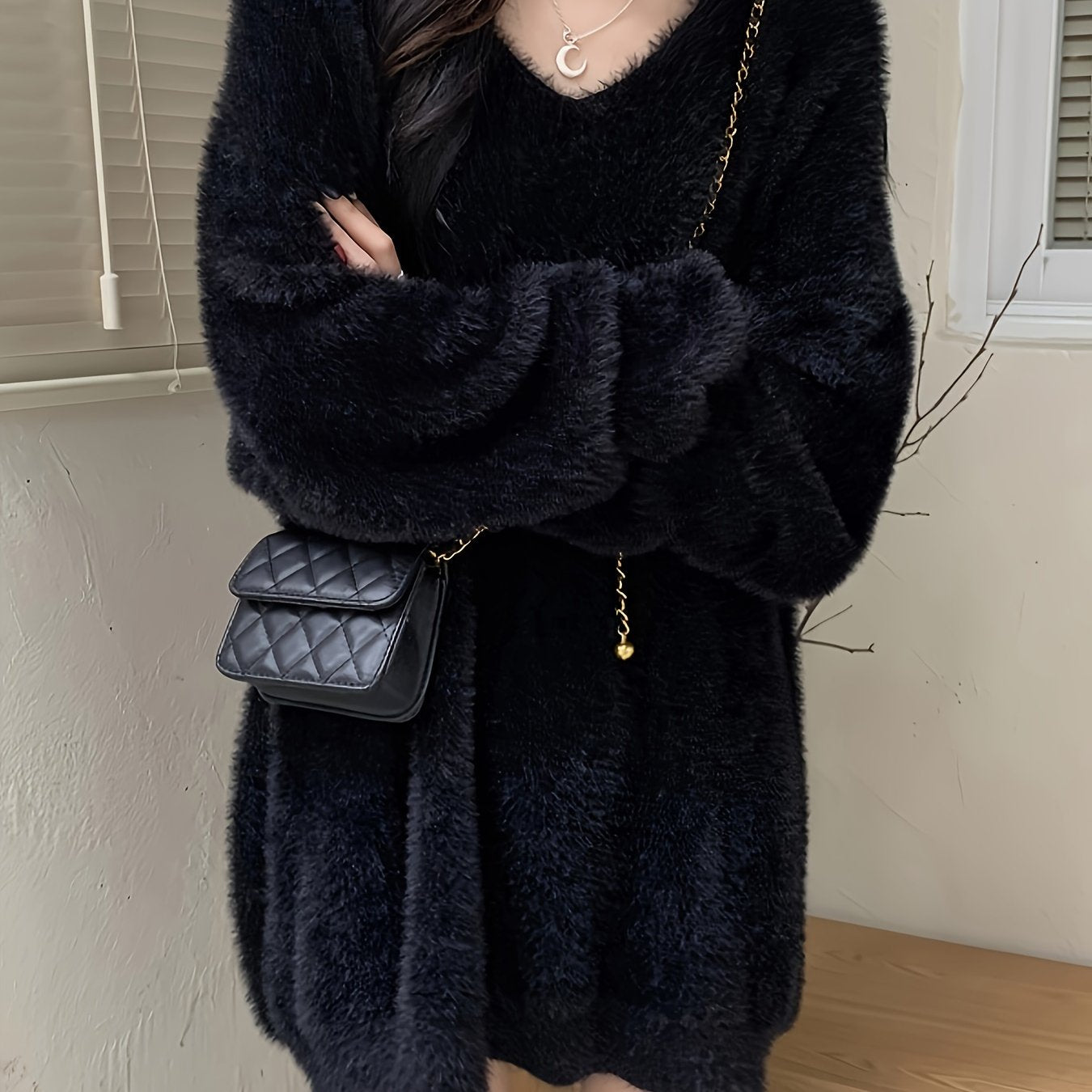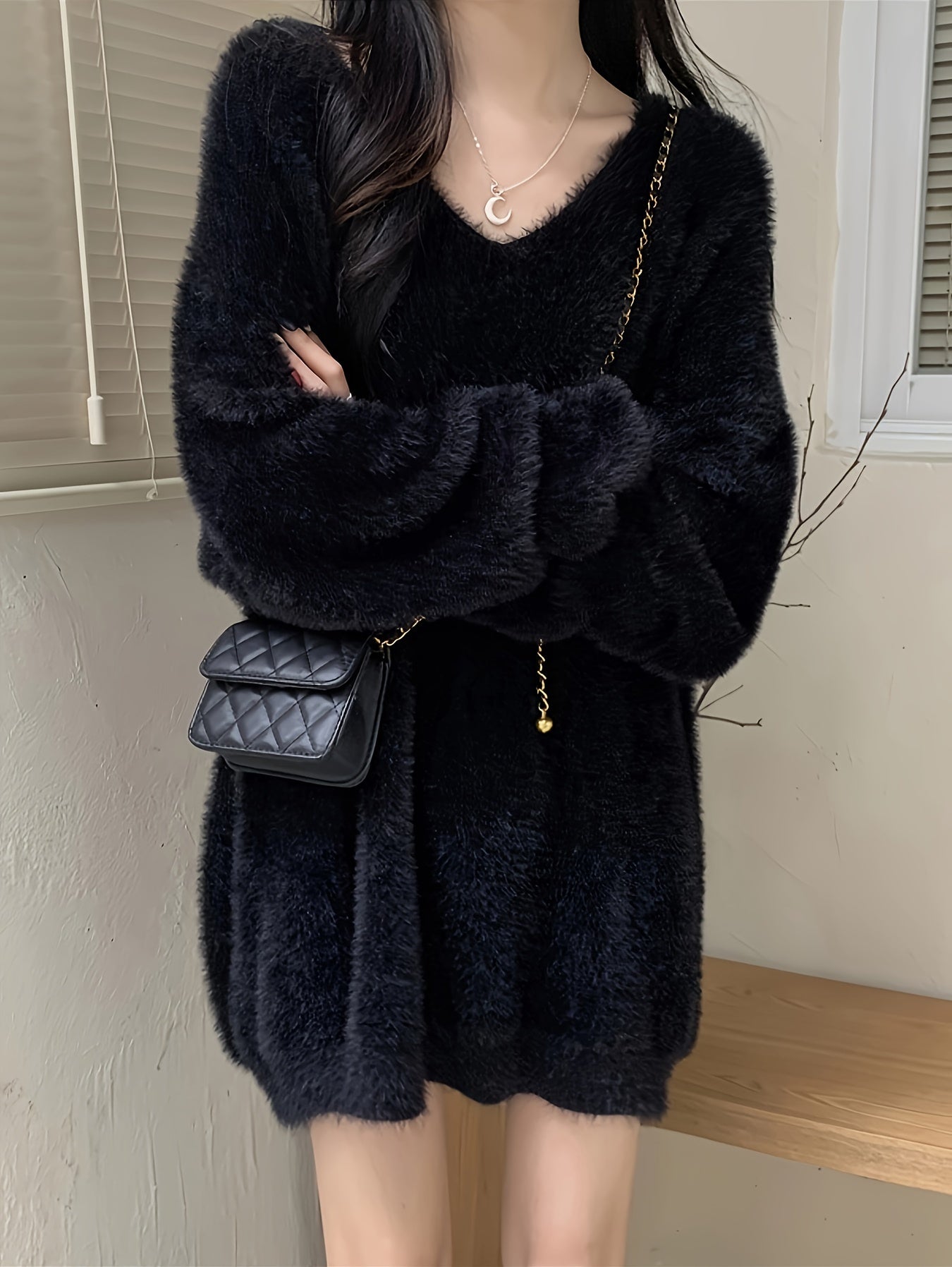 Sixsr Solid V Neck Soft Pullover Sweater, Casual Long Sleeve Loose Cozy Sweater, Women's Clothing