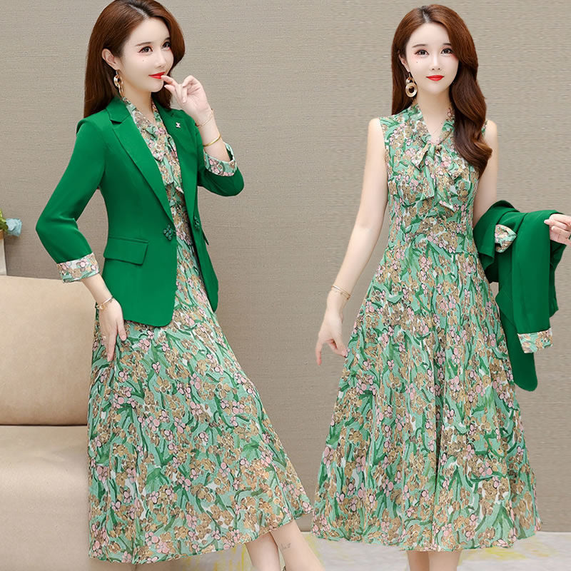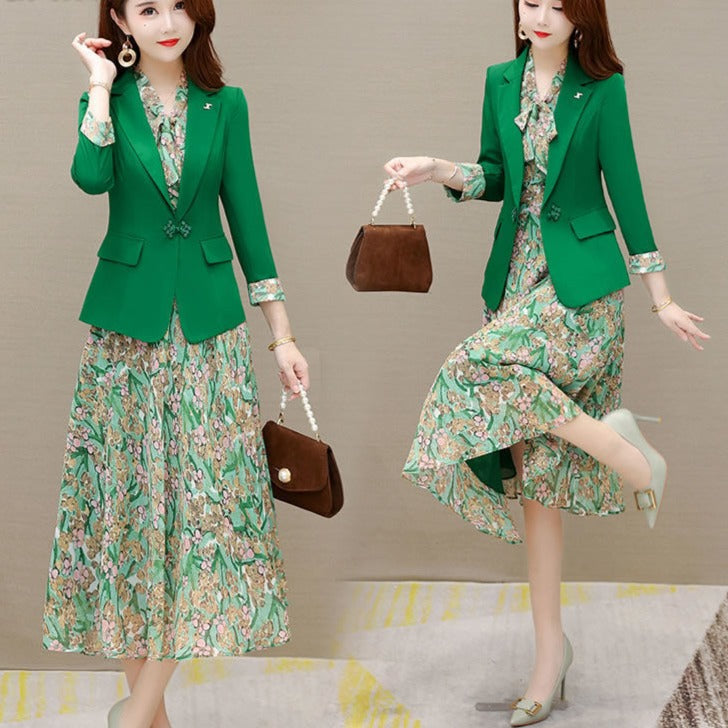 sixsr Spring Autumn New Suit Jacket Dress Two-piece Women's Elegant Blazers Floral Long Skirt Set Female Office Professional Wear