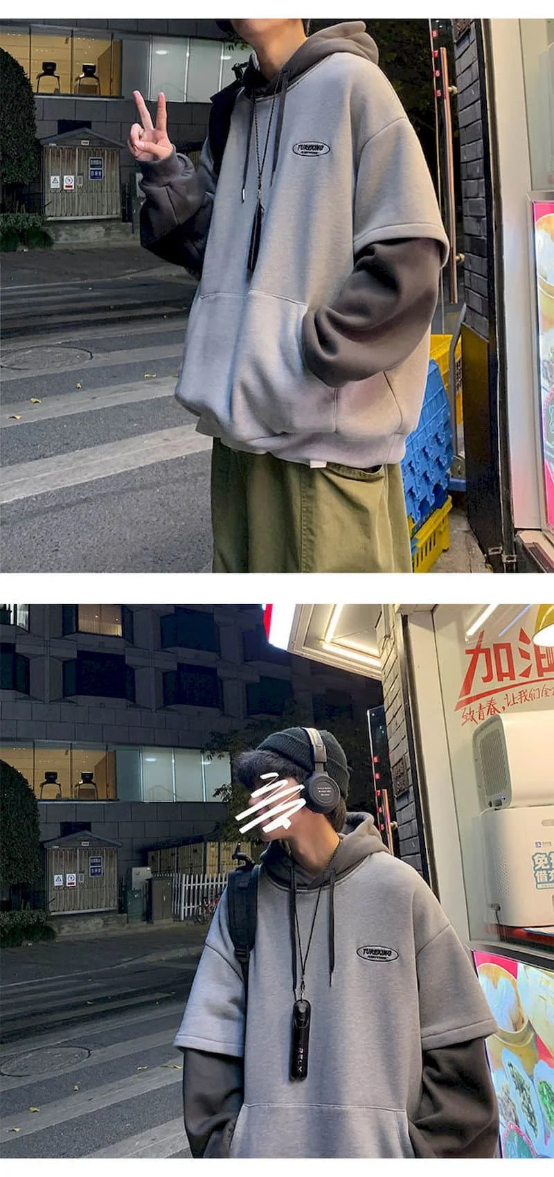 Sixsr Spring Outfits Trends Hoodies Women Sweatshirt Couple Autumn/winter Fake Two-piece Hooded Pullover Student Korean Style Loose Top Velvet Thick Jacket